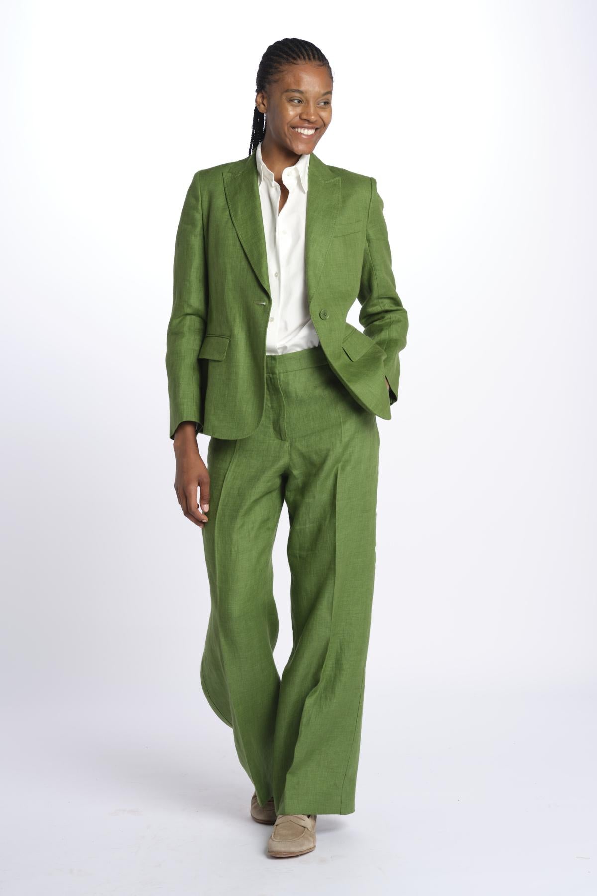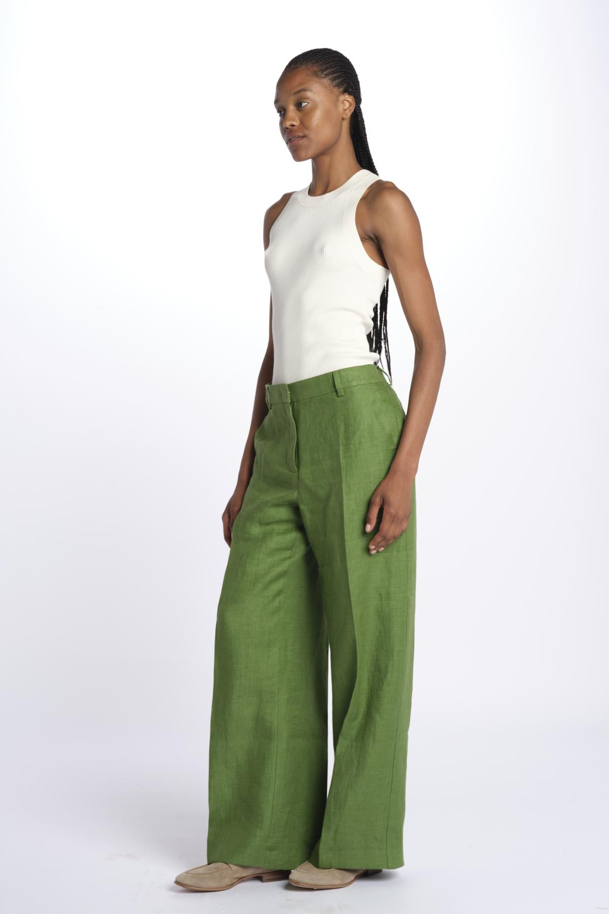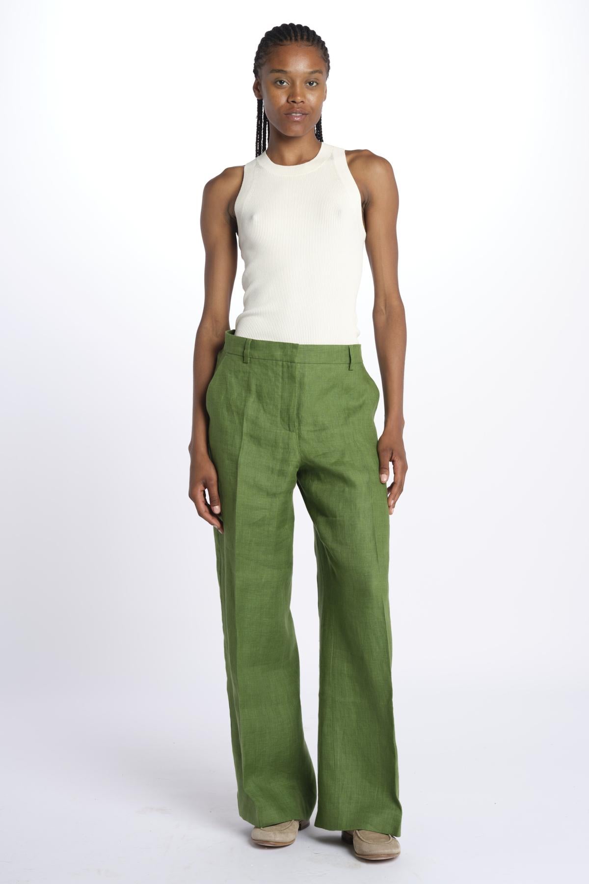 Pant MALIZIA linen pinces by weekend maxmara. The model is 174 cm tall and wears a size 40. Composition: 100% linen.