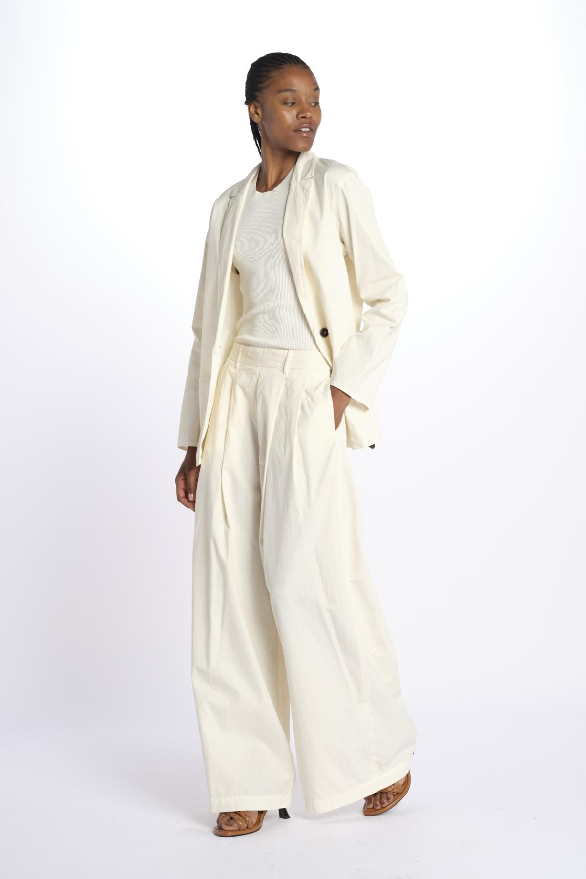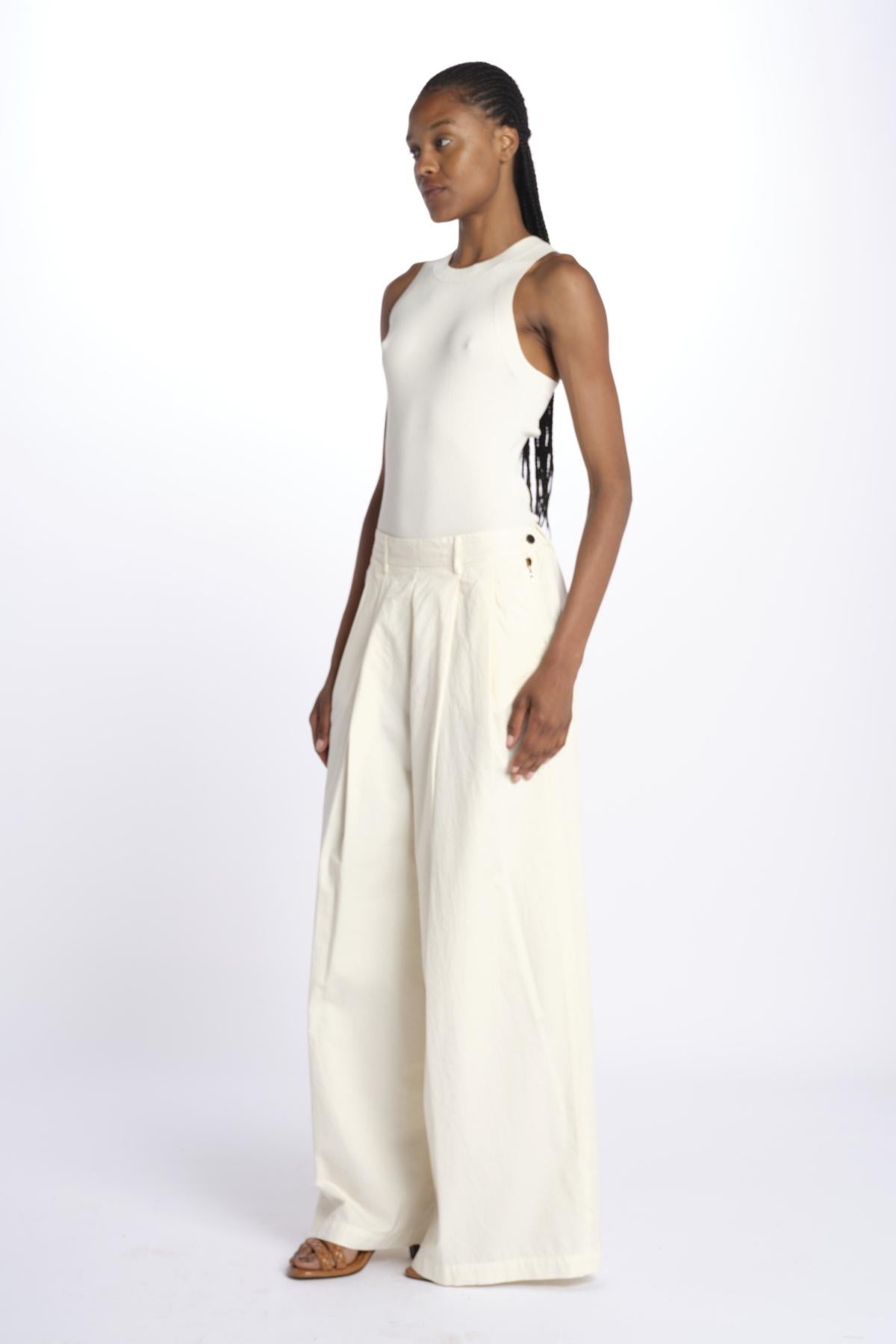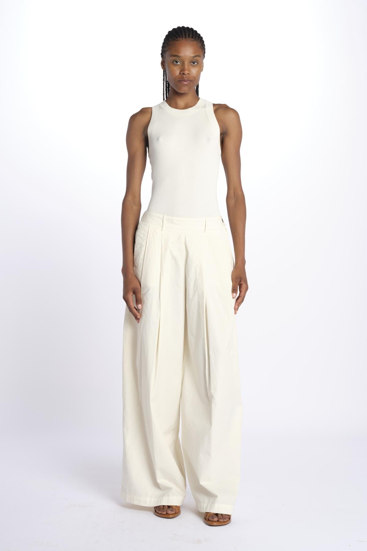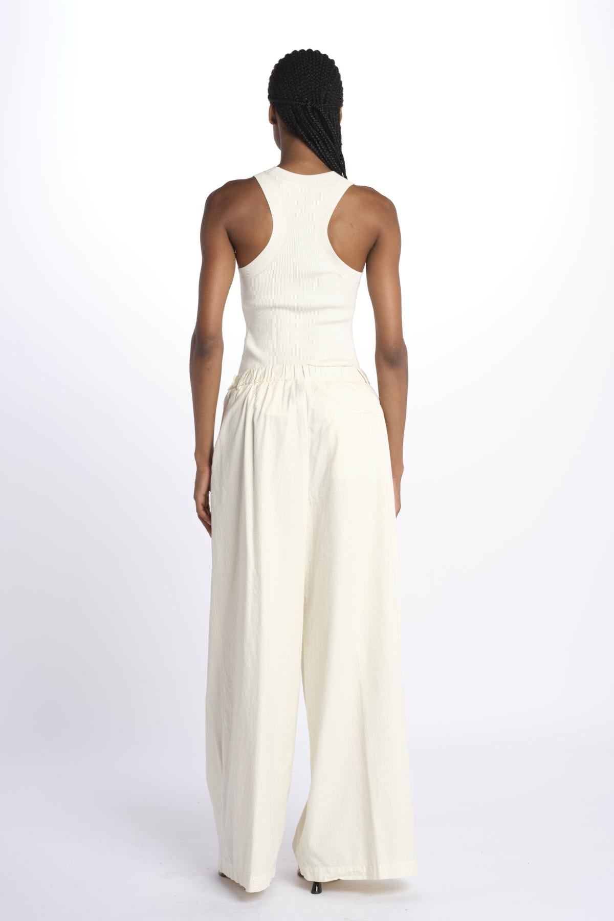 Pleated trousers with elastic The model is 174 cm tall and wears a size 40. Composition: 100% cotton.