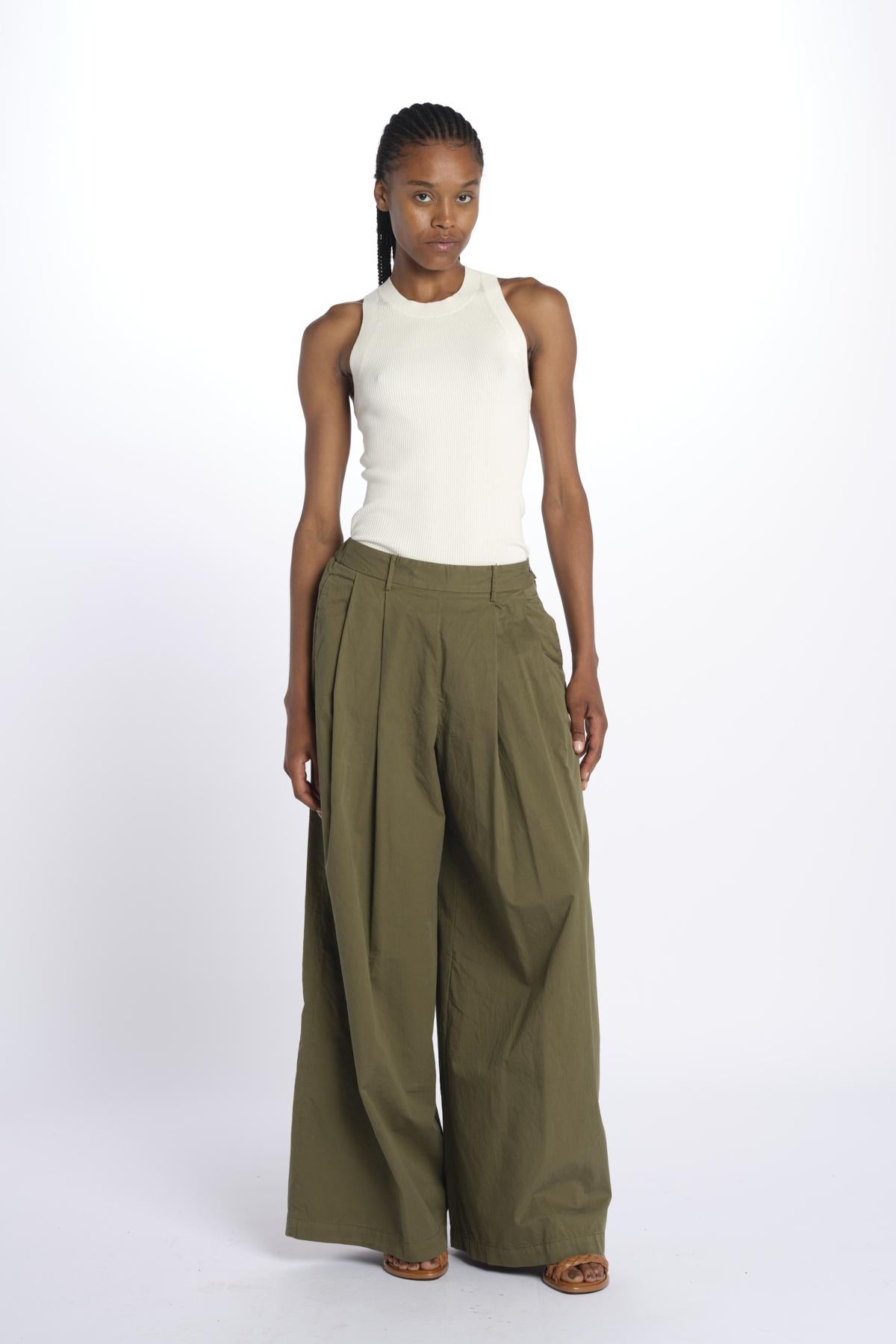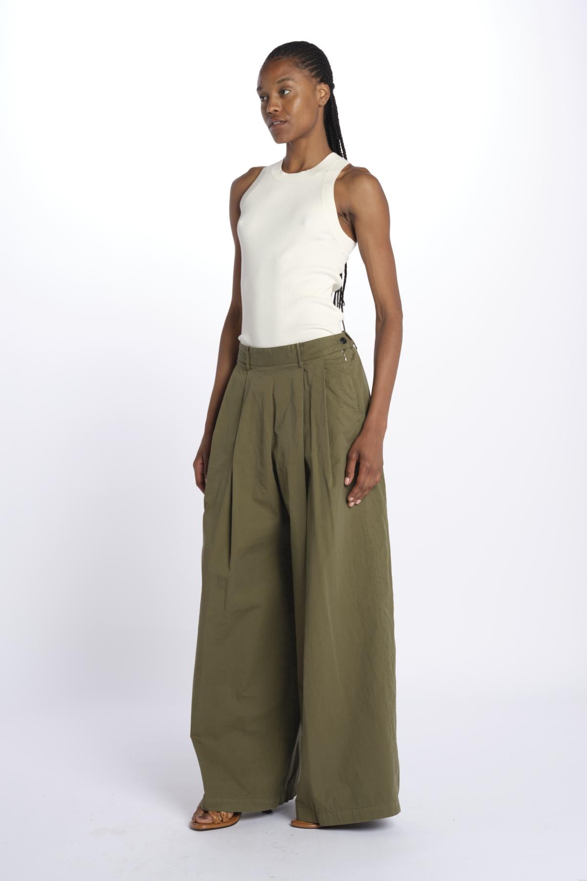 Pleated trousers with elastic The model is 174 cm tall and wears a size 40. Composition: 100% cotton.