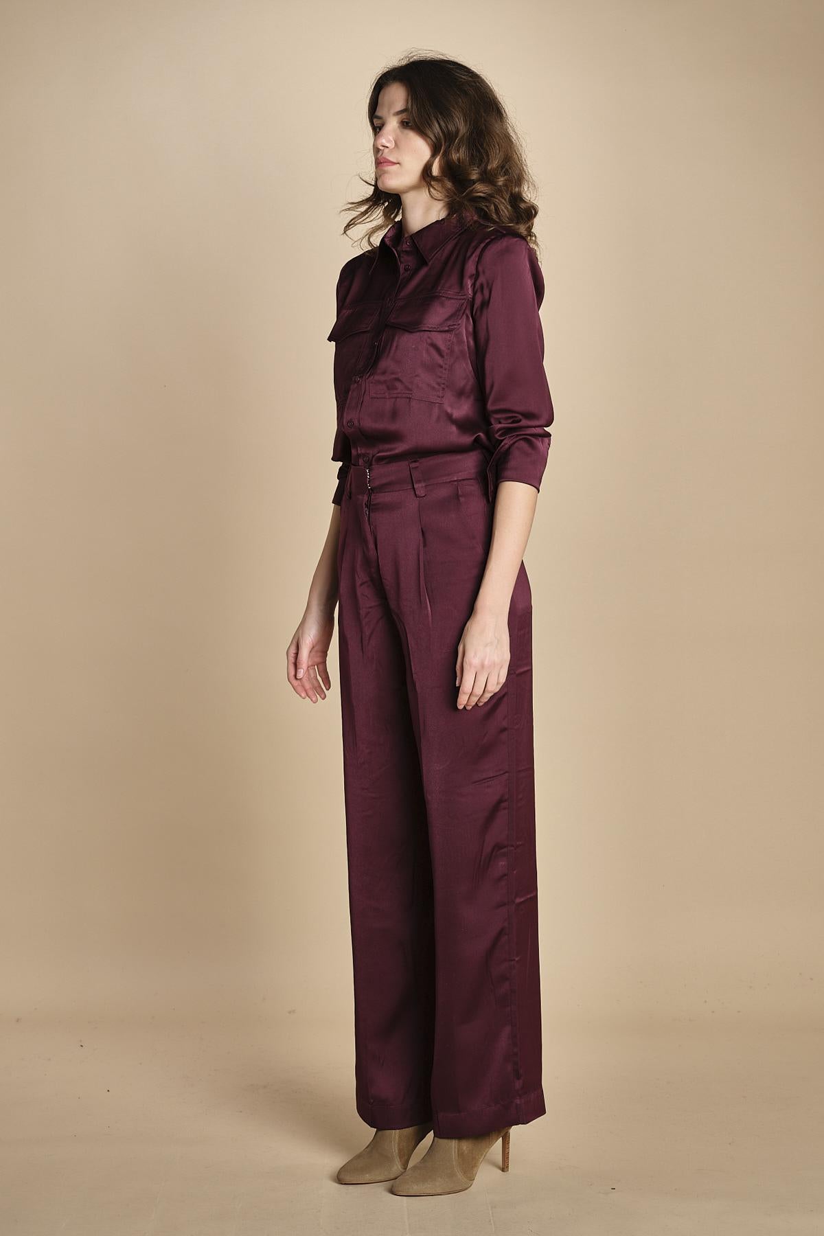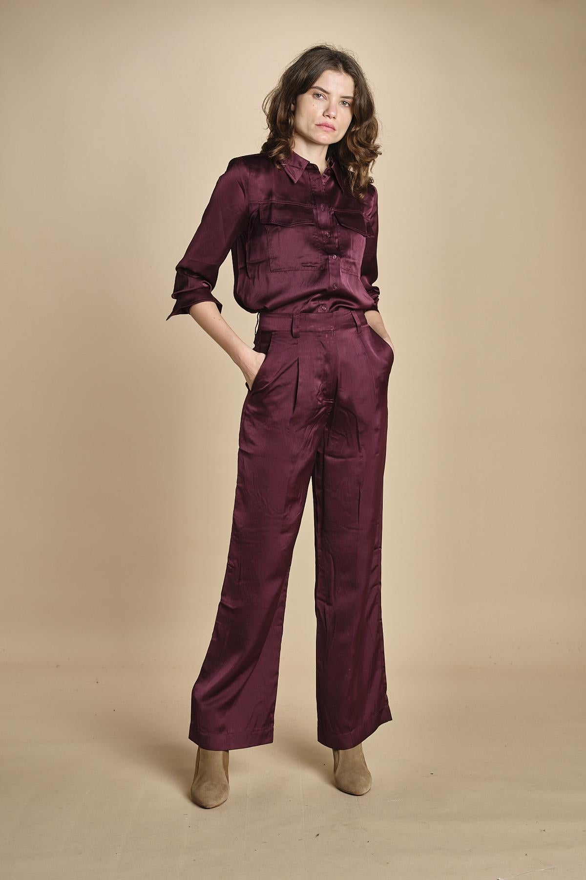 pantaloni in raso con pinces. La modella è alta 176 cm e indossa una taglia 34. 100% poliestere