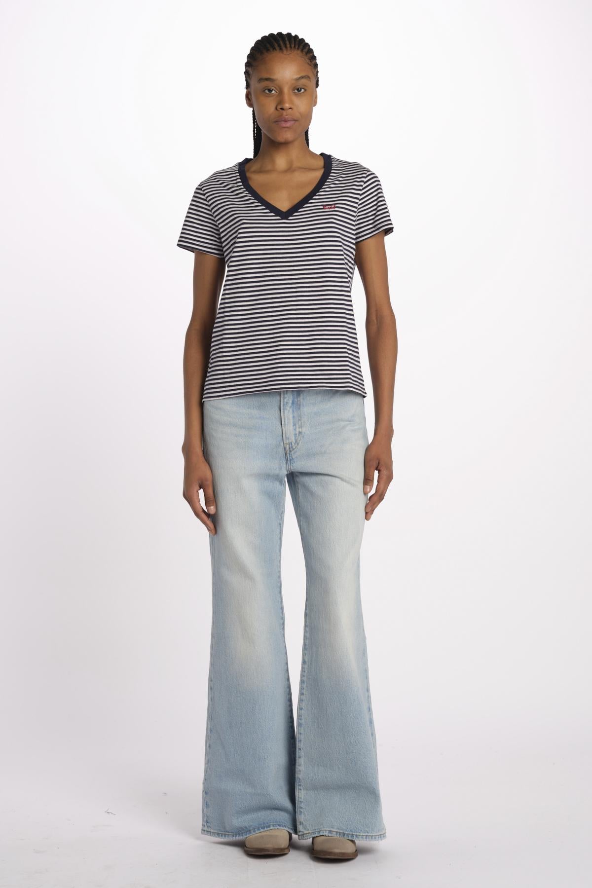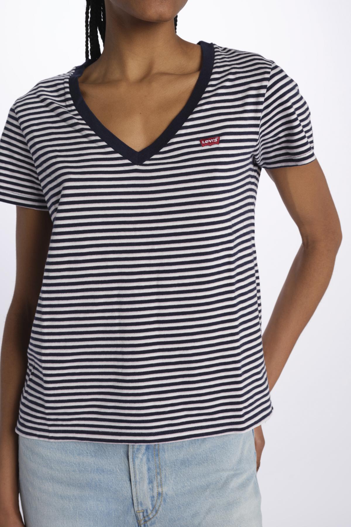 PERFECT VNECK by levi's. The model is 174 cm tall and wears a size S. Composition: 100% cotton.