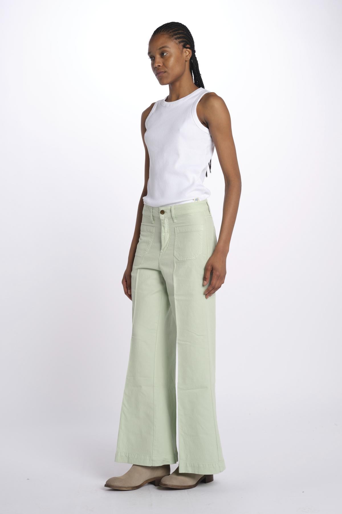 CARLA 4-pocket cropped linen blend pants by ps don't forget me. The model is 174 cm tall and wears a 27 (IT42). Composition: 43% cotton, 32% linen, 23% tencel, 2% elastane.