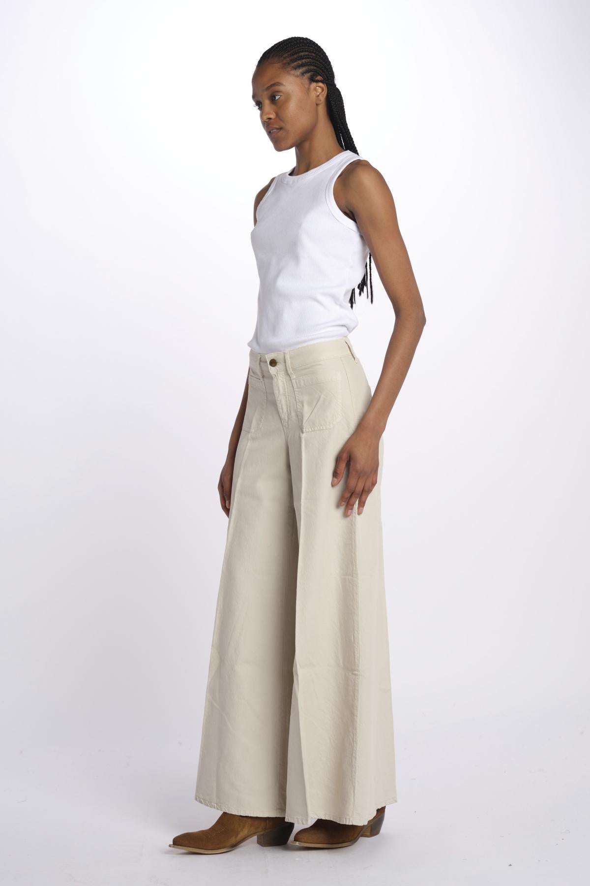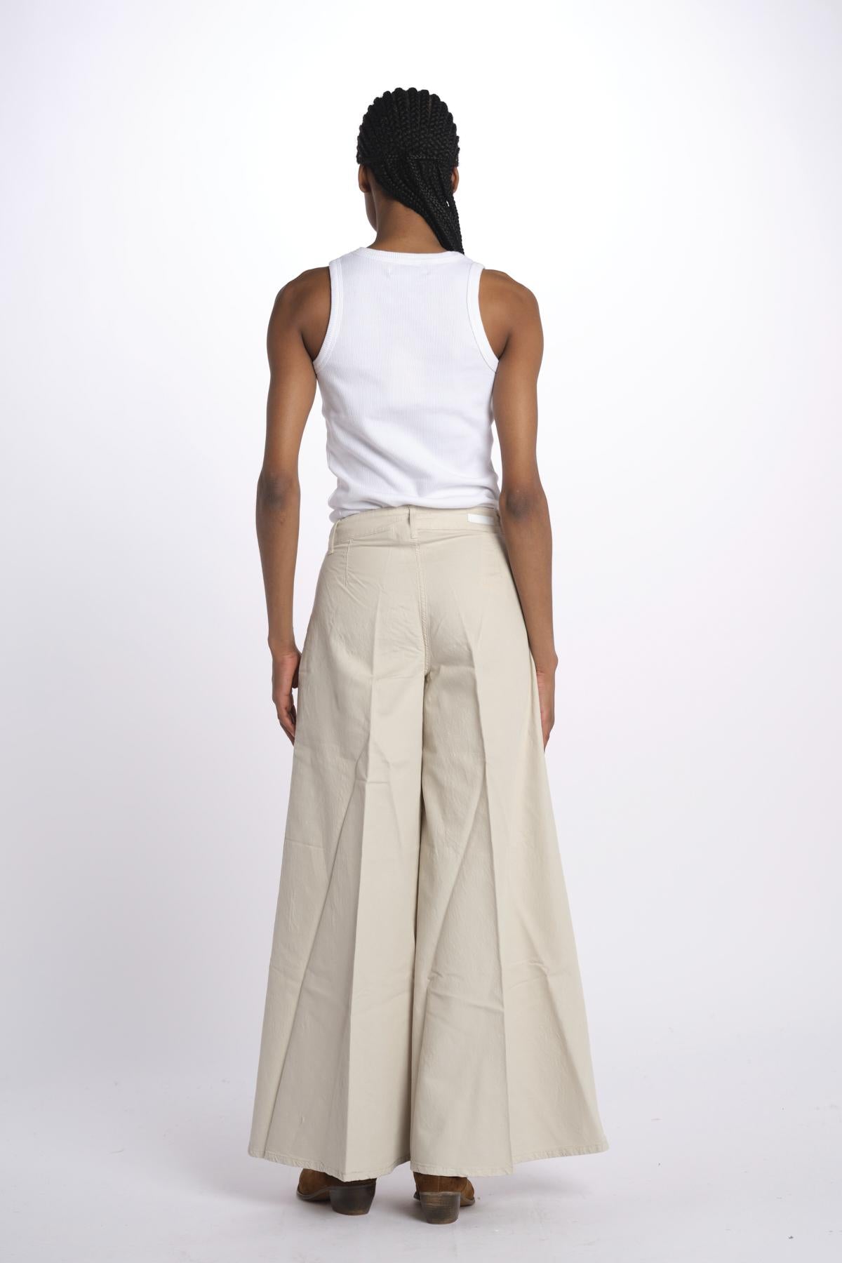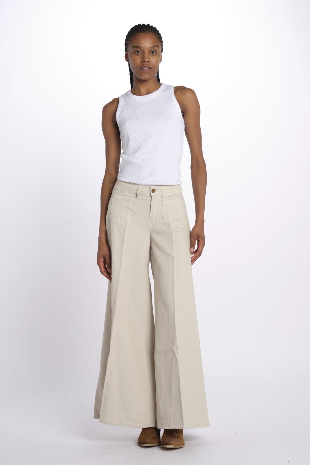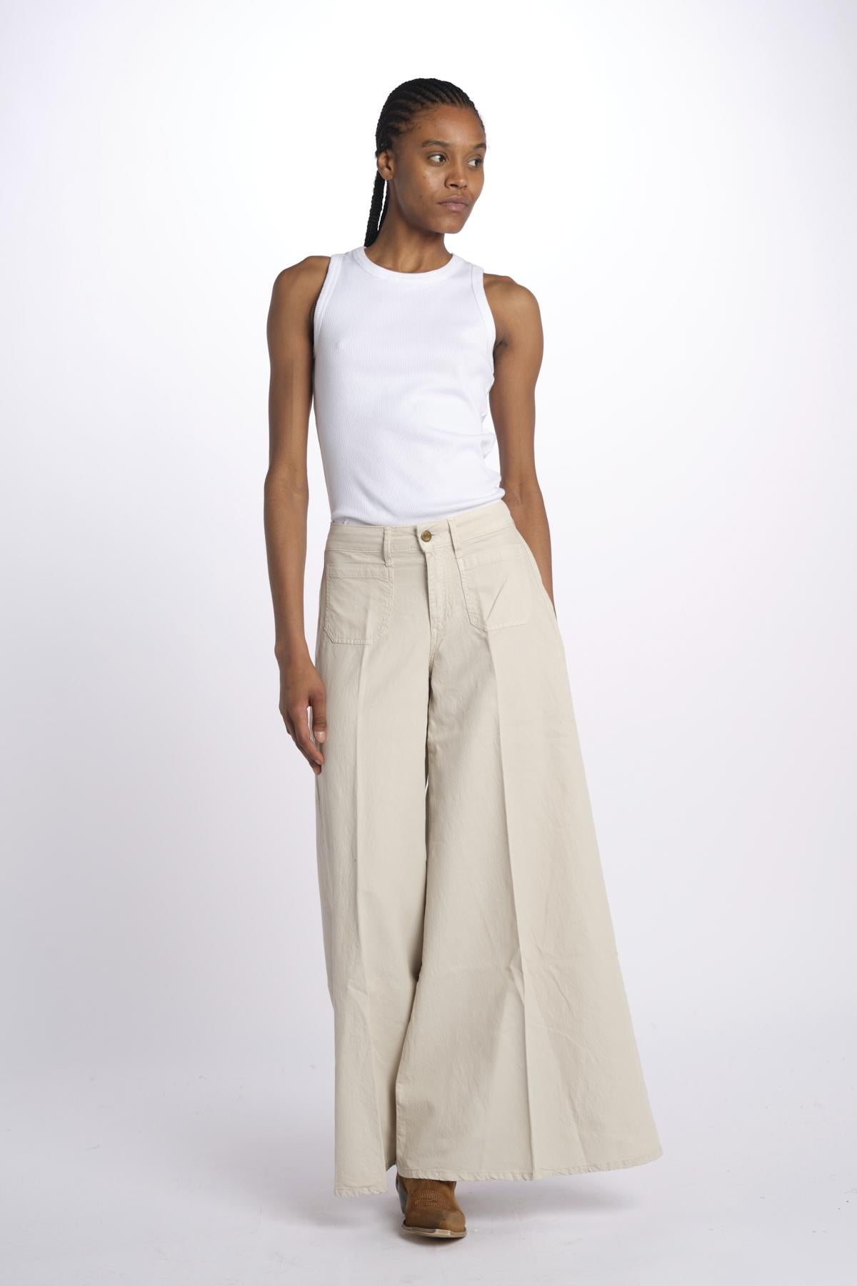 GRACE flared trousers with pocket and linen blend by ps don't forget me. The model is 174 cm tall and wears a 27 (IT42). Composition: 43% cotton, 32% linen, 23% tencel, 2% elastane.