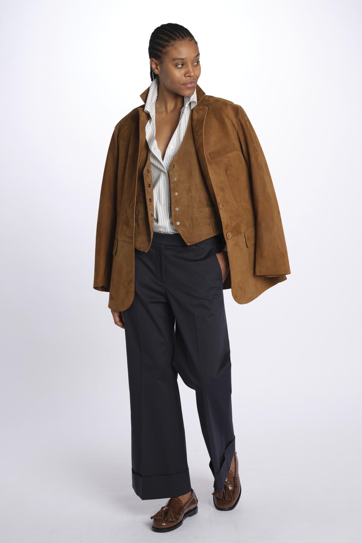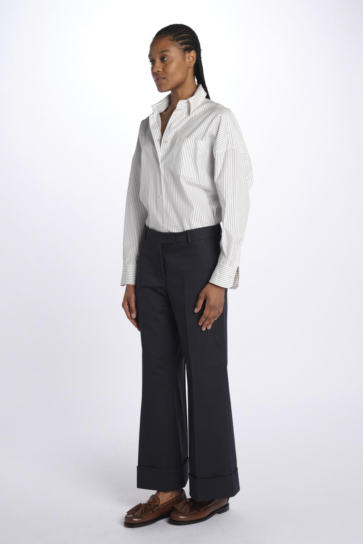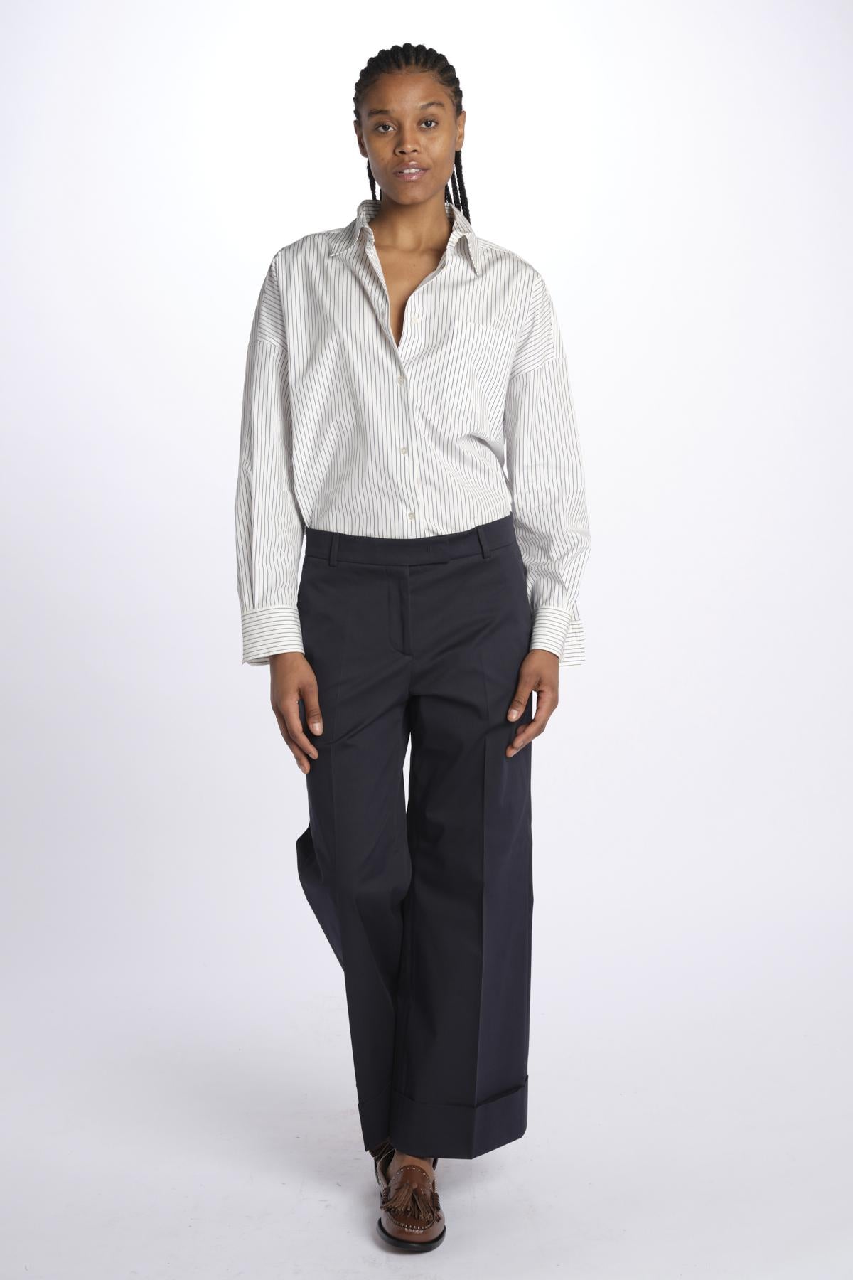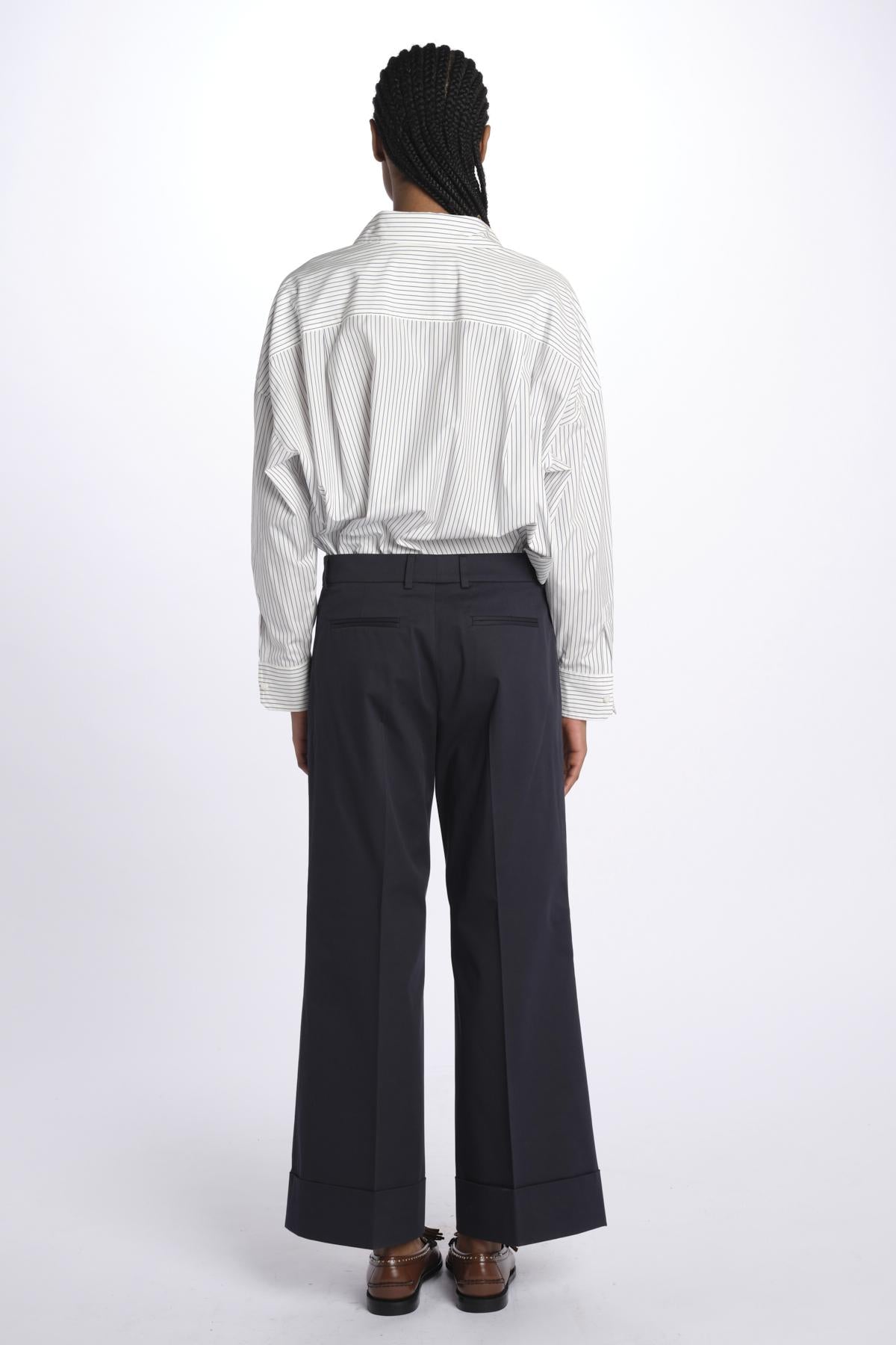 MELODIA cropped risvolto trousers by quelledue. The model is 174 cm tall and wears a size 40. Composition: 96% cotton, 4% elastane.