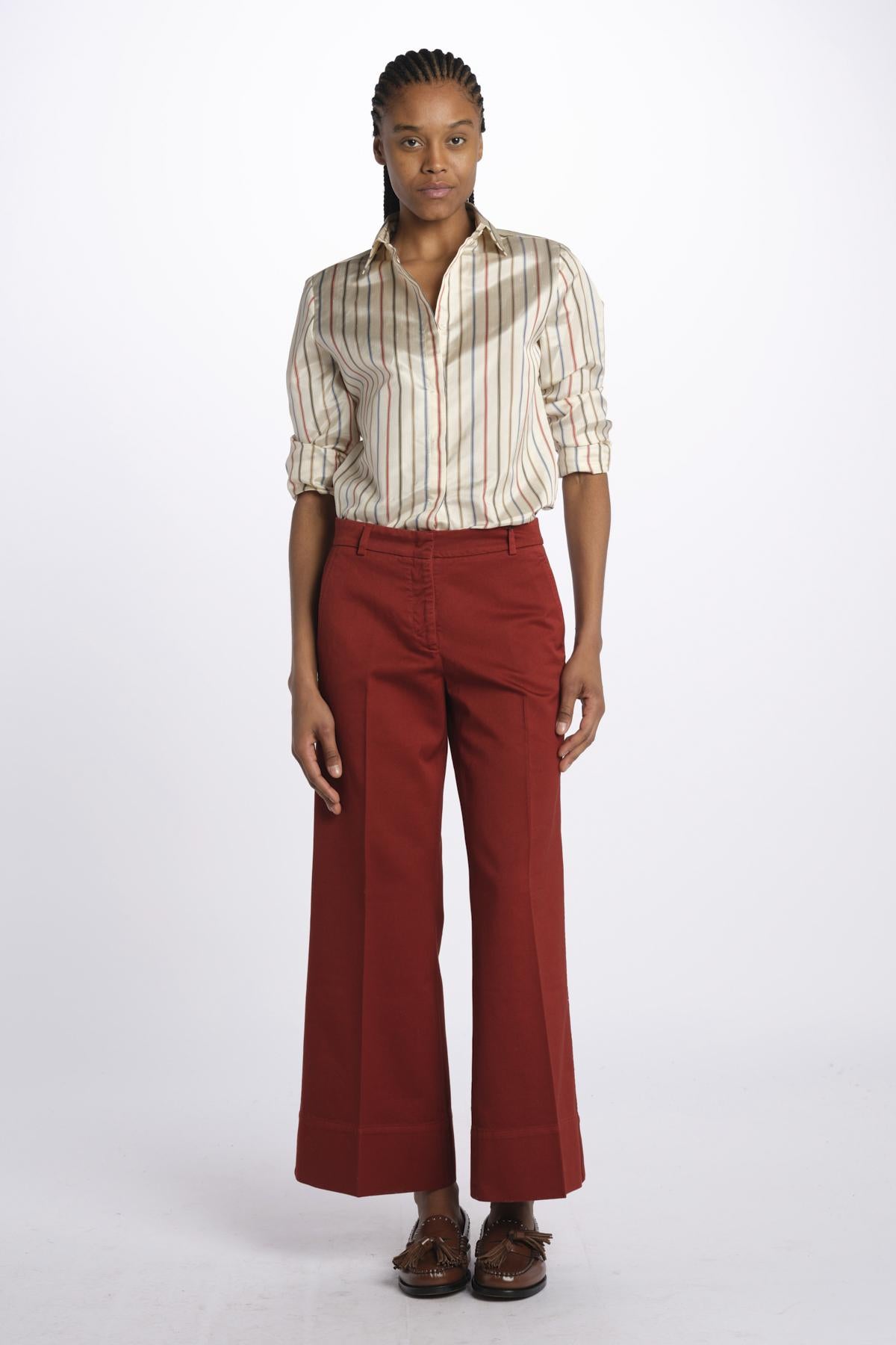 MELODY D cropped cotton garment dyed trousers by quelledue. The model is 174 cm tall and wears a size 40. Composition: 100% cotton.