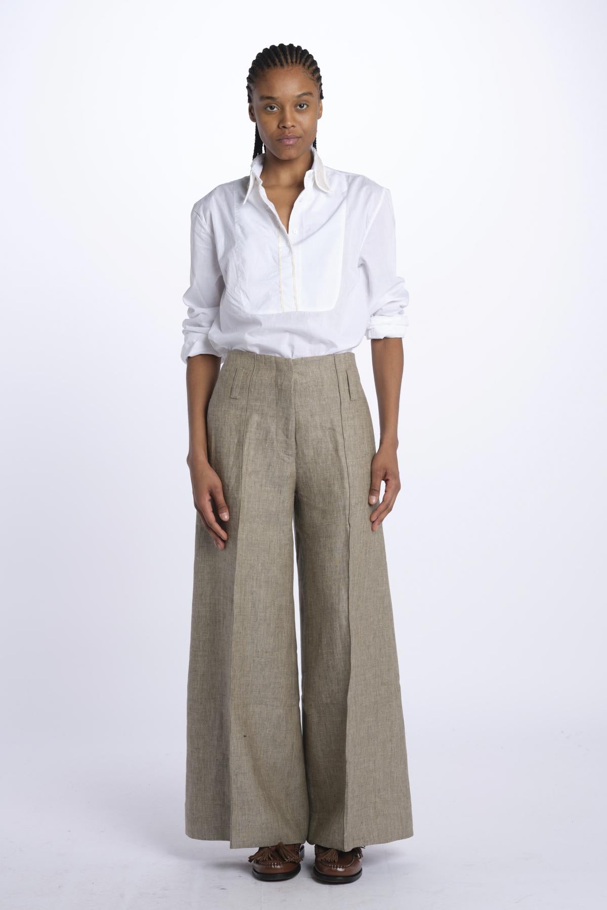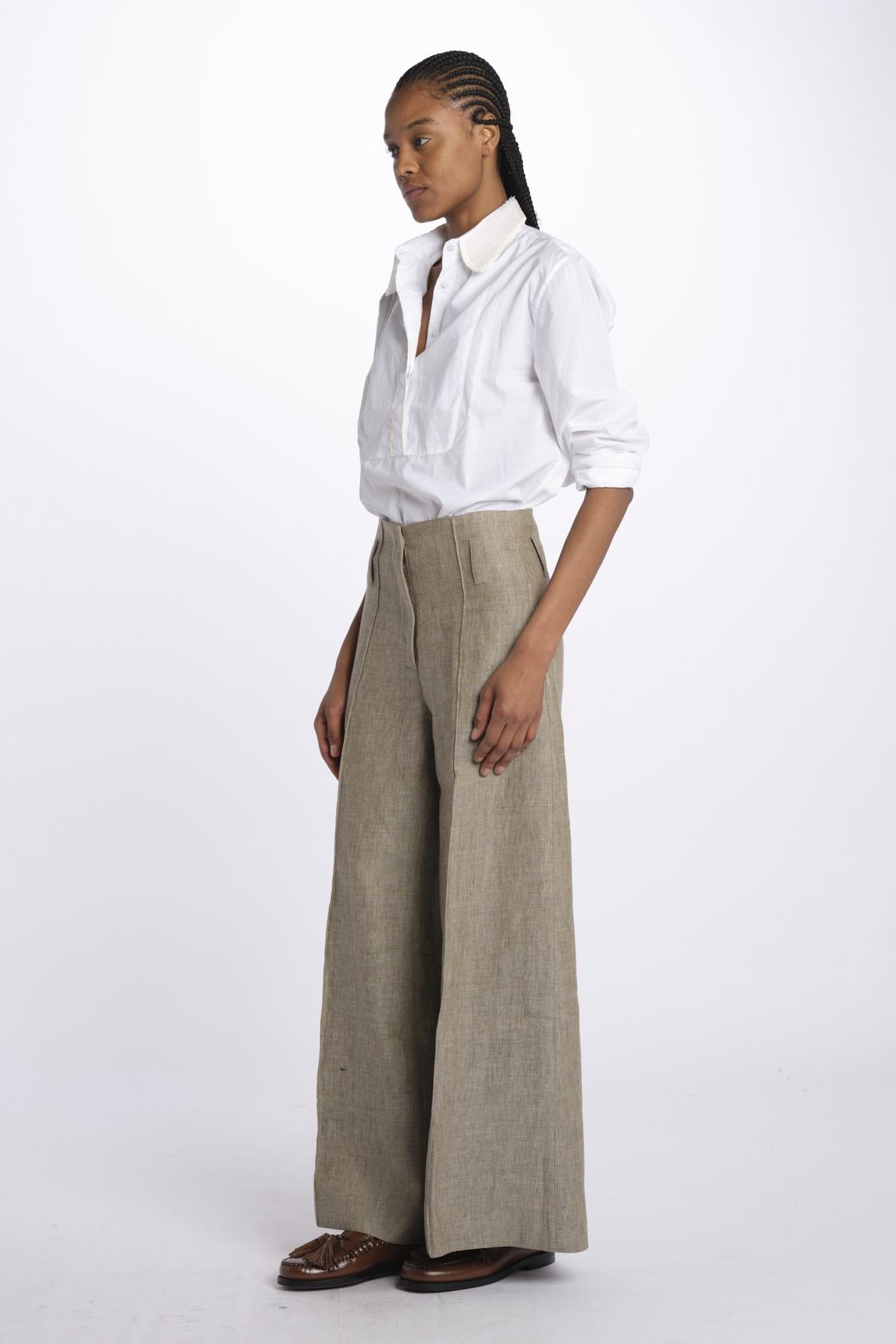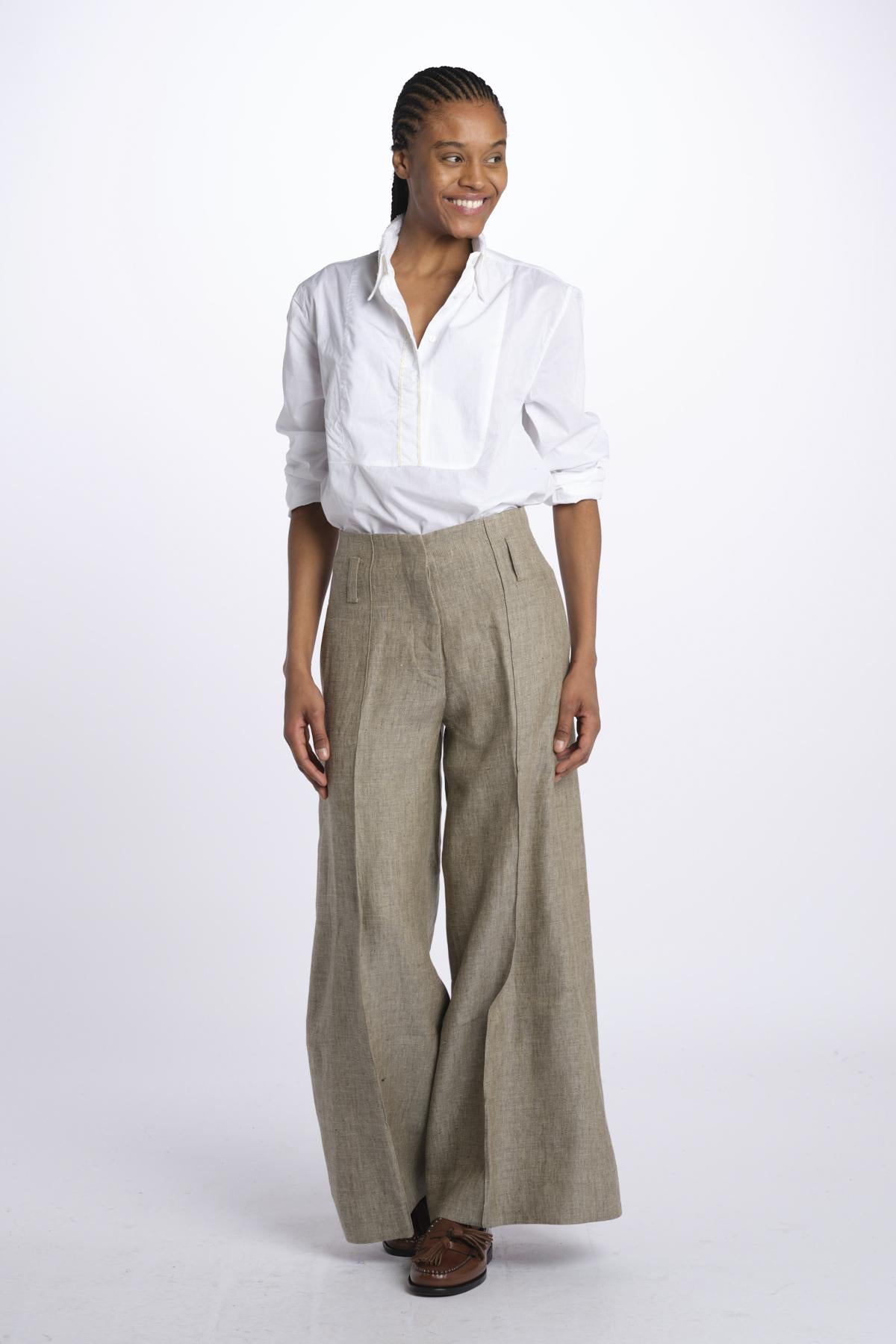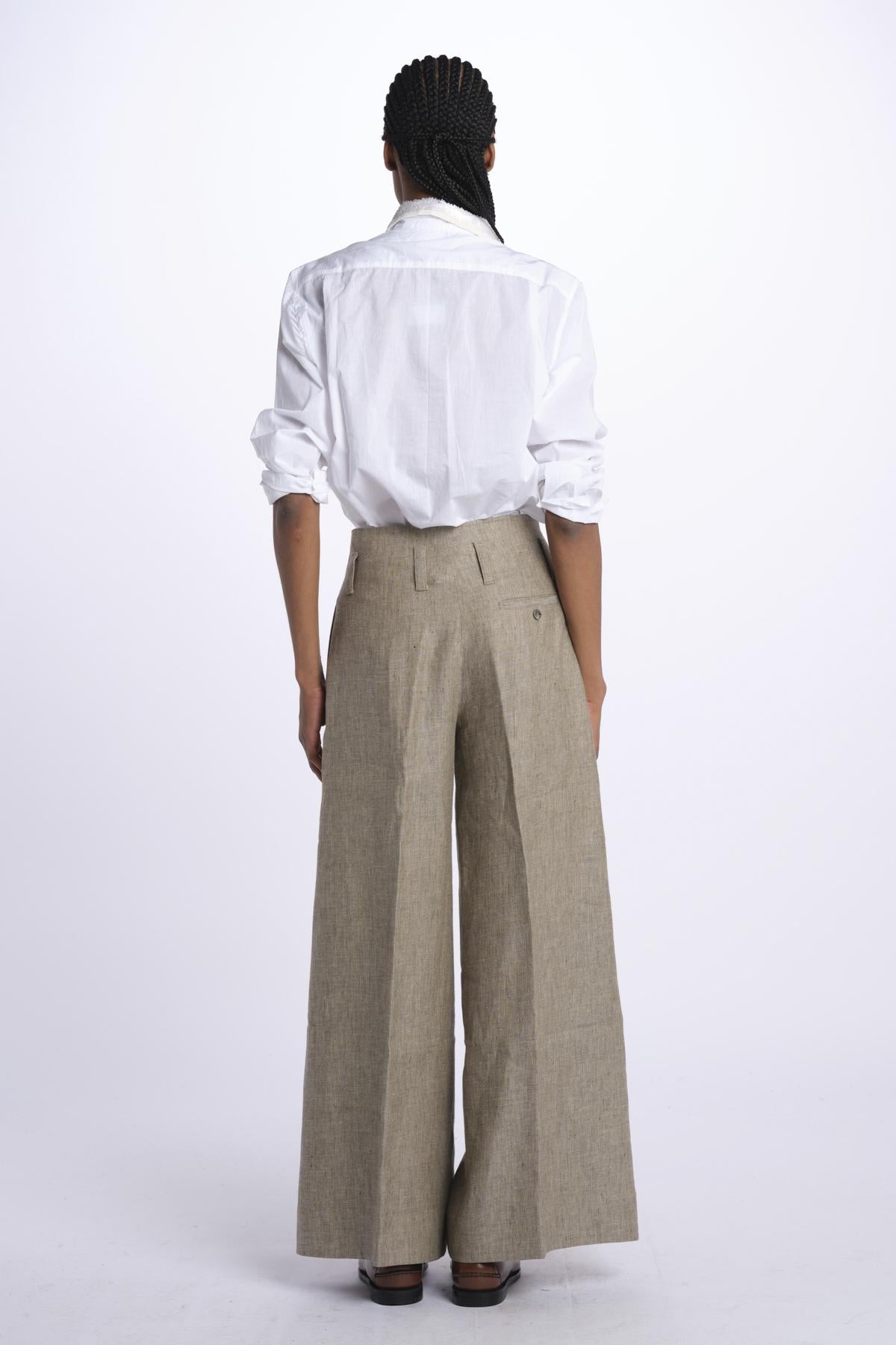 ORIANA cropped nervature trousers by quelledue. The model is 174 cm tall and wears a size 40. Composition: 100% cotton.