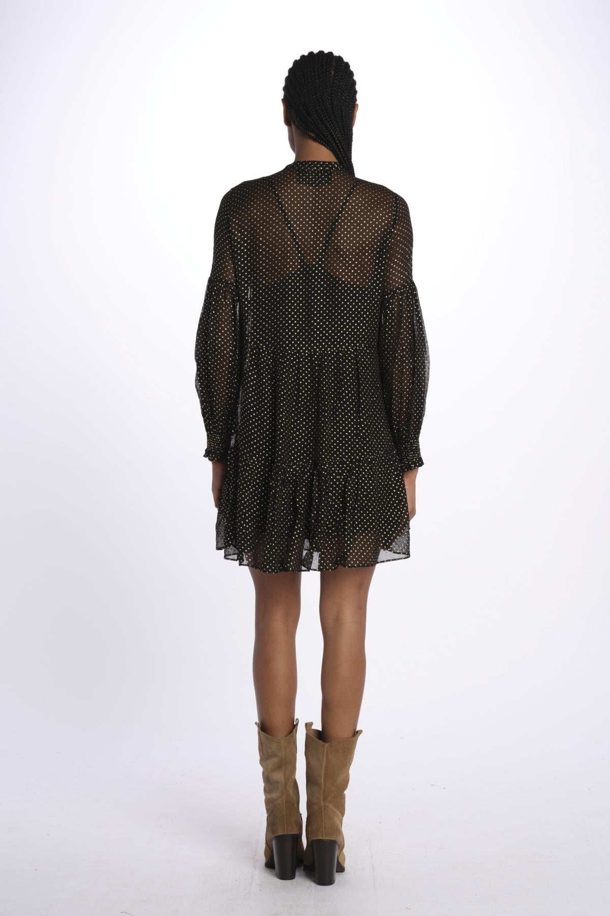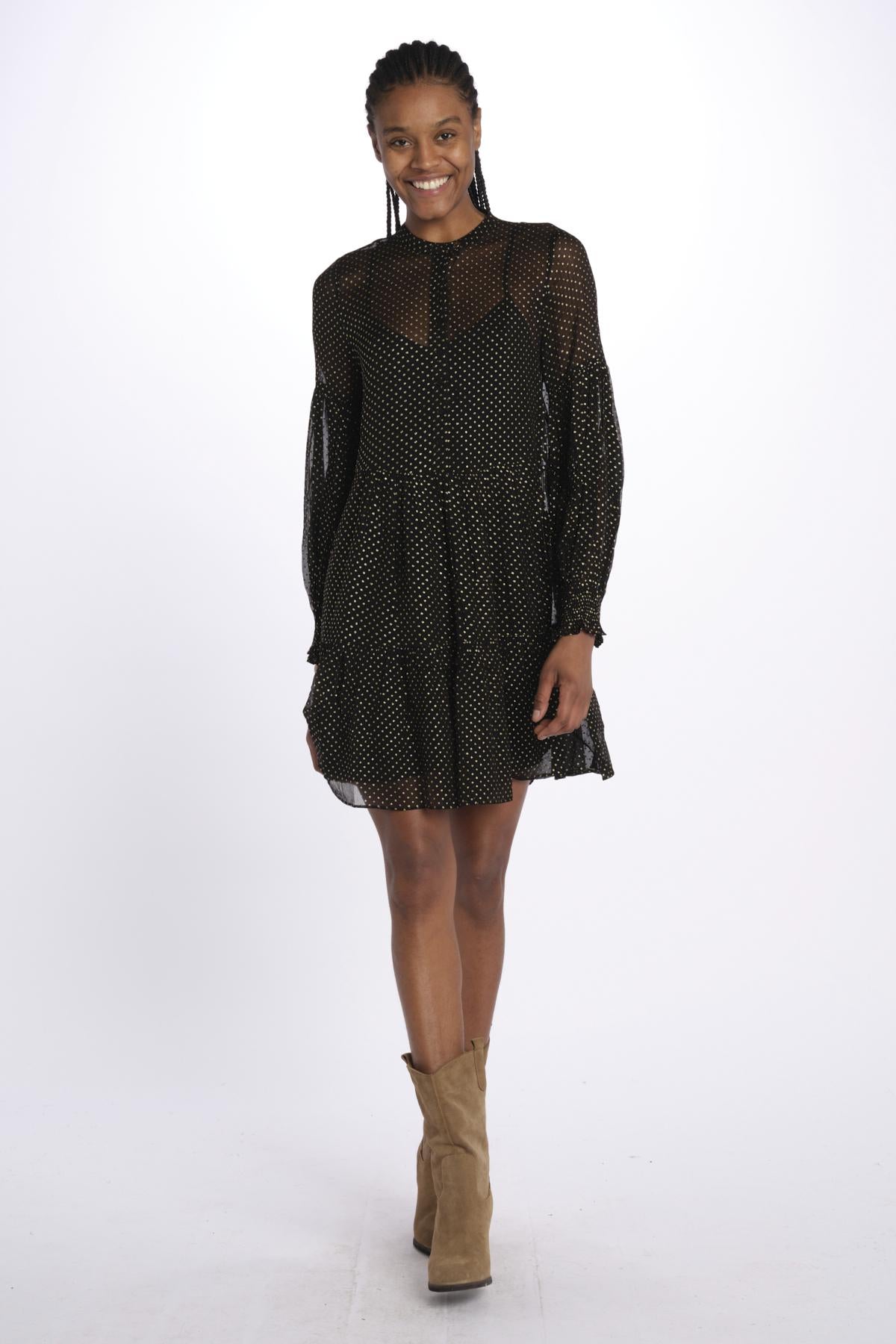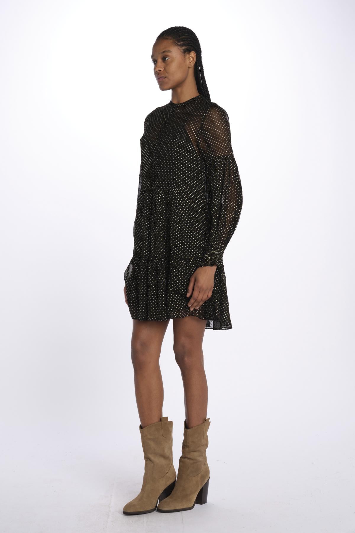 RANDY black dress with gold polka dots by zadig&voltaire. The model is 174 cm tall and wears a size S. Composition: 100% viscose.