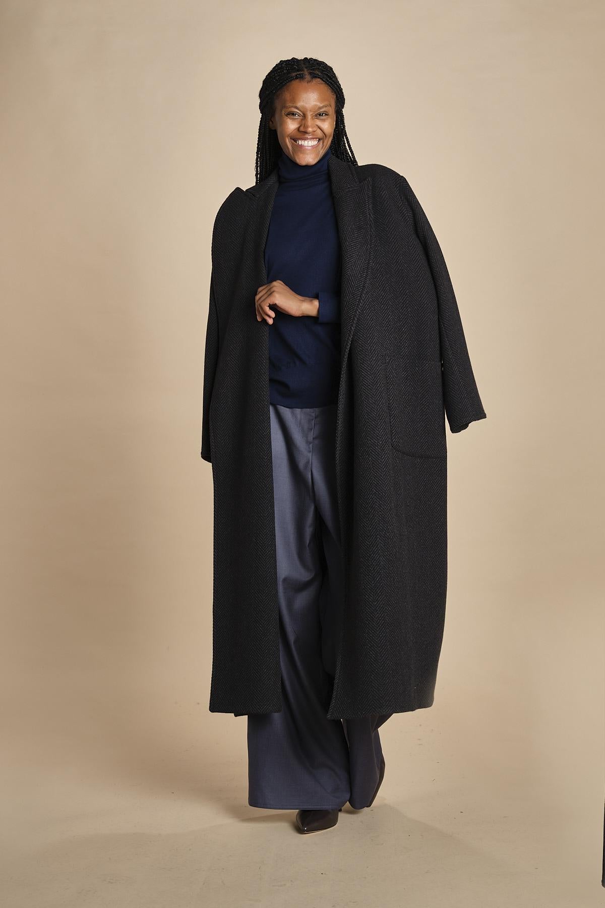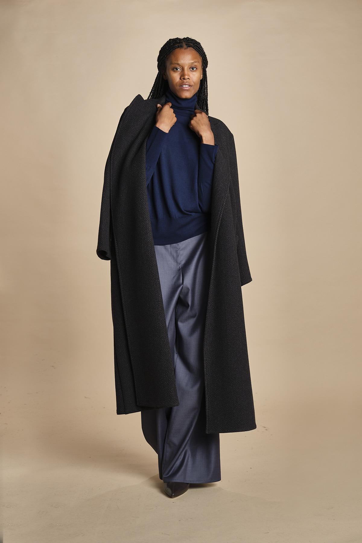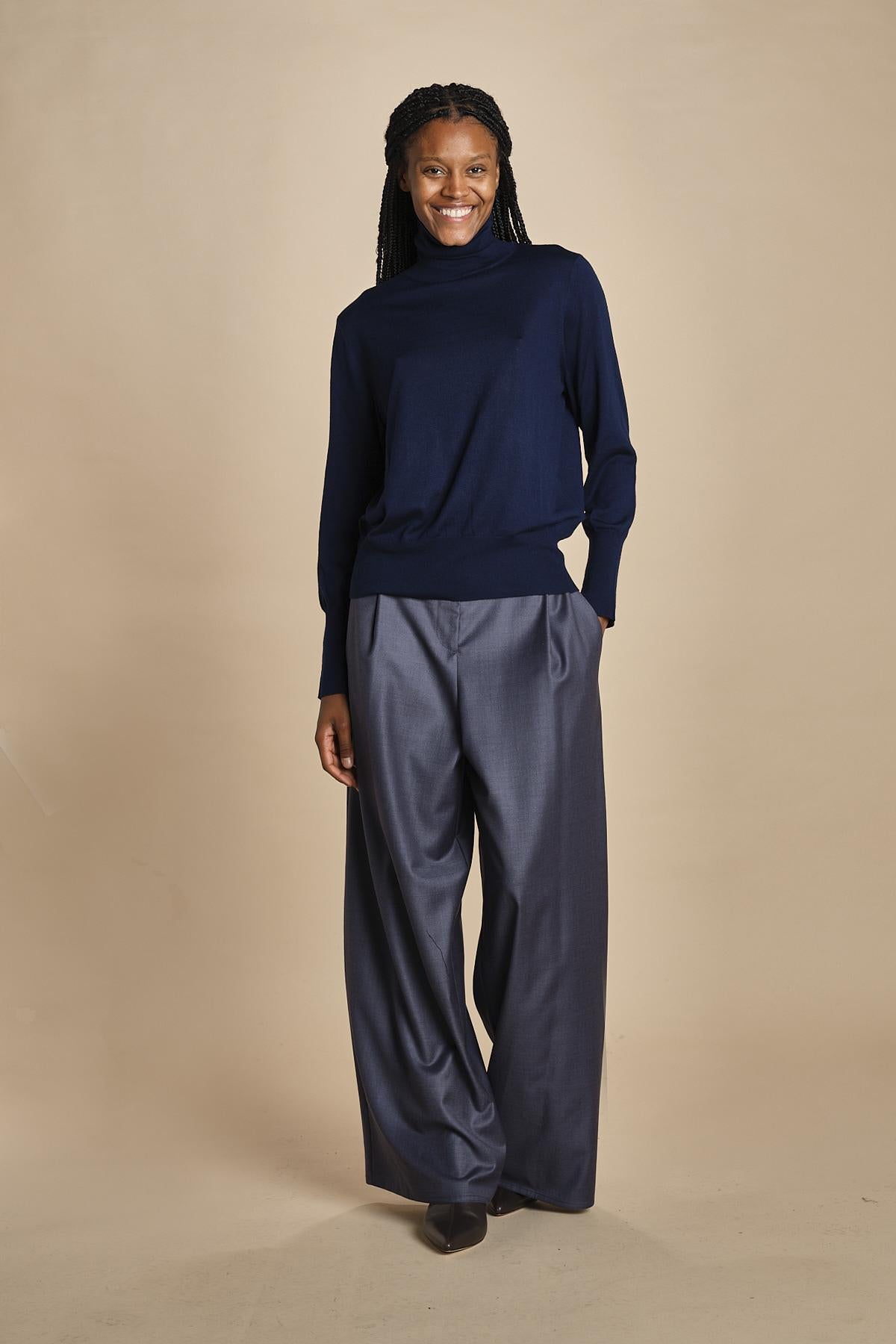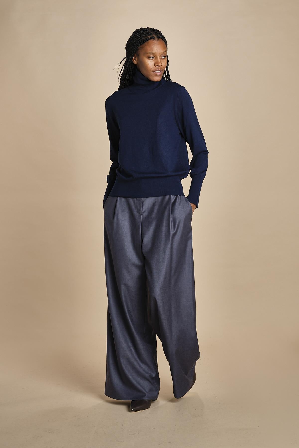 pantalone in tasmania by dusan. La modella è alta 174 cm e indossa una taglia S. Composizione: 100% lana.
