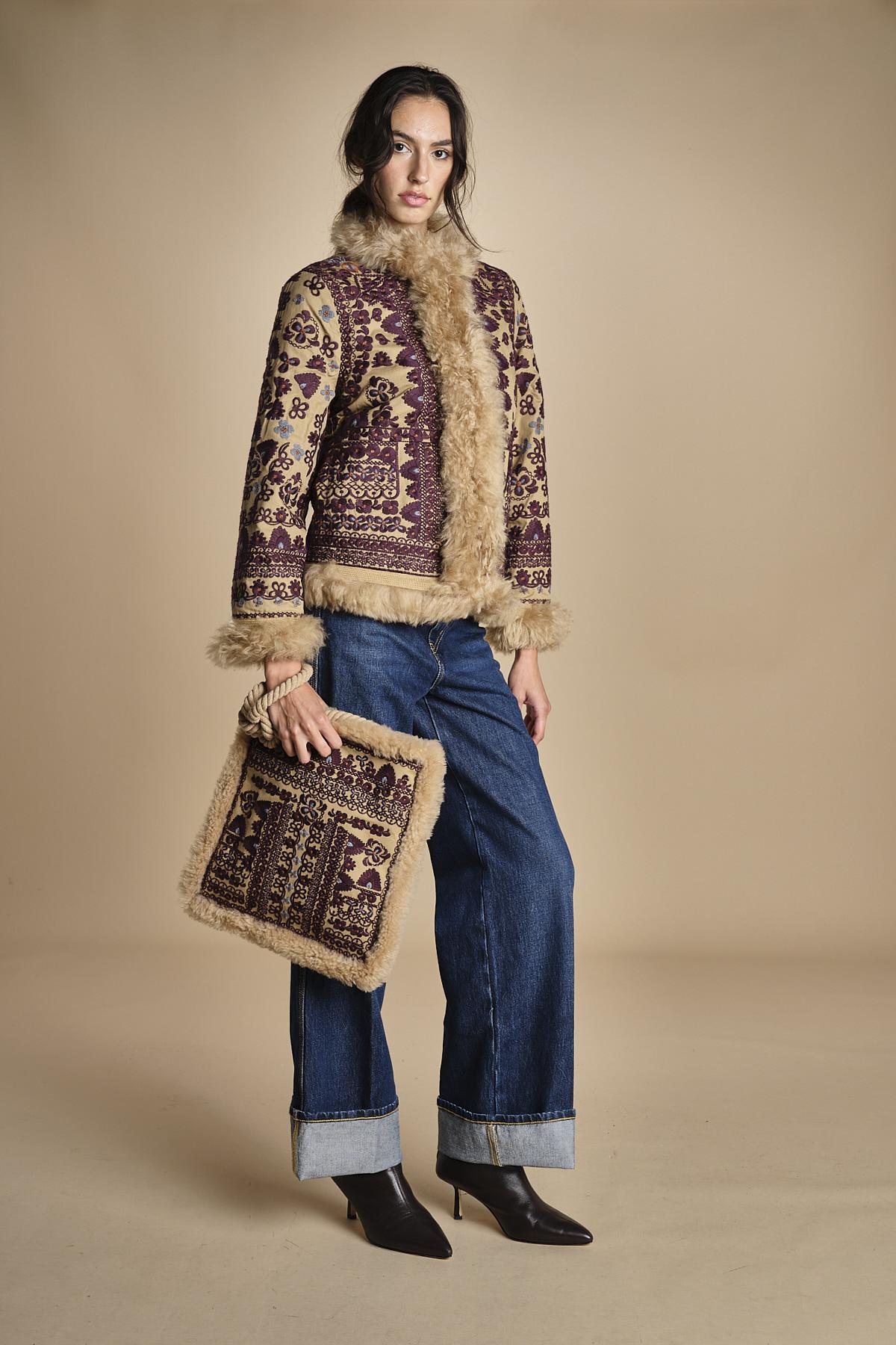 giacca ricamata con montone
