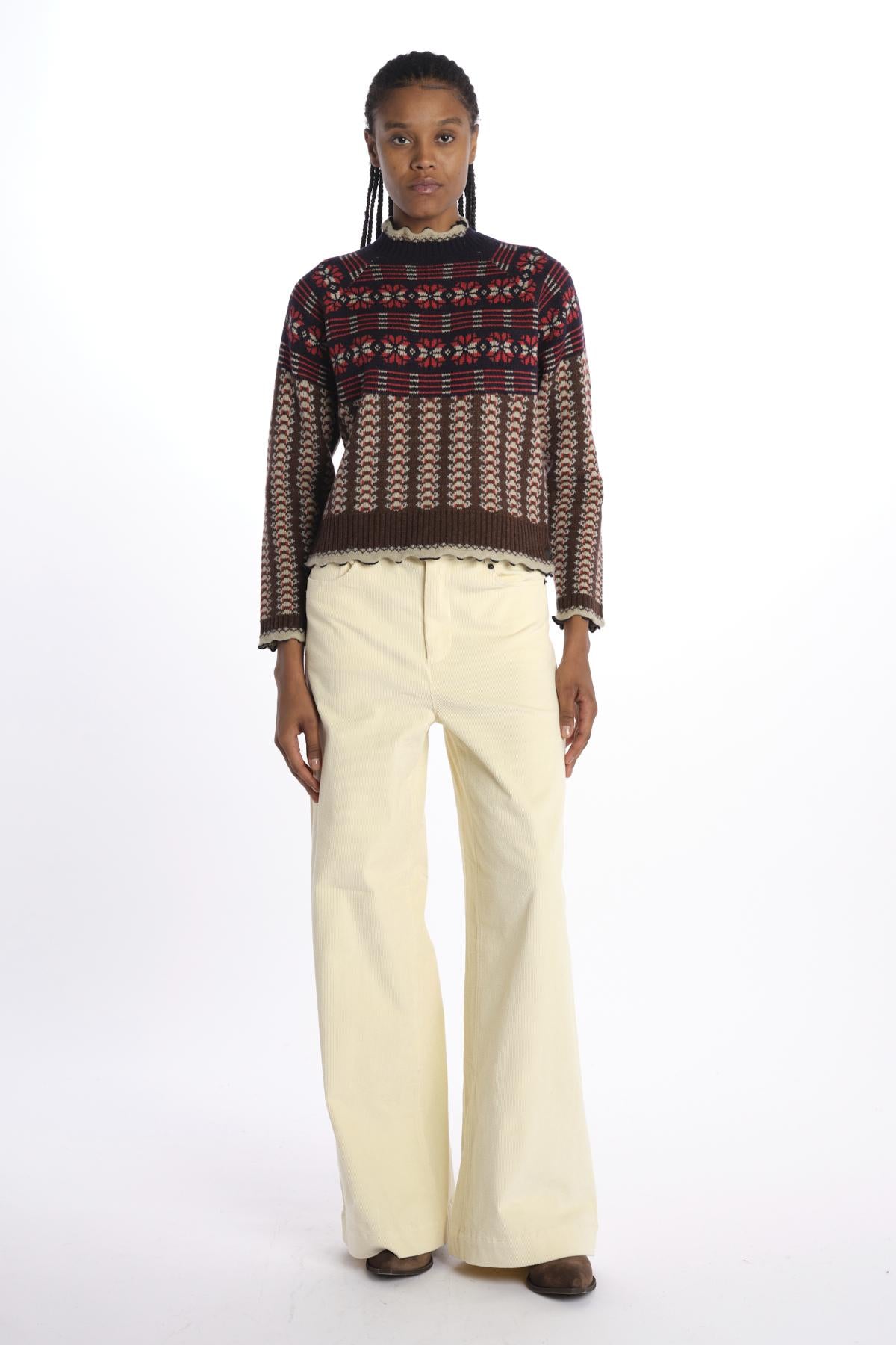 maglia greche by sea ny. The model is 174 cm tall and wears a S. Composition: 100% extrafine wool.