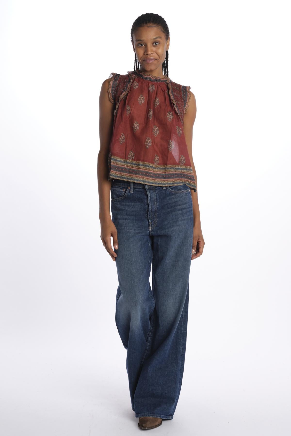 Printed voile top by sea ny. The model is 174 cm tall and wears a S. Composition: 100% cotton.