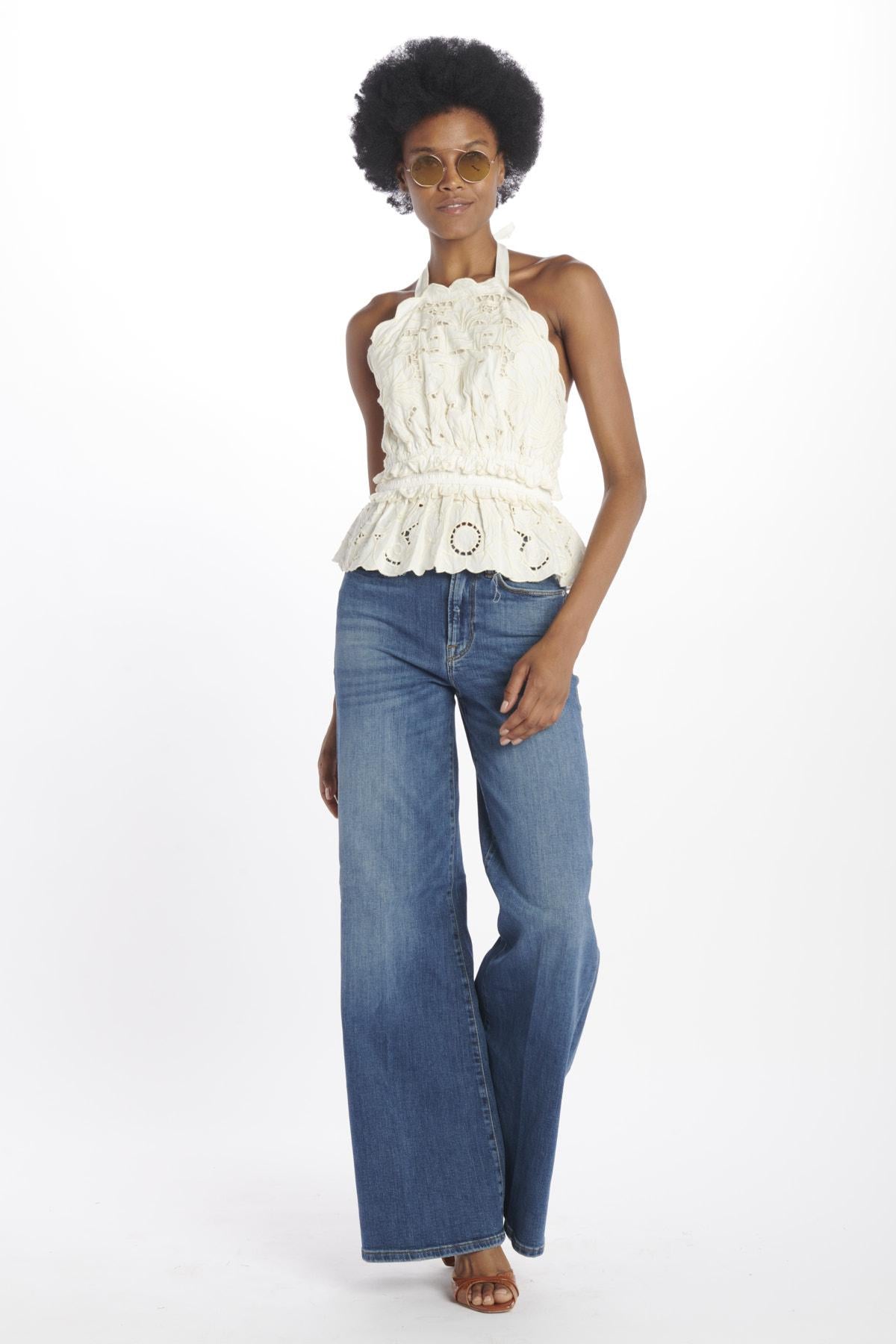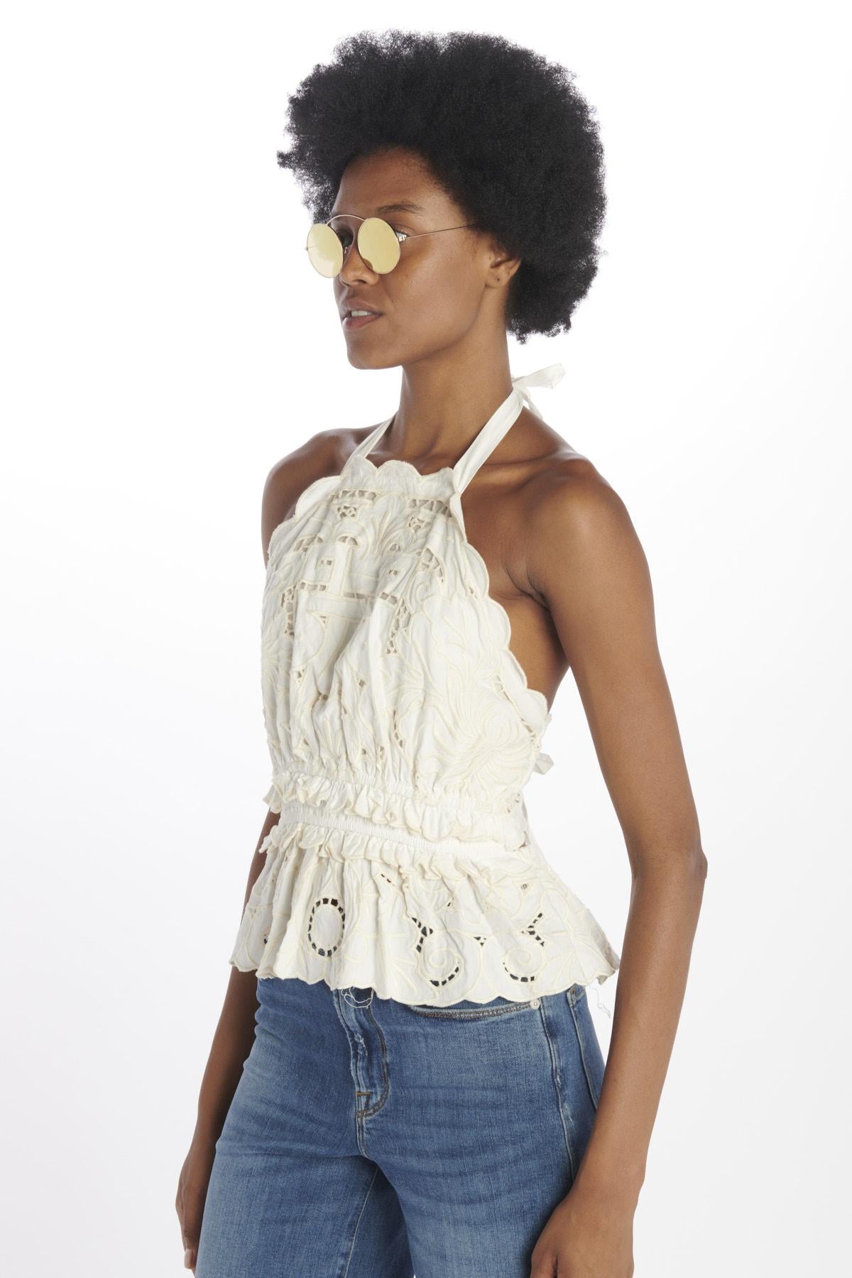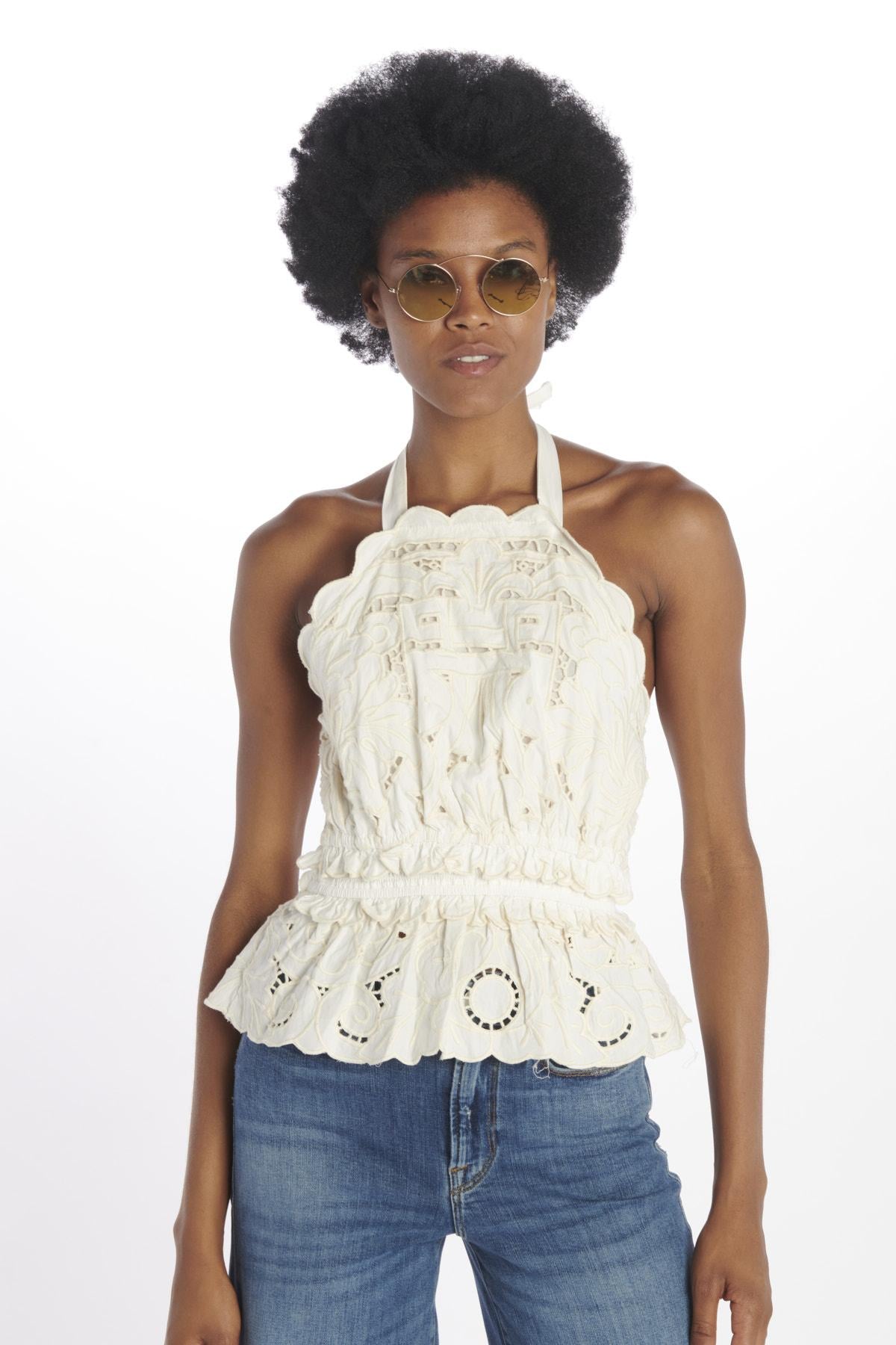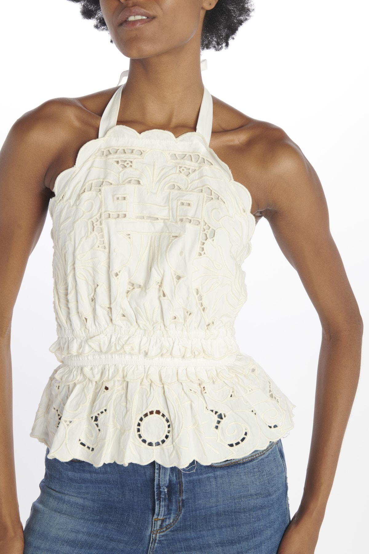 BLAIRE EYELET low-cut top with jacquard embroidery