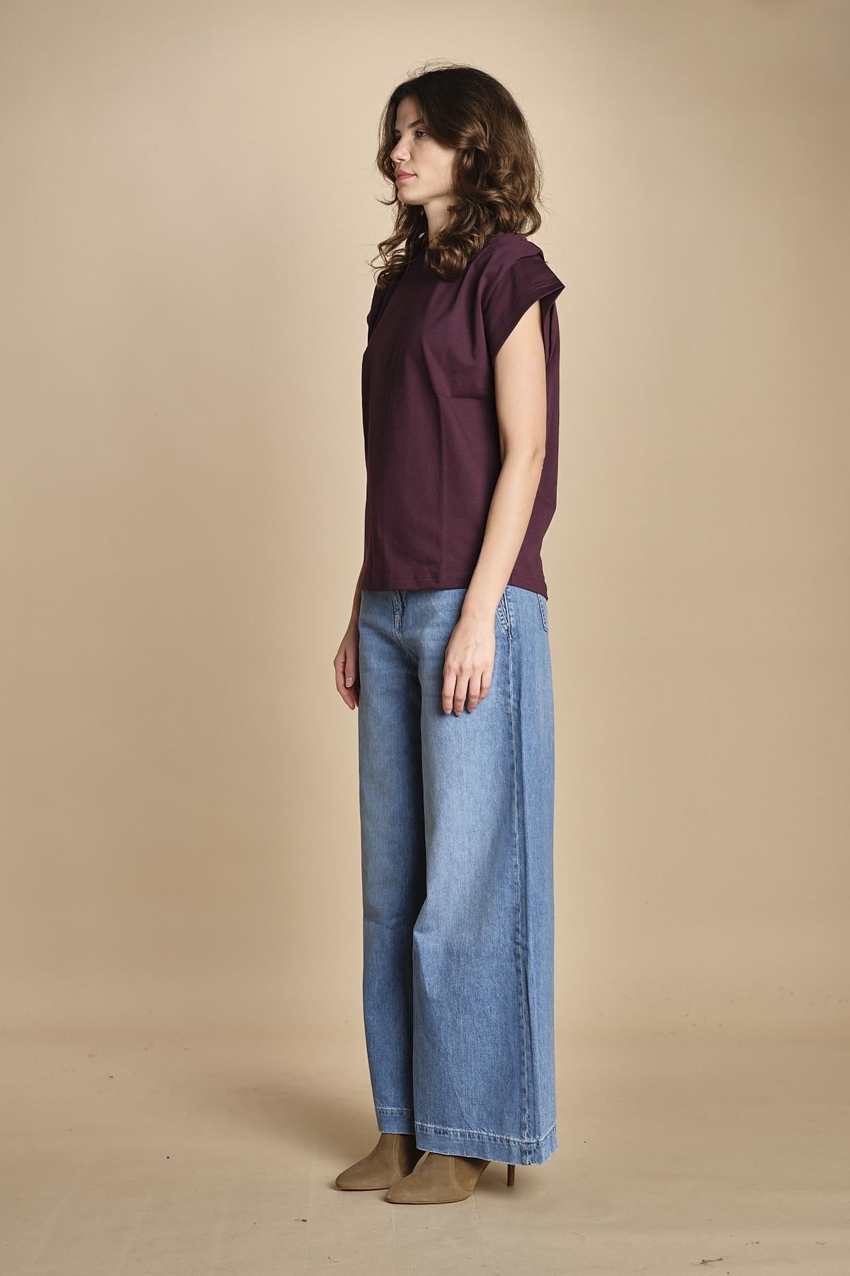 t-shirt con spallina. La modella è alta 176 cm e indossa una taglia 0. 100% cotone