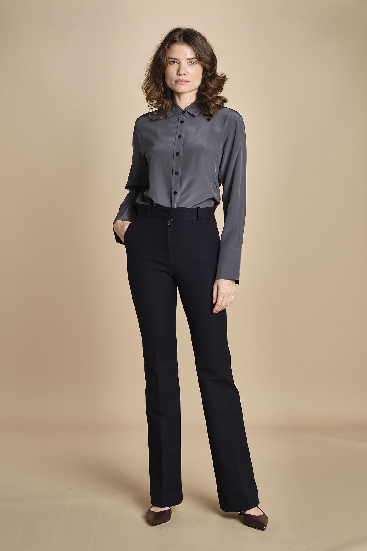 pantalone in gabardine stretch. La modella è alta 176 cm e indossa una taglia 34. 53% VISCOSA 42% COTONE 5% ELASTANE