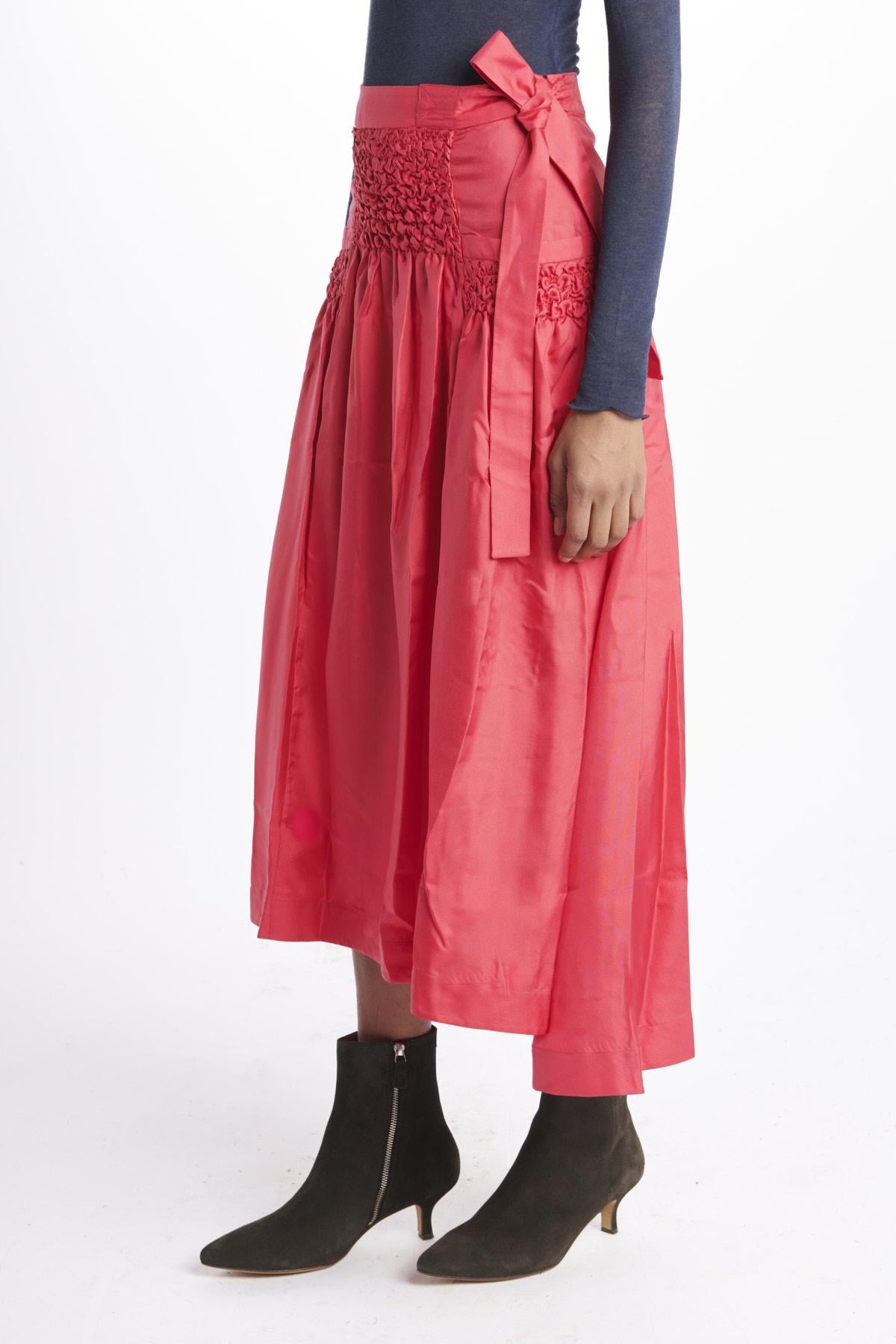 Skirt by Teija in embossed longuette silk. The model is 174 cm tall and wears size 8. Composition: 100% Silk.