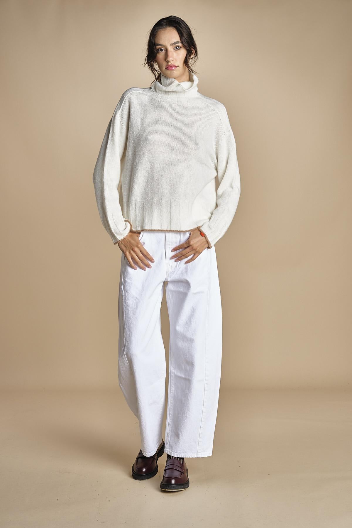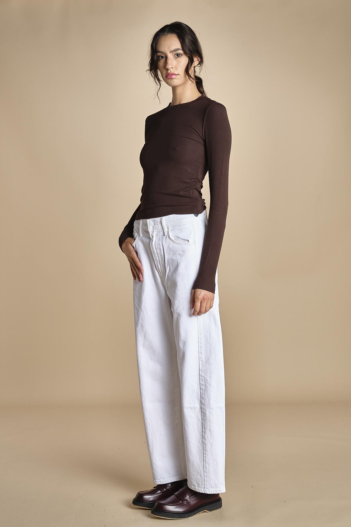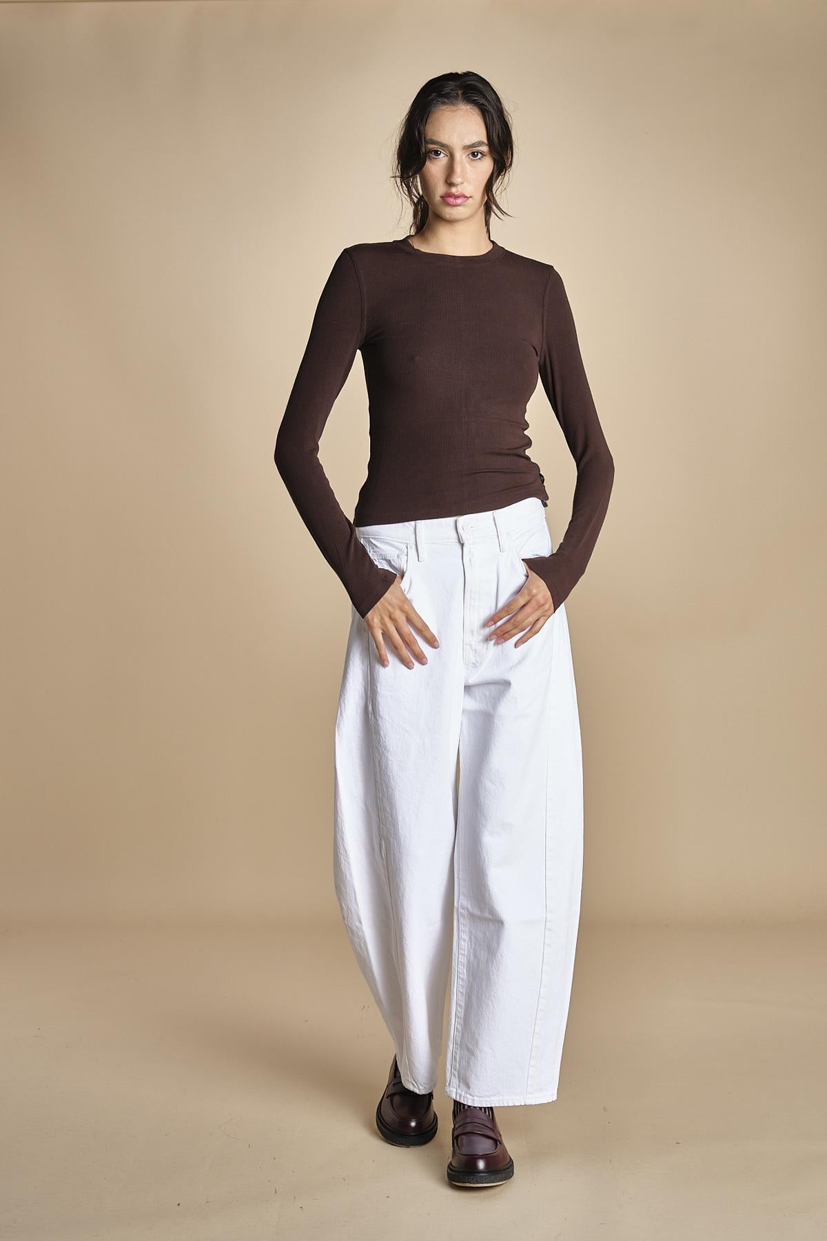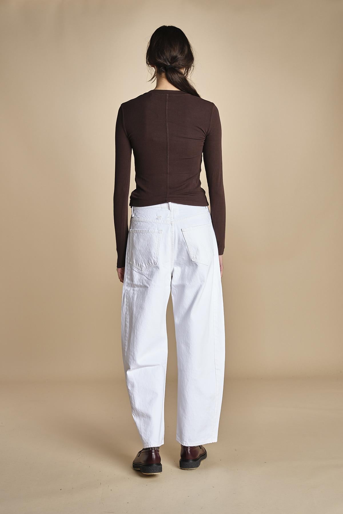 denim bananaby mother. La modella è alta 180 cm e indossa una taglia 26. 100% COTONE