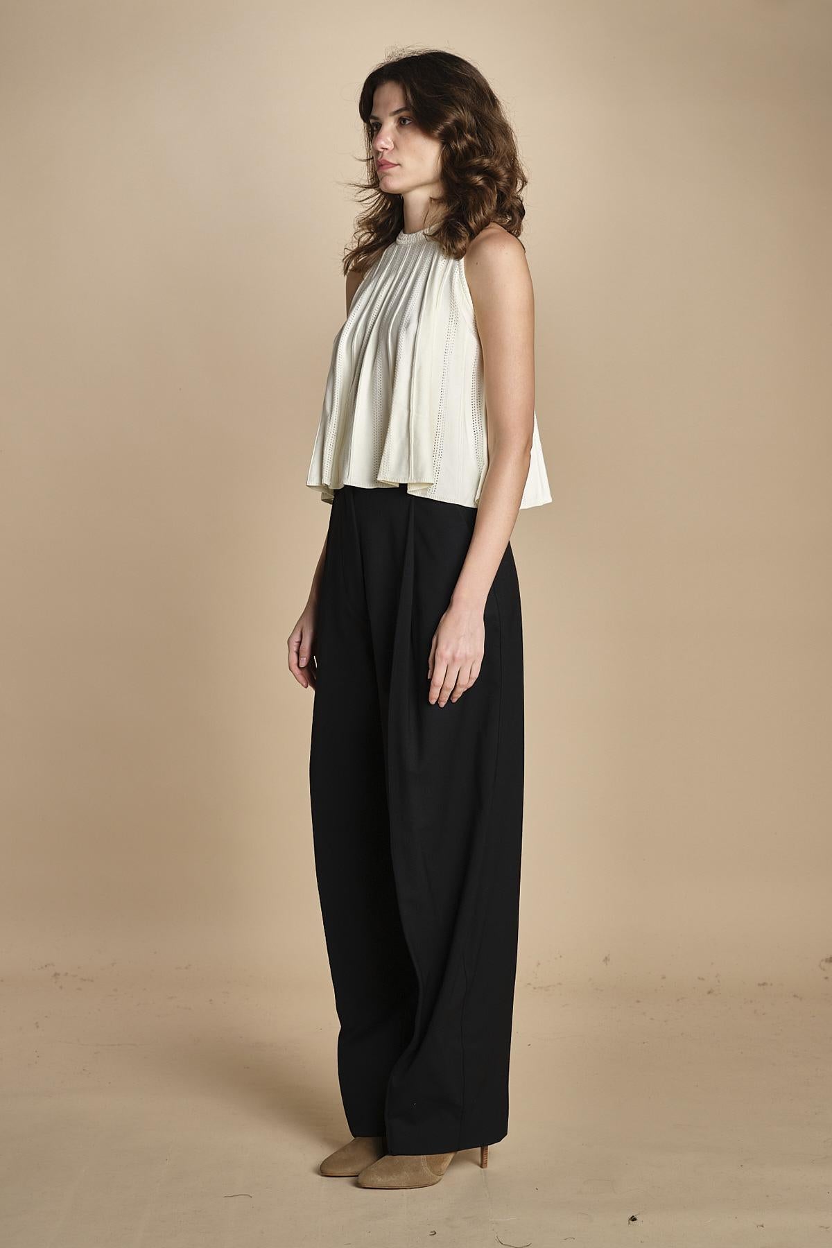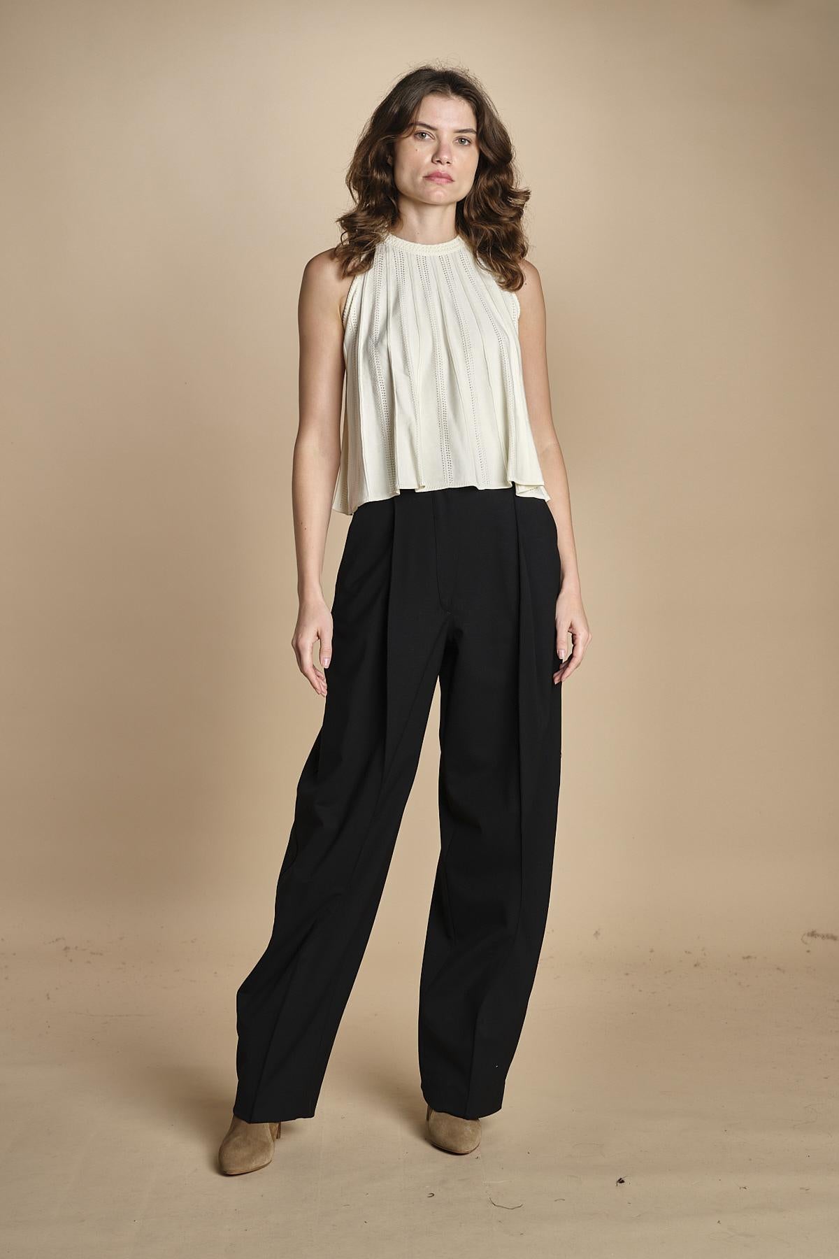 top in maglia plisse.La modella è alta 176 cm e indossa una taglia 0. 50% cotone 50% modal