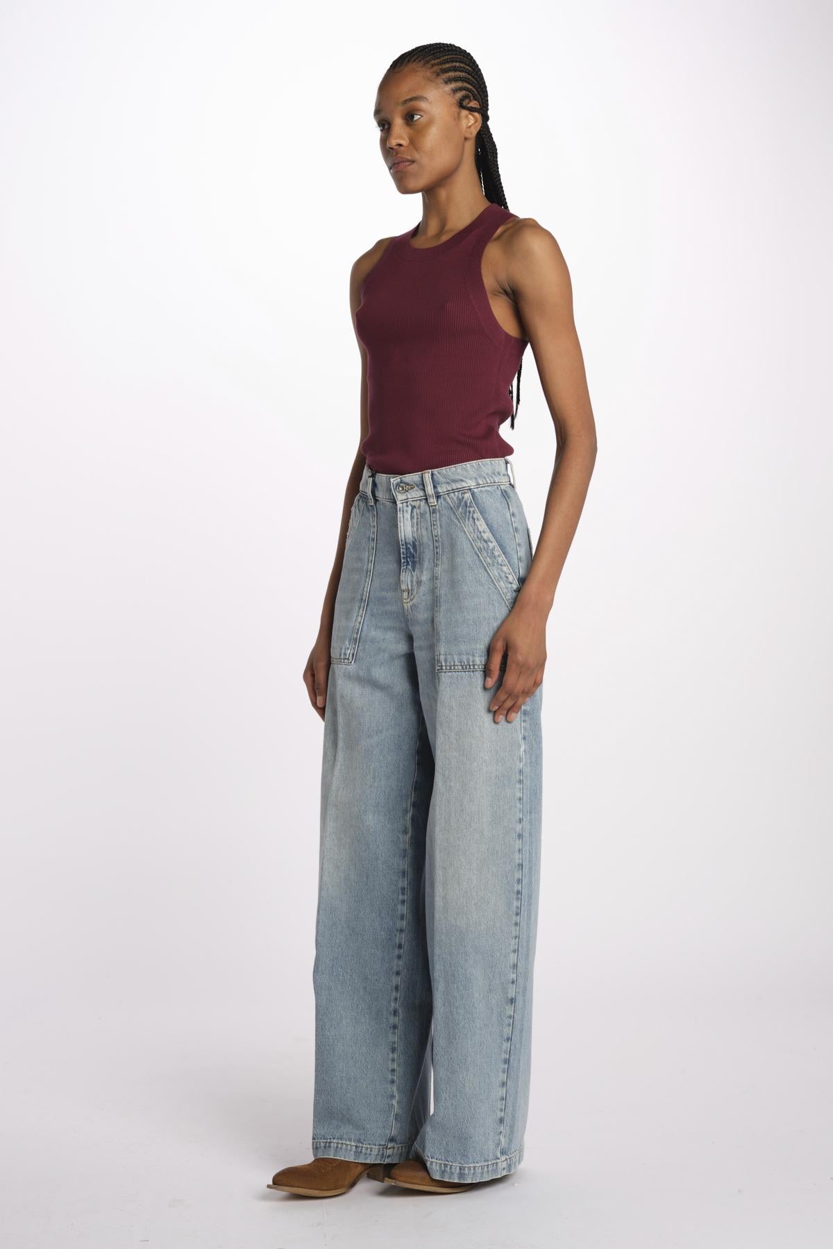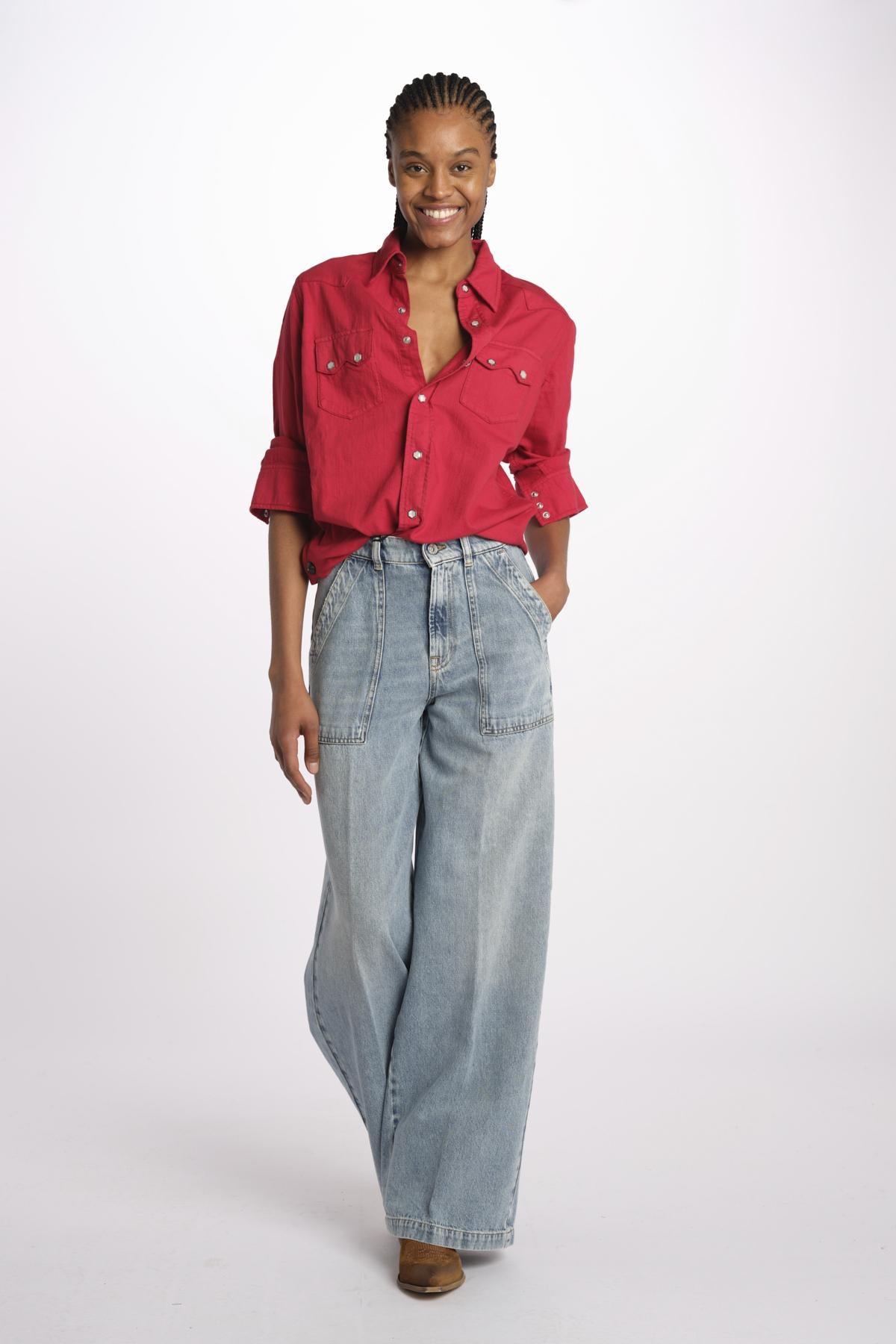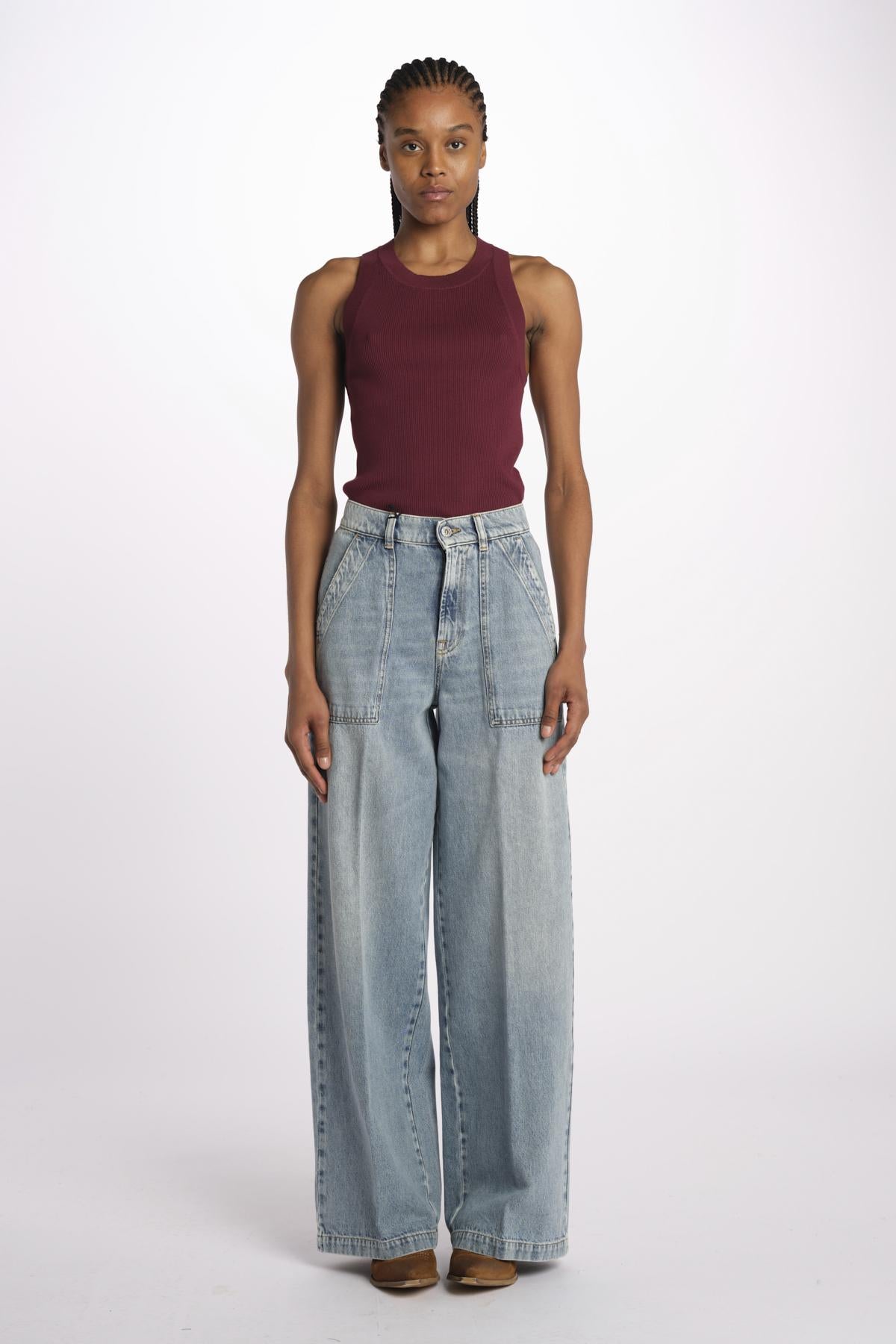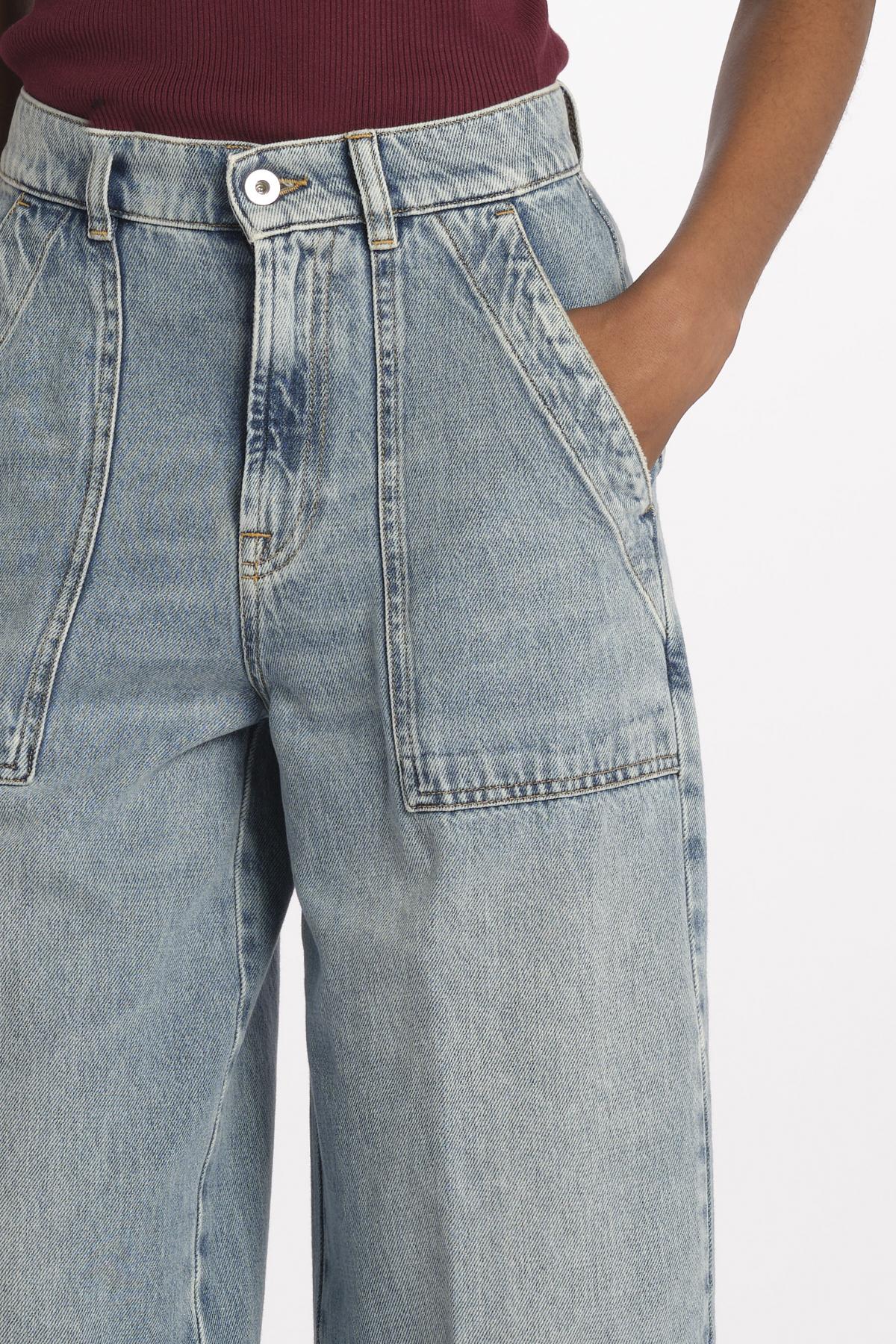 Denim FATA pocket by true avenue. The model is 174 cm tall and wears a size 26 (IT40). Composition: 98% cotton, 2% elastane.