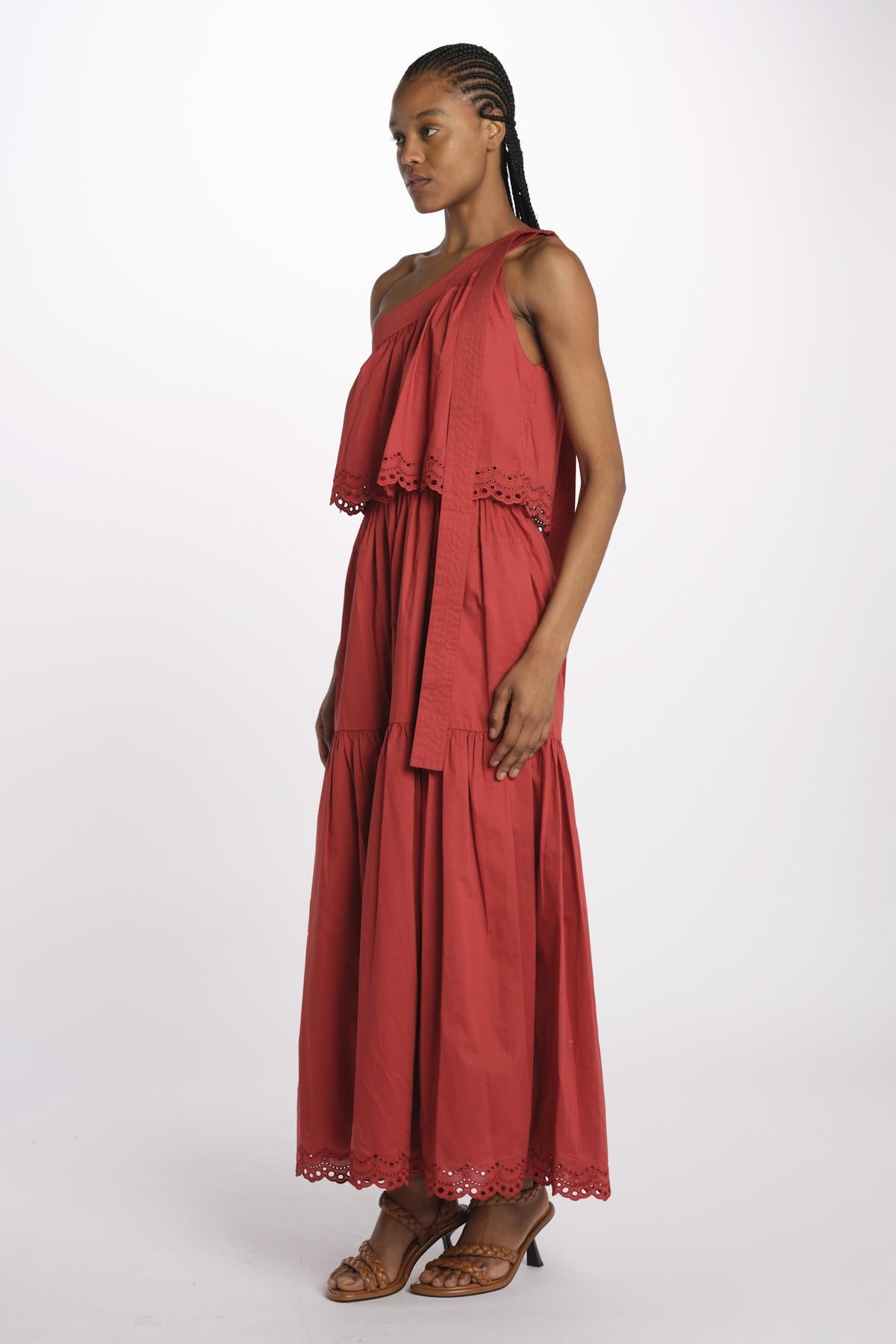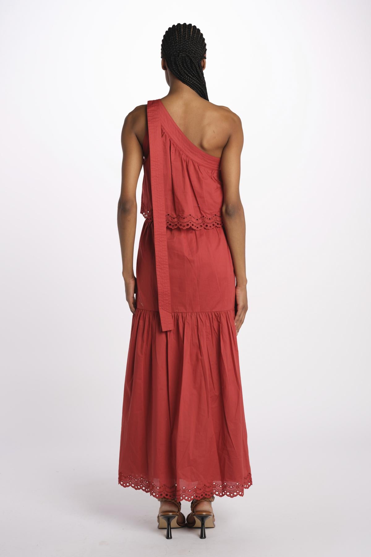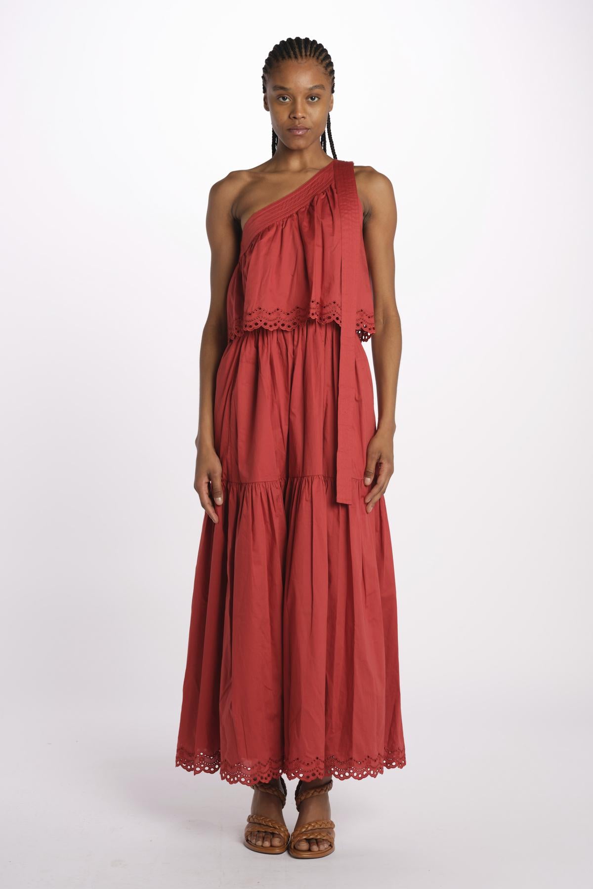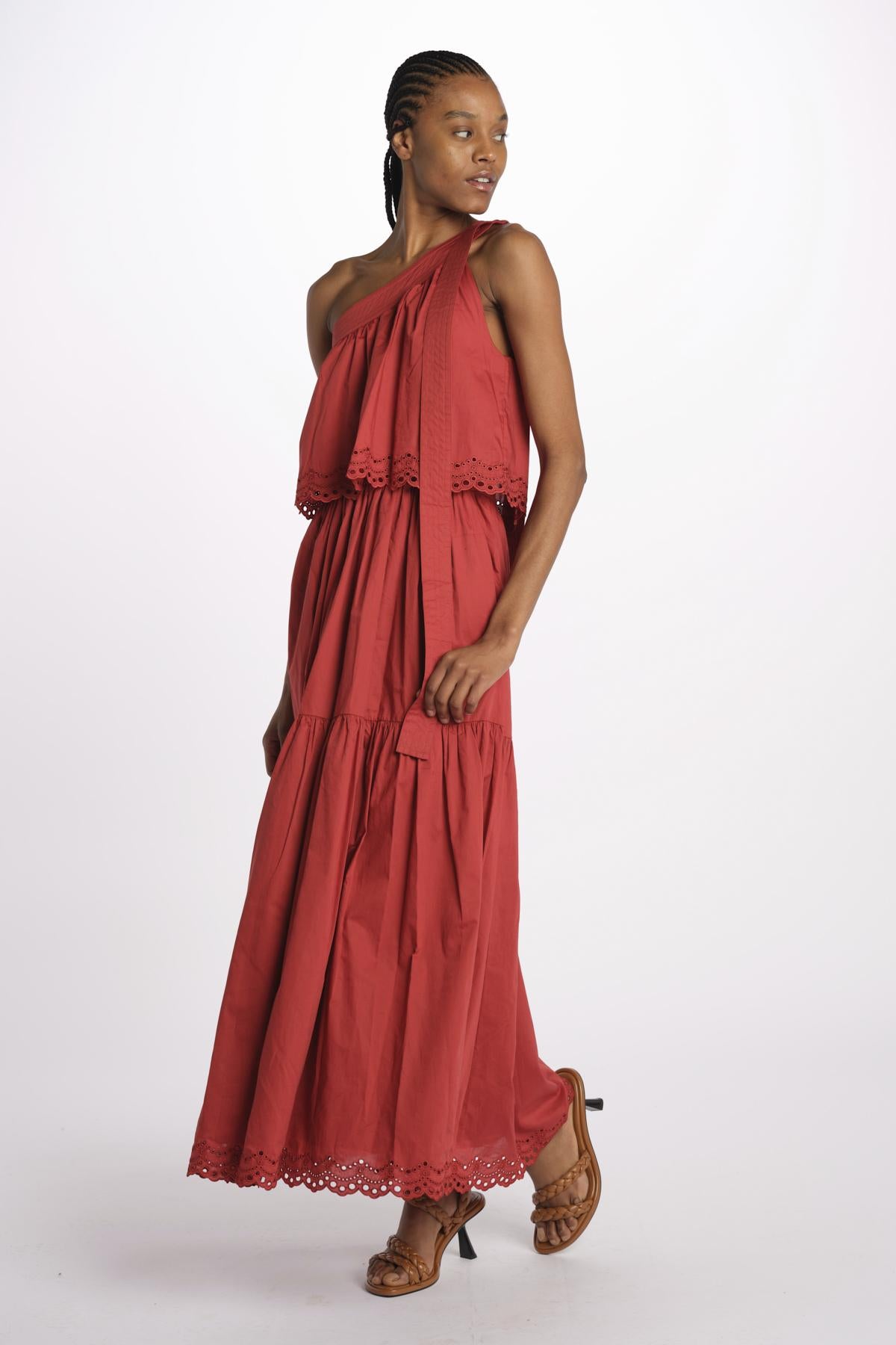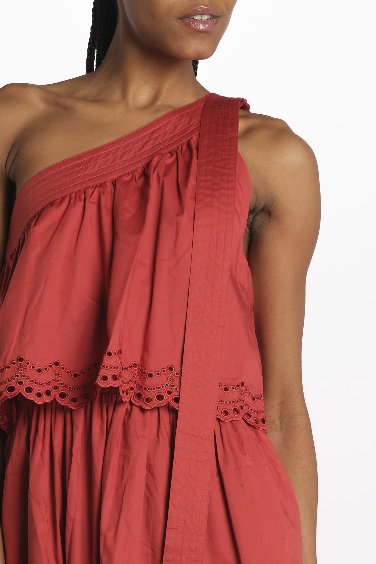 CORA one shoulder dress by vanessa bruno. The model is 174 cm tall and wears a size 34. Composition: 55% lyocell, 45% cotton.