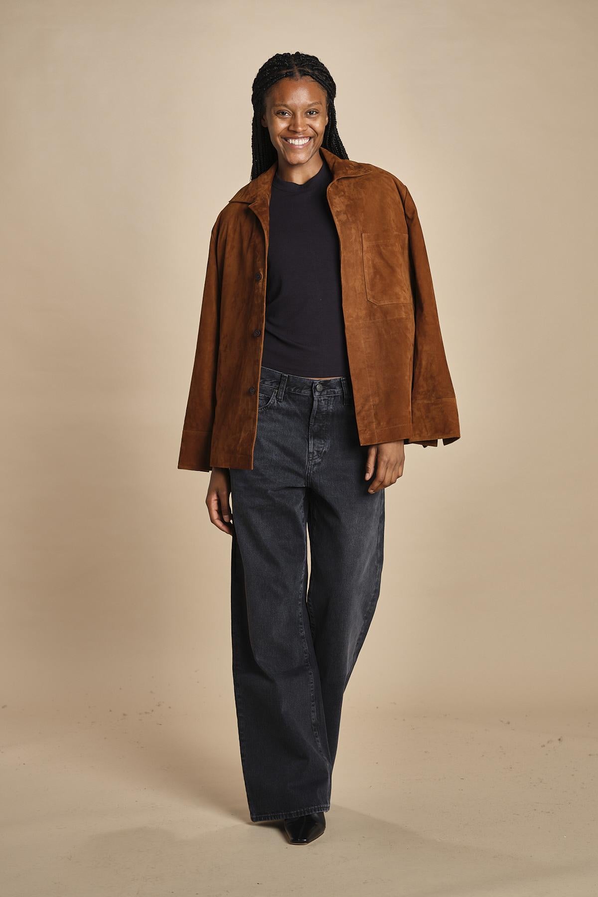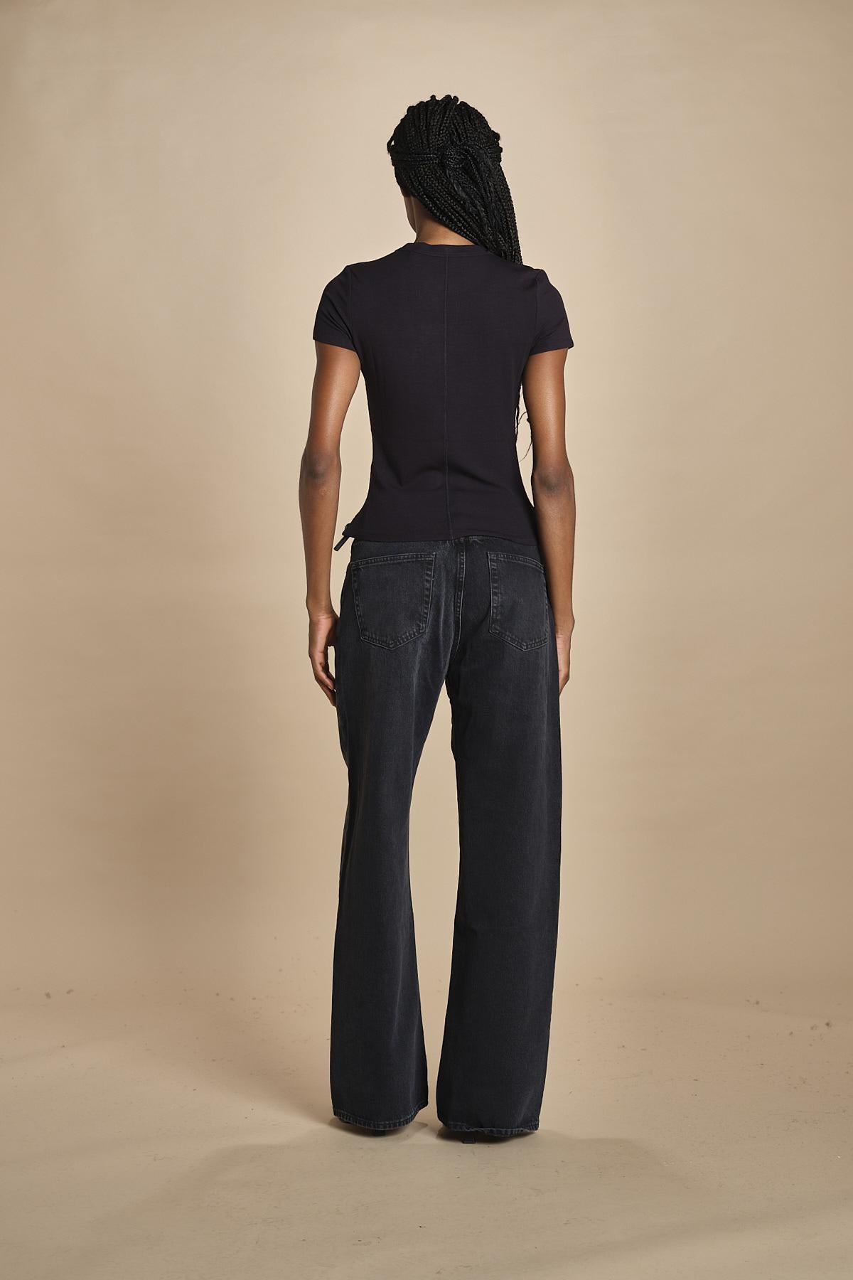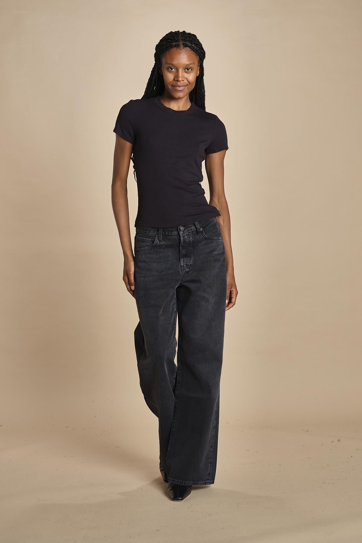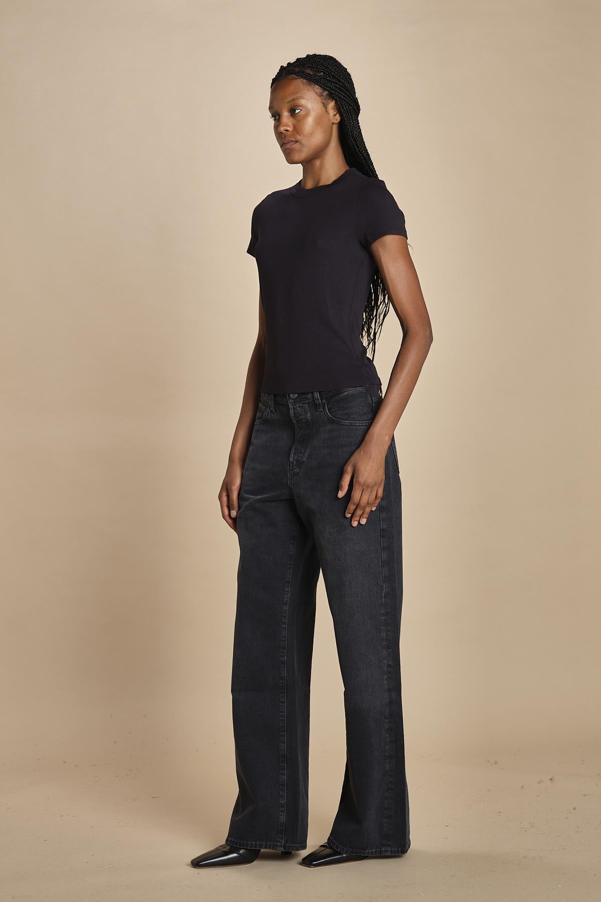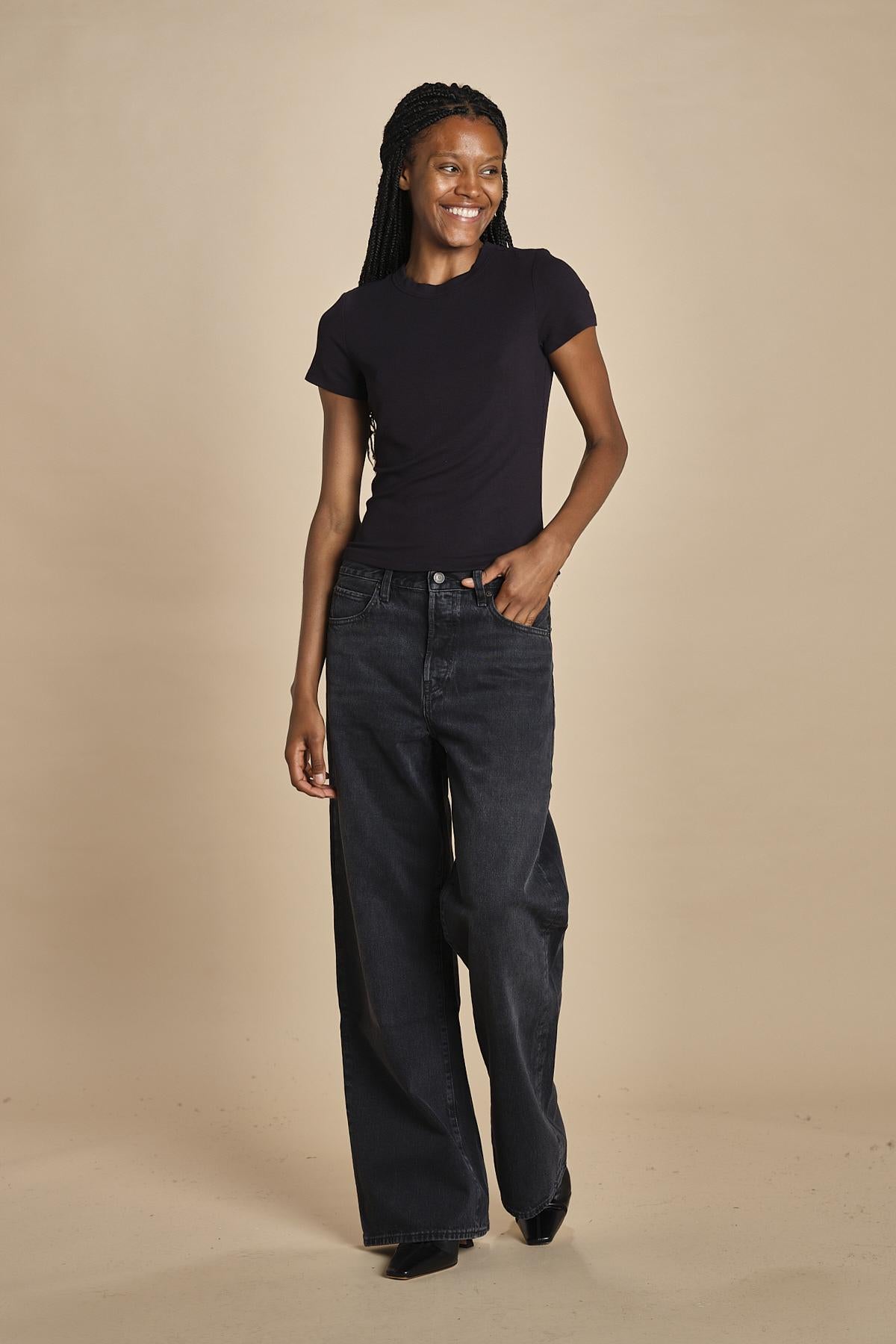 t-shirt a costine con manica corta by frame. La modella è alta 174 cm e indossa una taglia S.