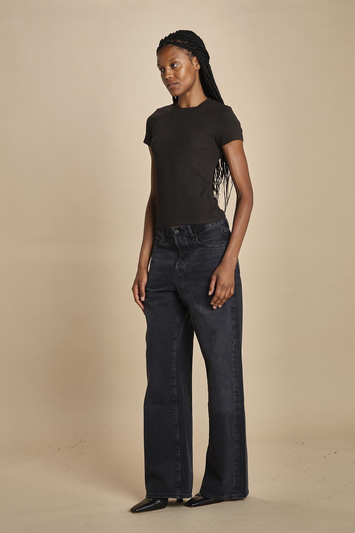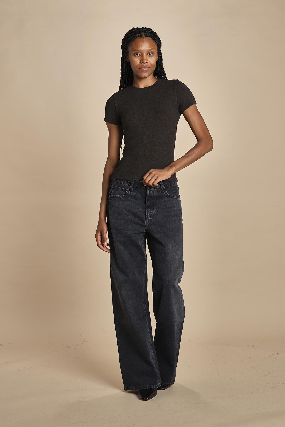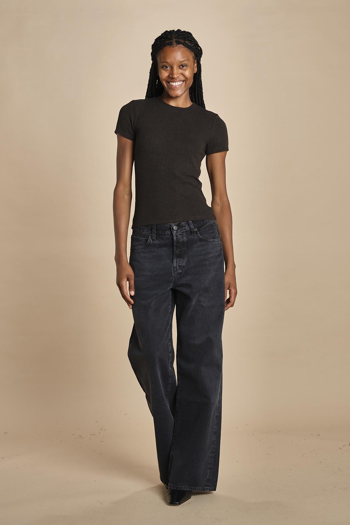 t-shirt a costine con manica corta by frame. La modella è alta 174 cm e indossa una taglia S.