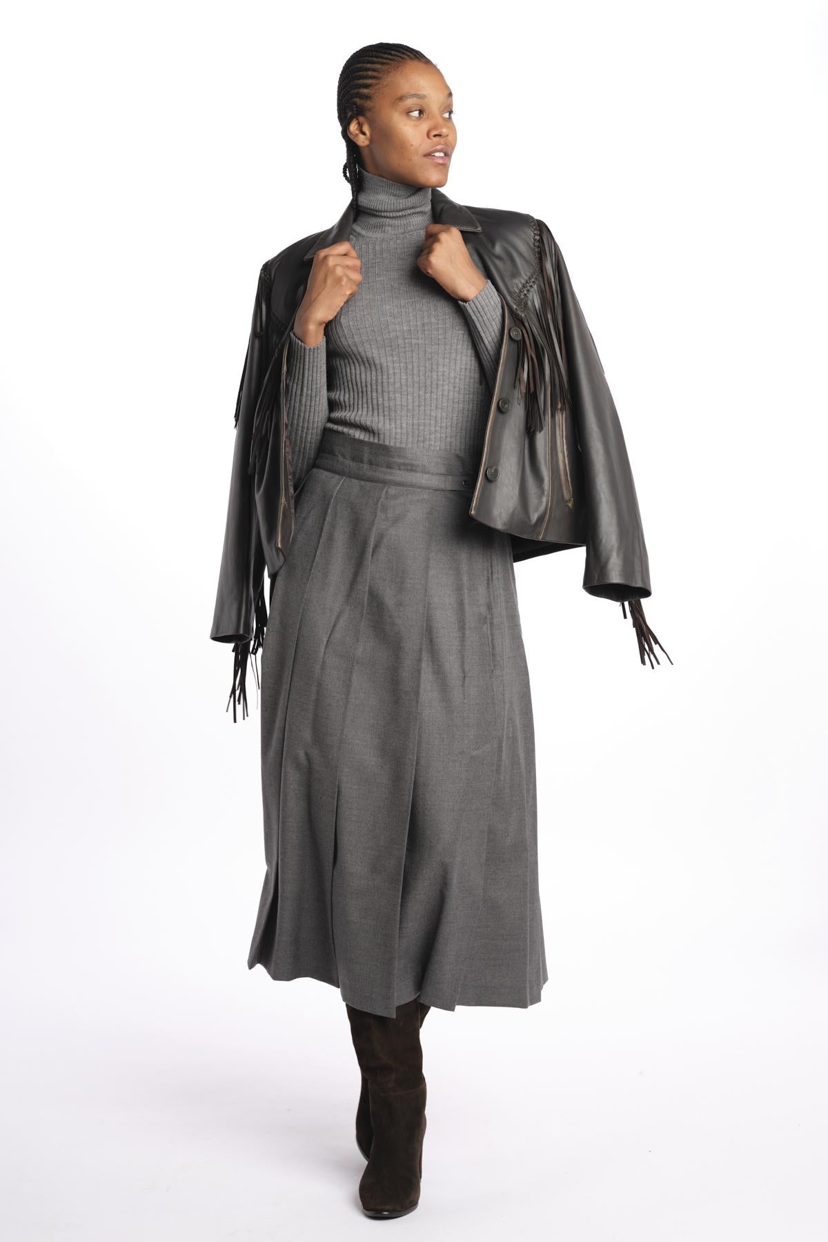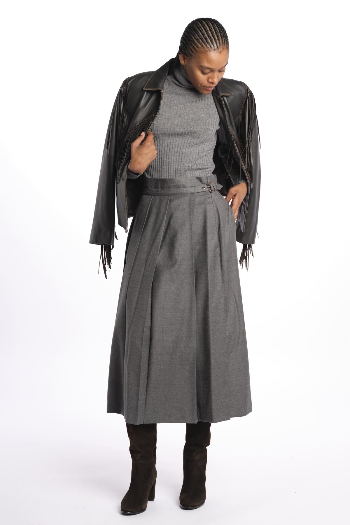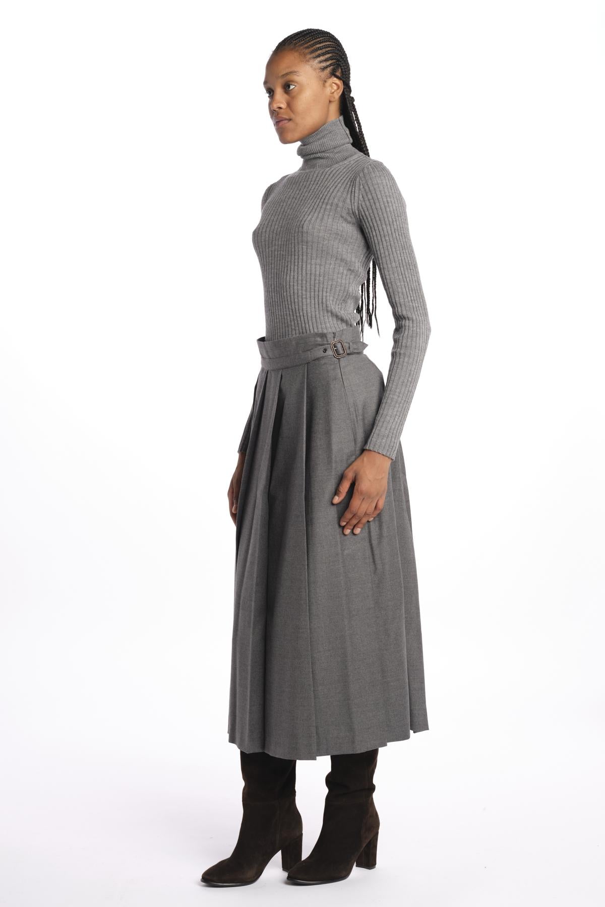 PALK long pleated skirtsThe model is 174 cm tall and wears a size 38. Composition: 99% virgin wool, 1% elastane.