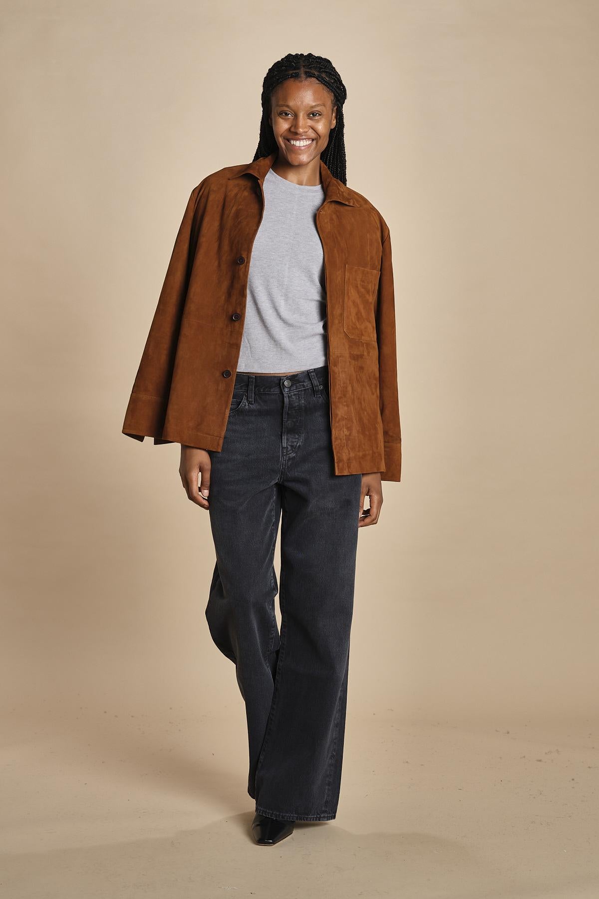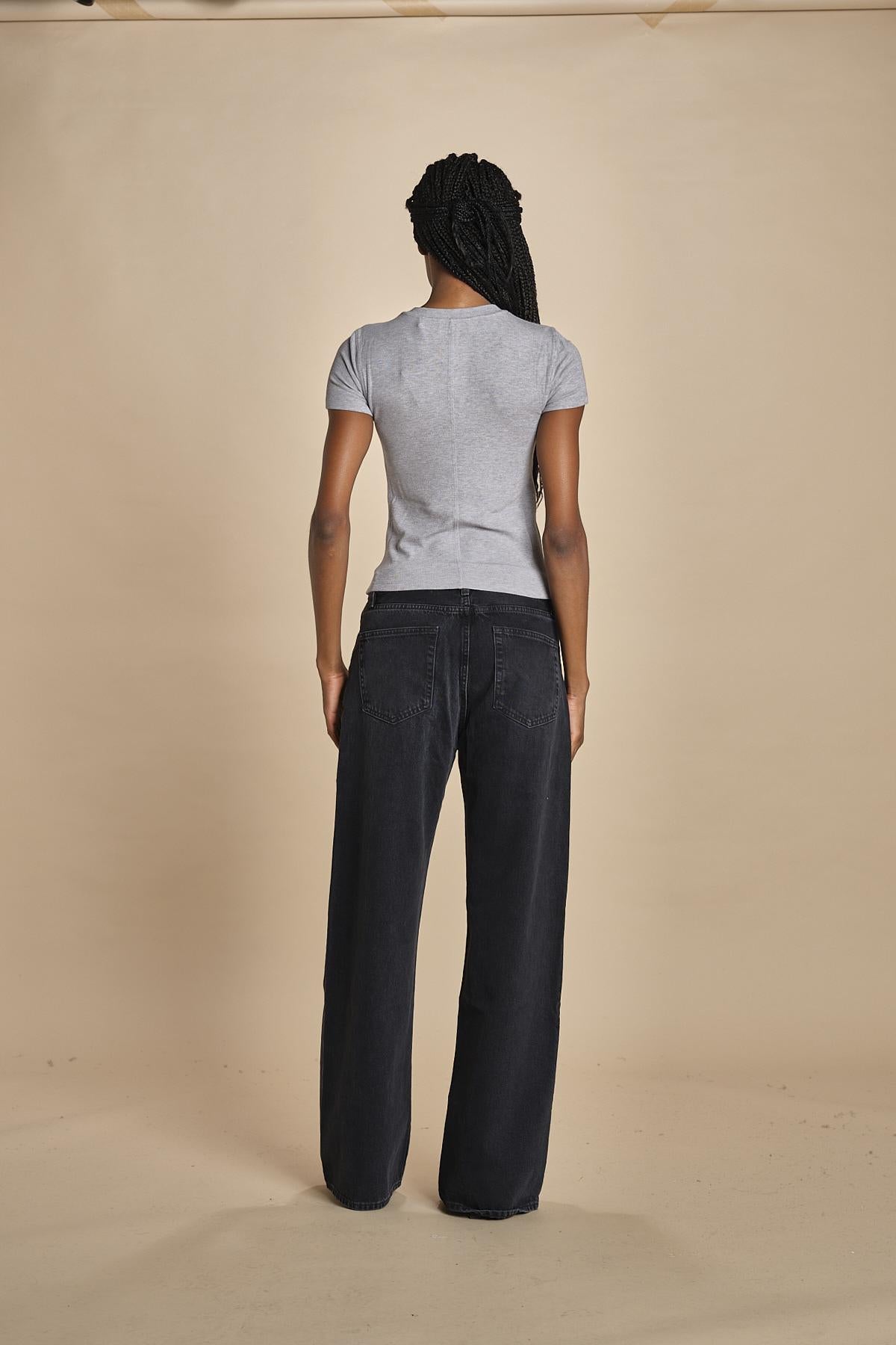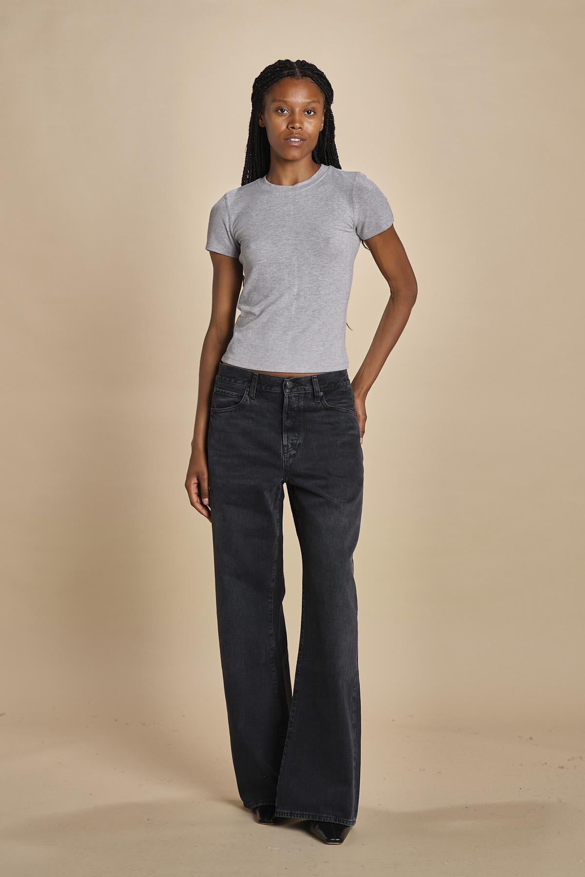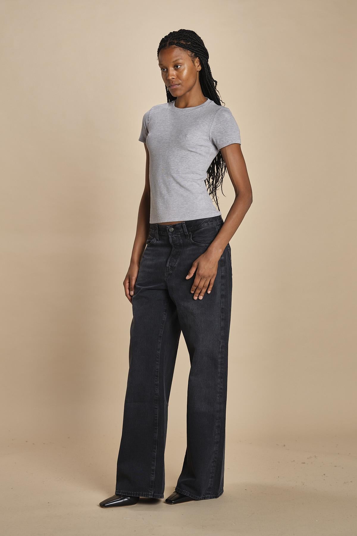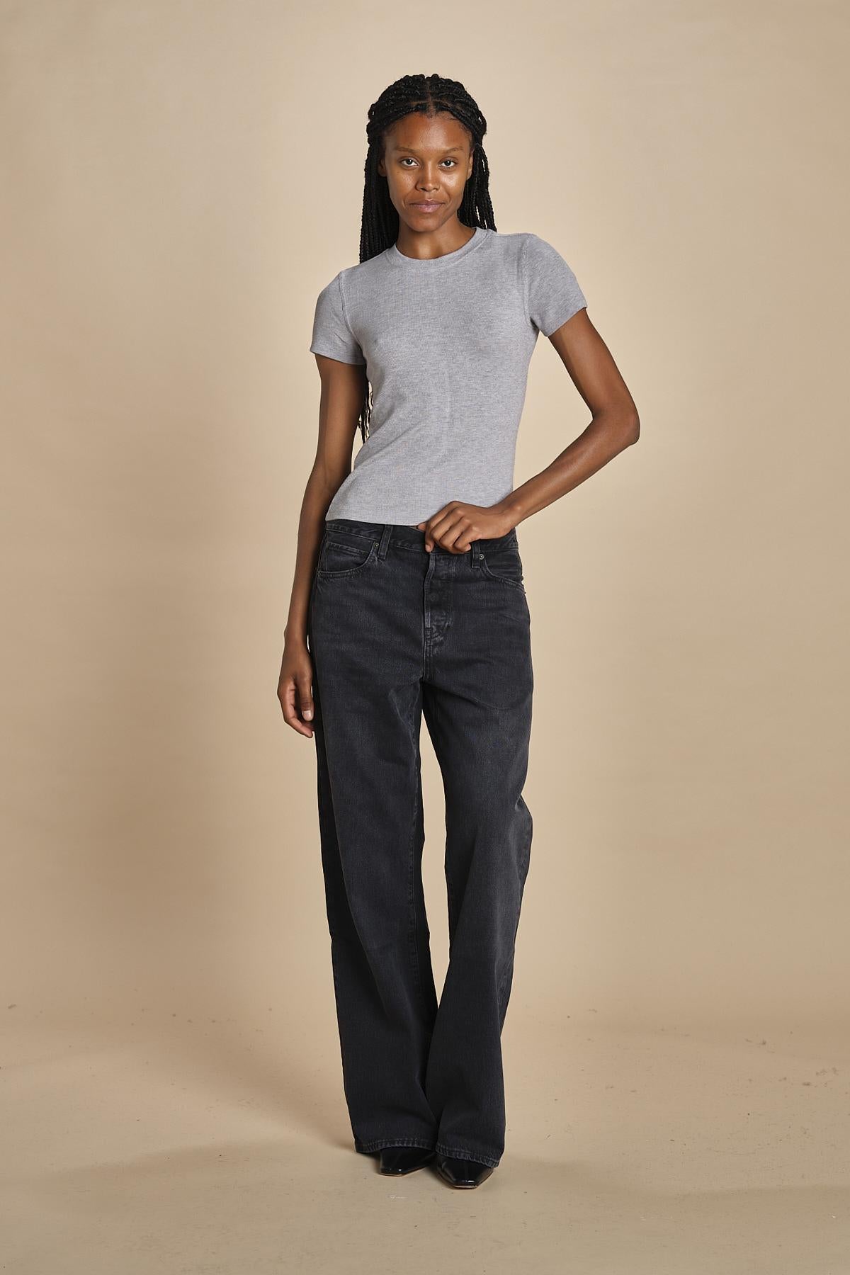 t-shirt a costine con manica corta by frame. La modella è alta 174 cm e indossa una taglia S.