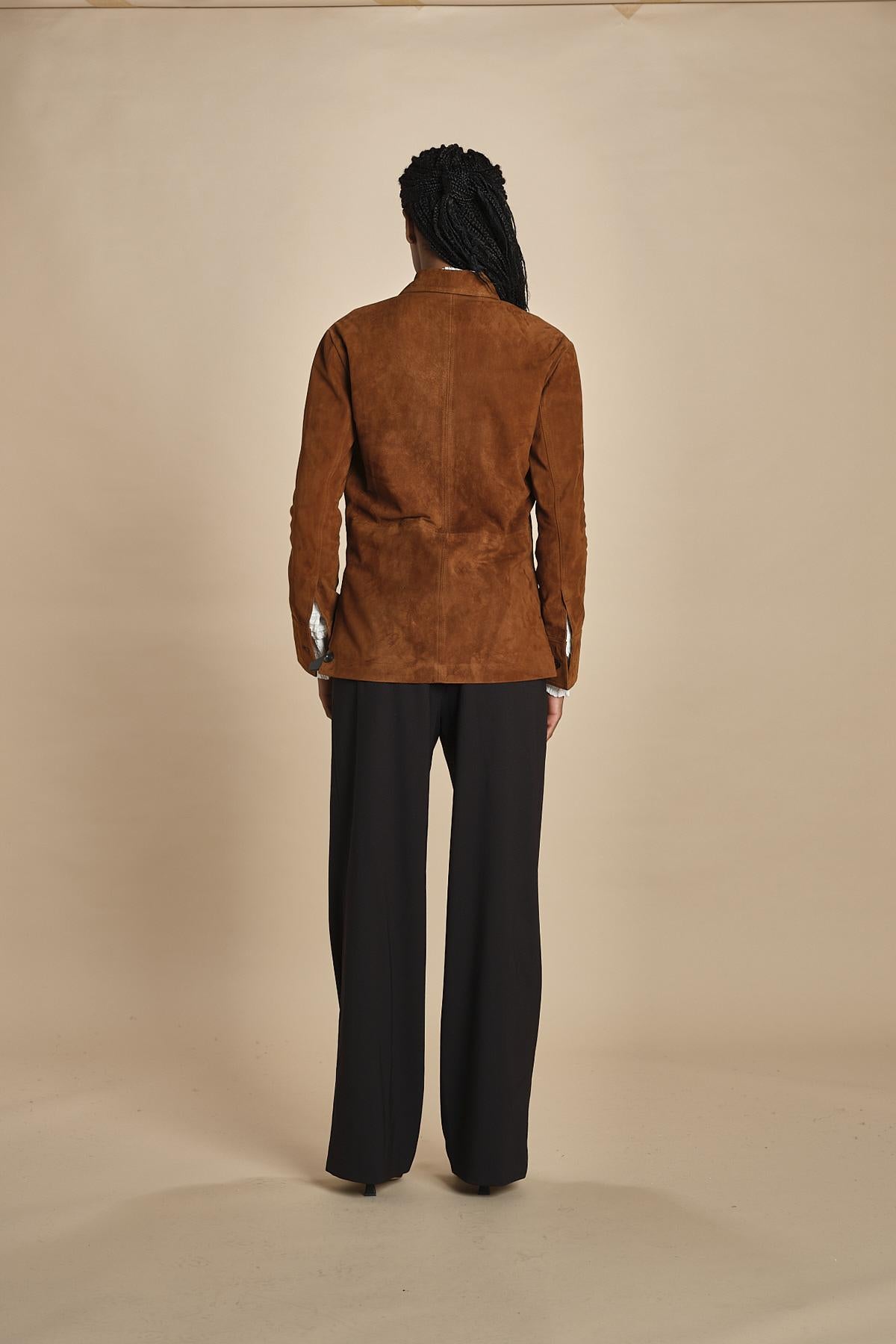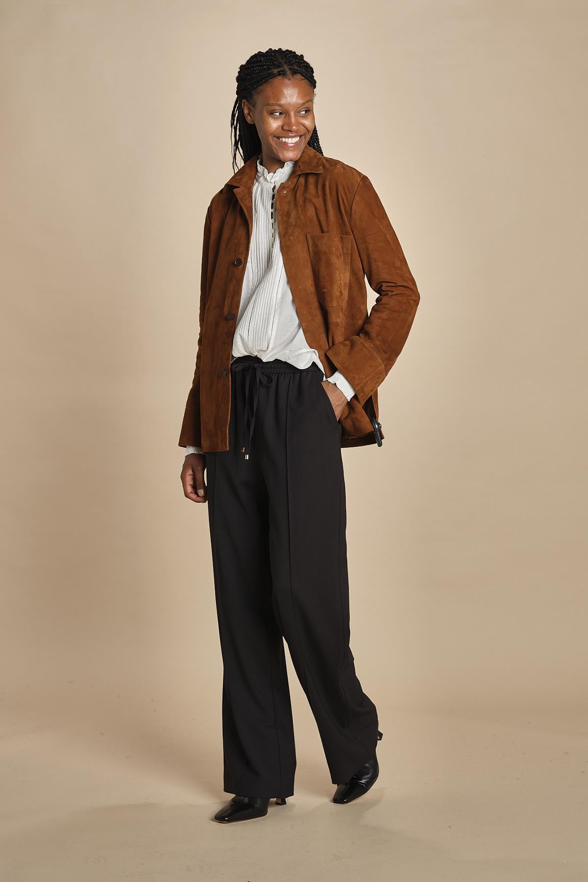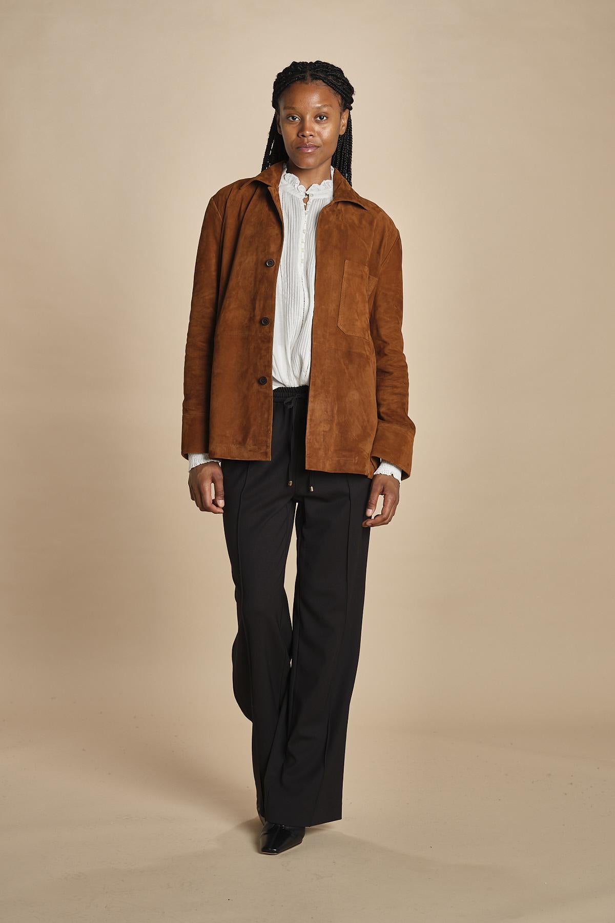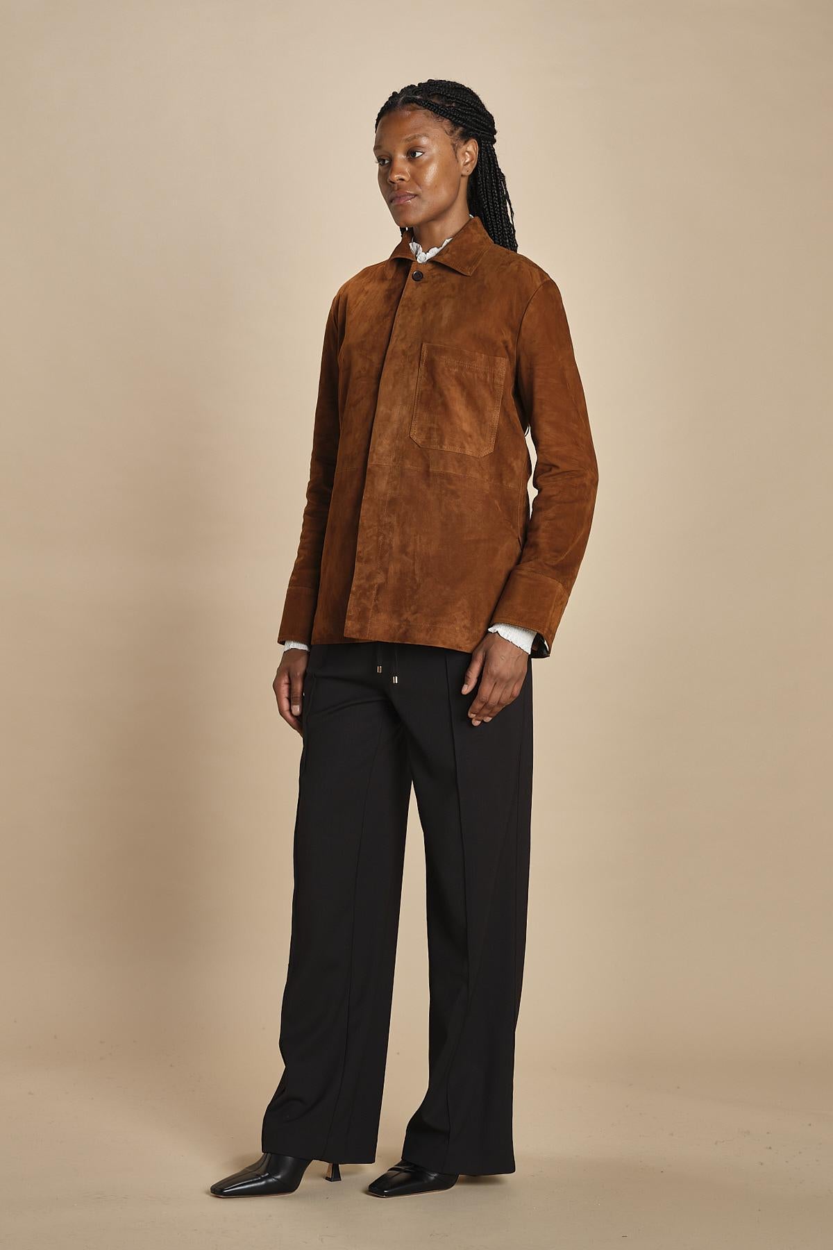 camicia in camoscio by vanessa bruno. La modella è alta 174 cm e indossa una taglia 34. Composizione: 100% Pelle.