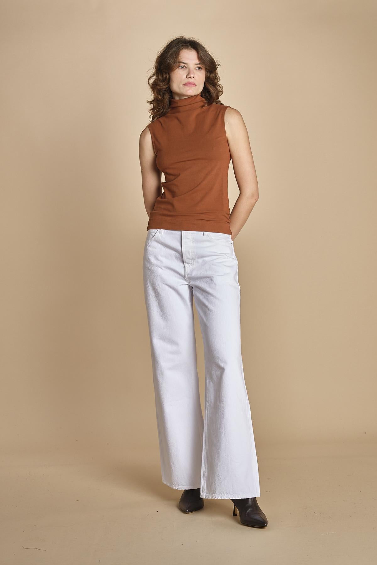 t-shirt senza maniche. La modella è alta 176 cm e indossa una taglia s. 94% COTONE 6% ELASTANE