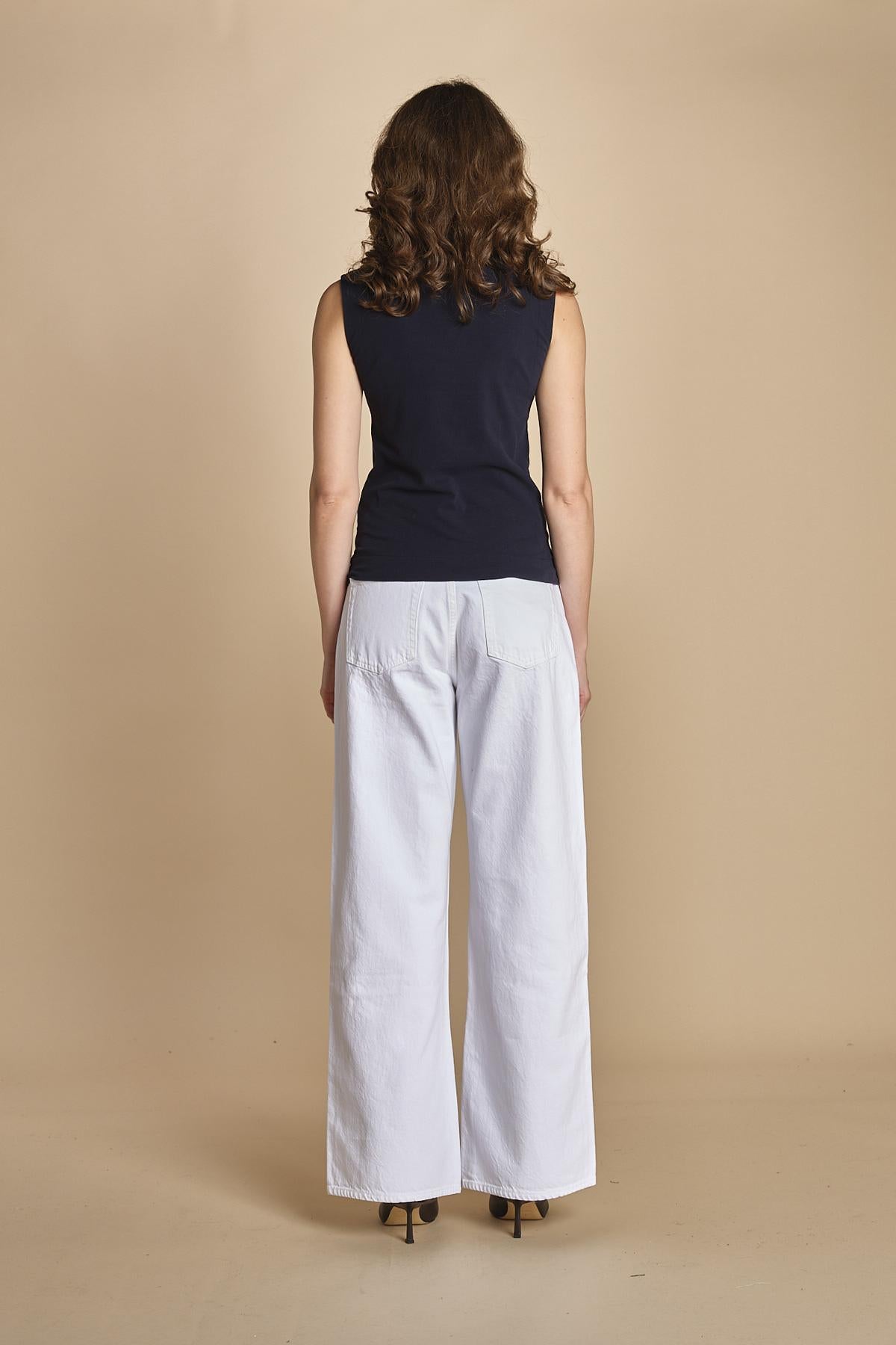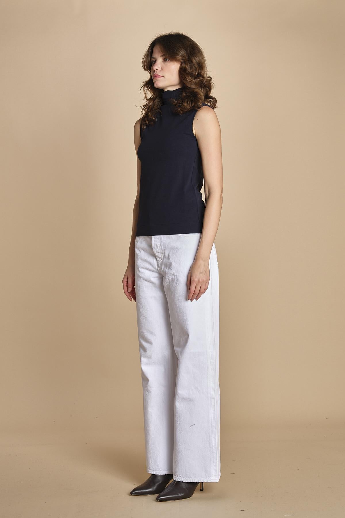 t-shirt senza maniche. La modella è alta 176 cm e indossa una taglia s. 94% COTONE 6% ELASTANE