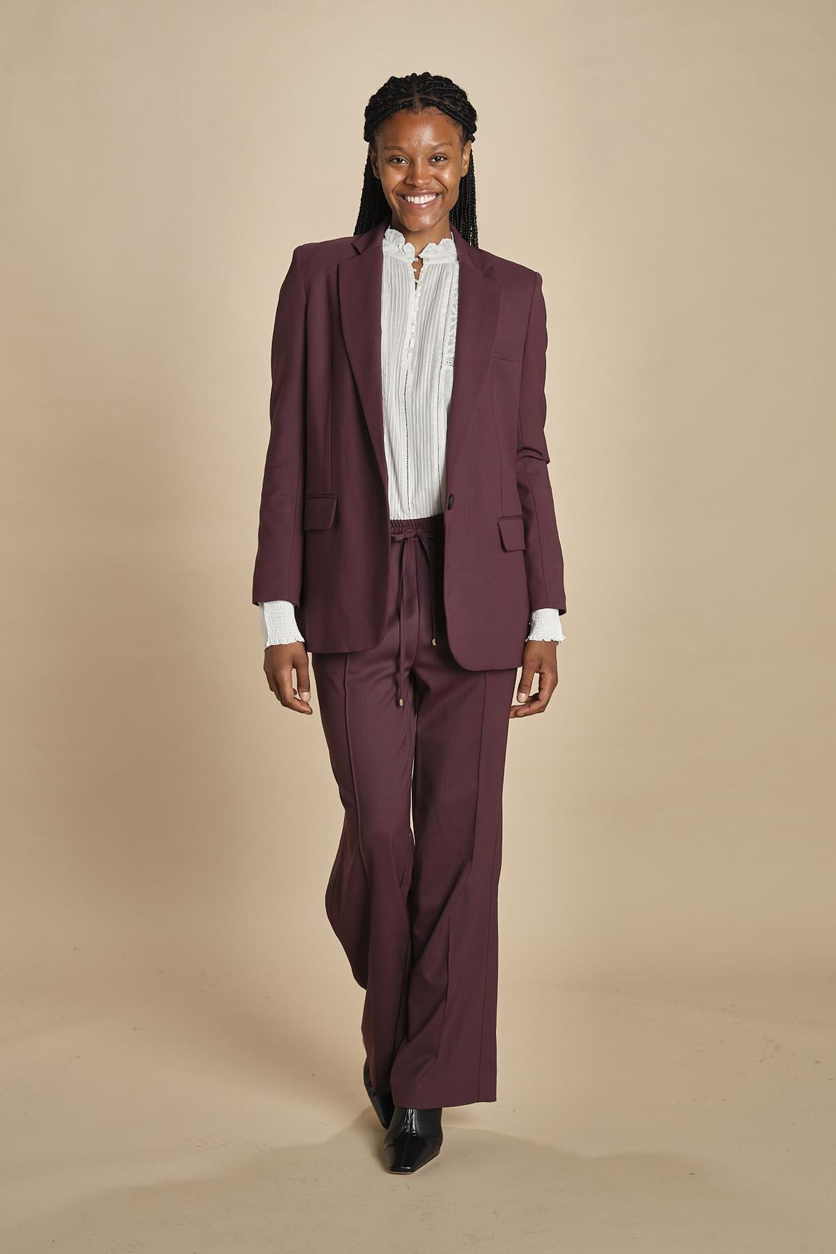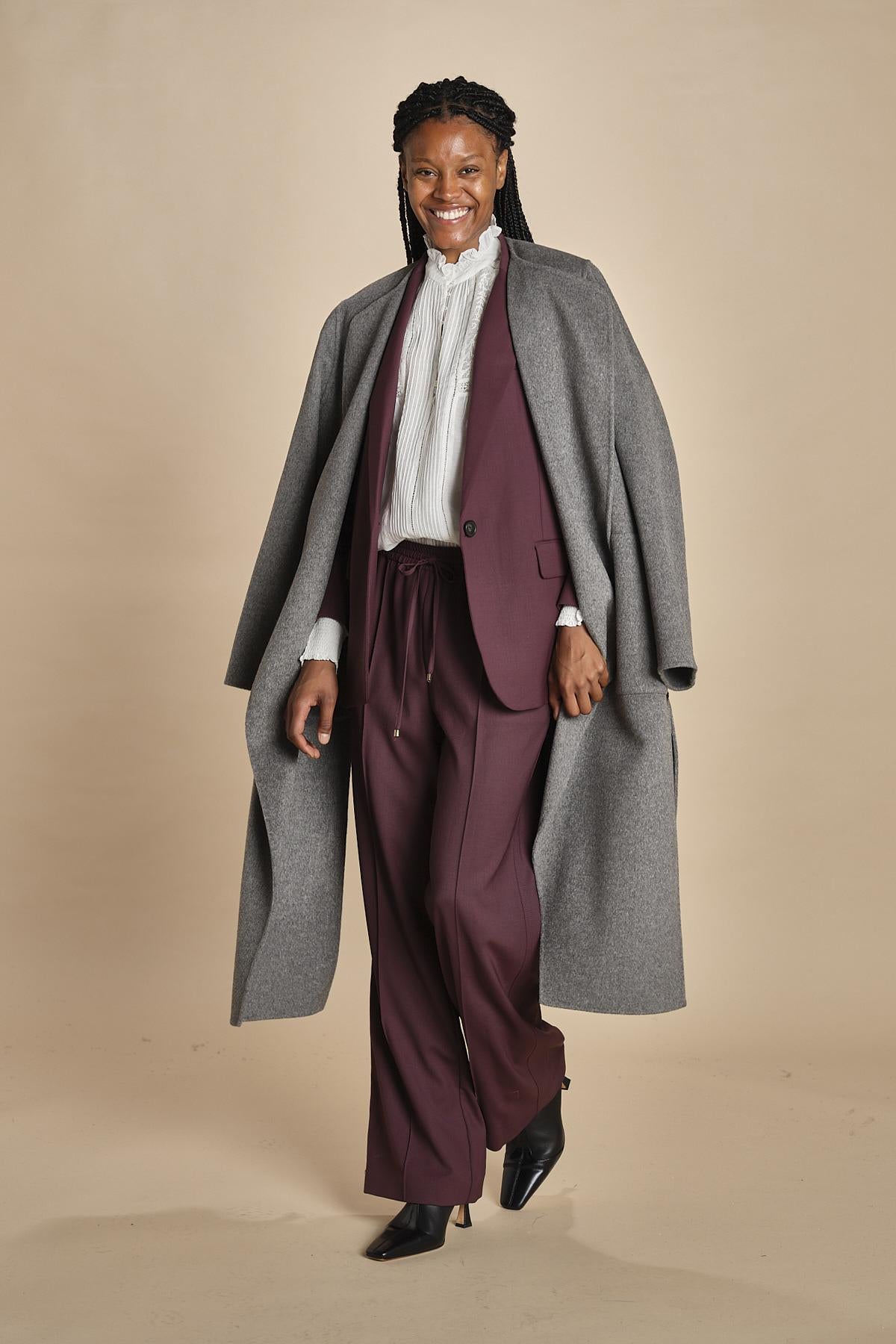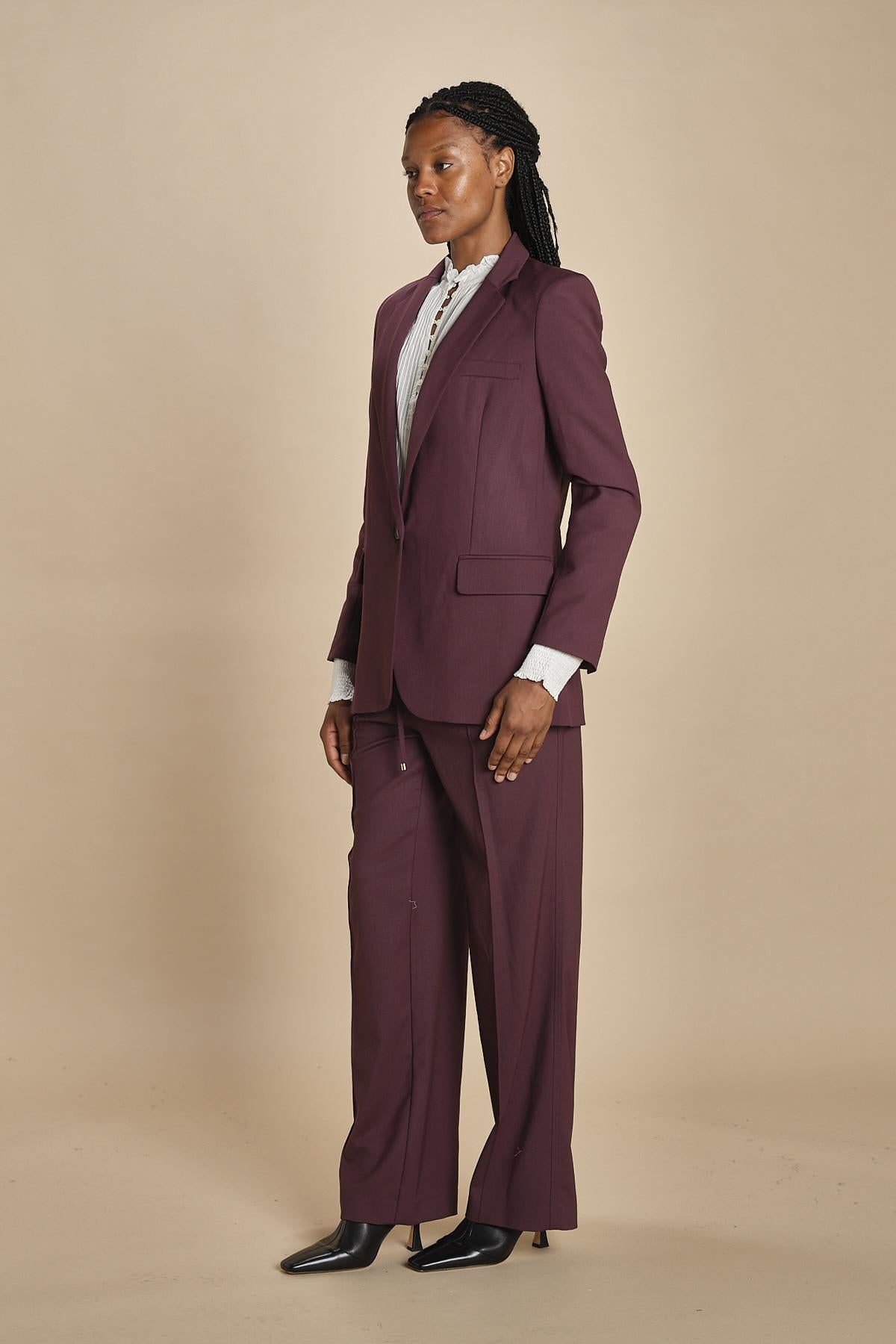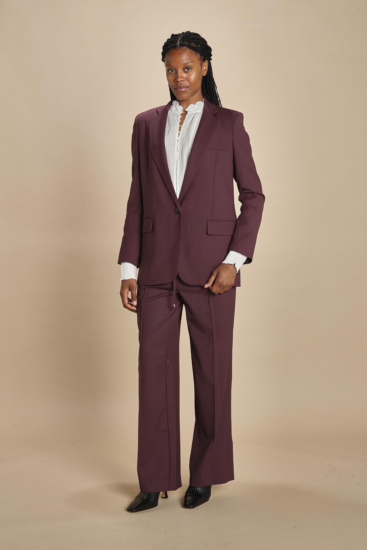 giacca un bottone tela lana by vanessa bruno. La modella è alta 174 cm e indossa una taglia 34. Composizione: 53% poliestere, 43% lana vergine, 4% elastan.