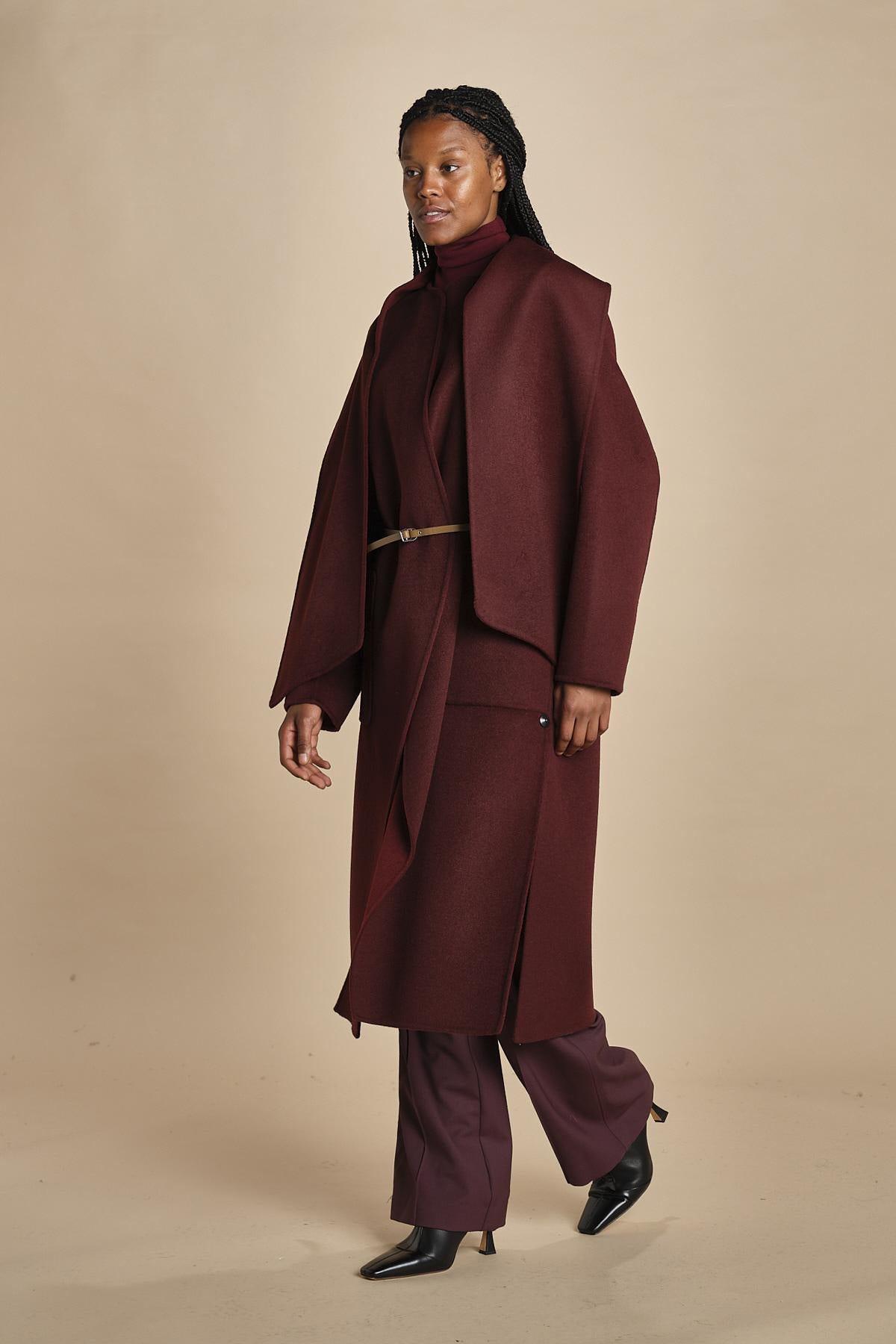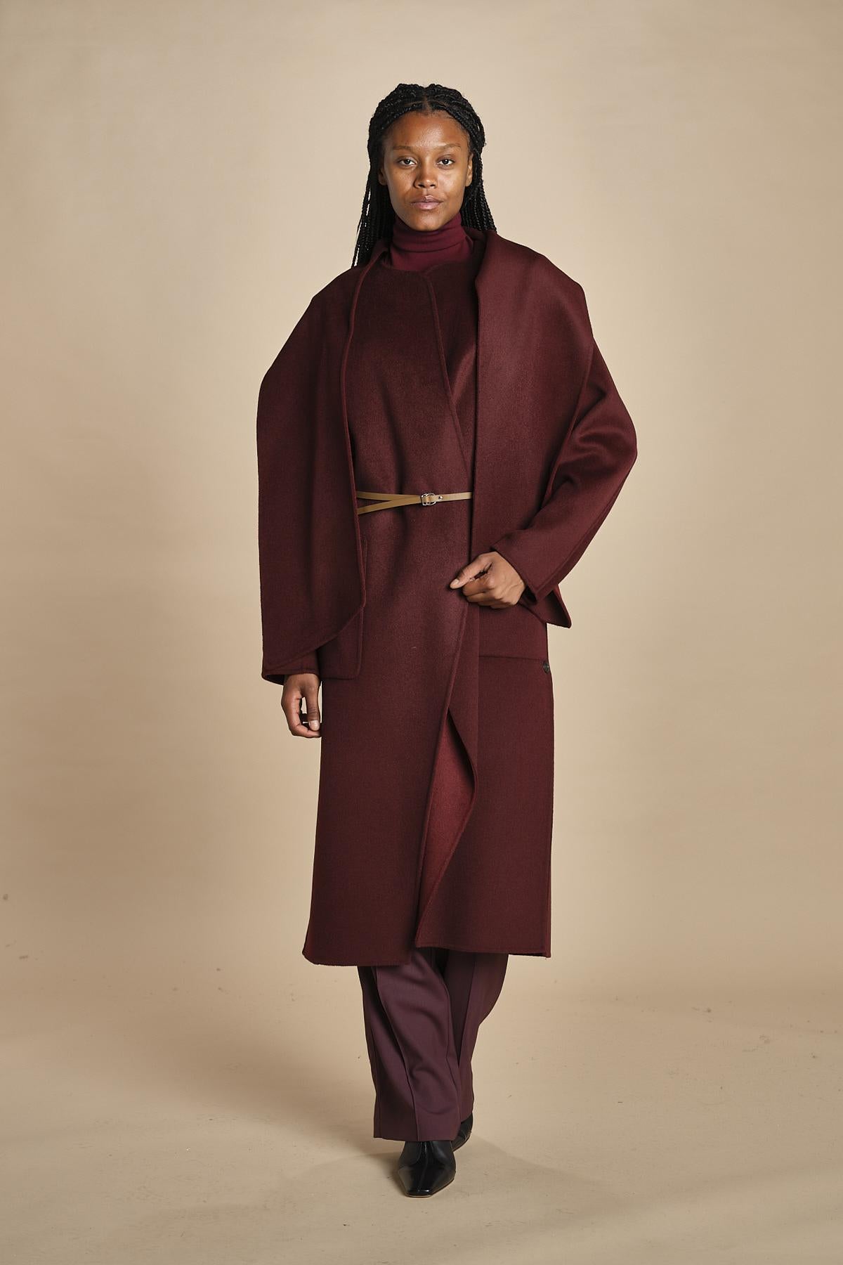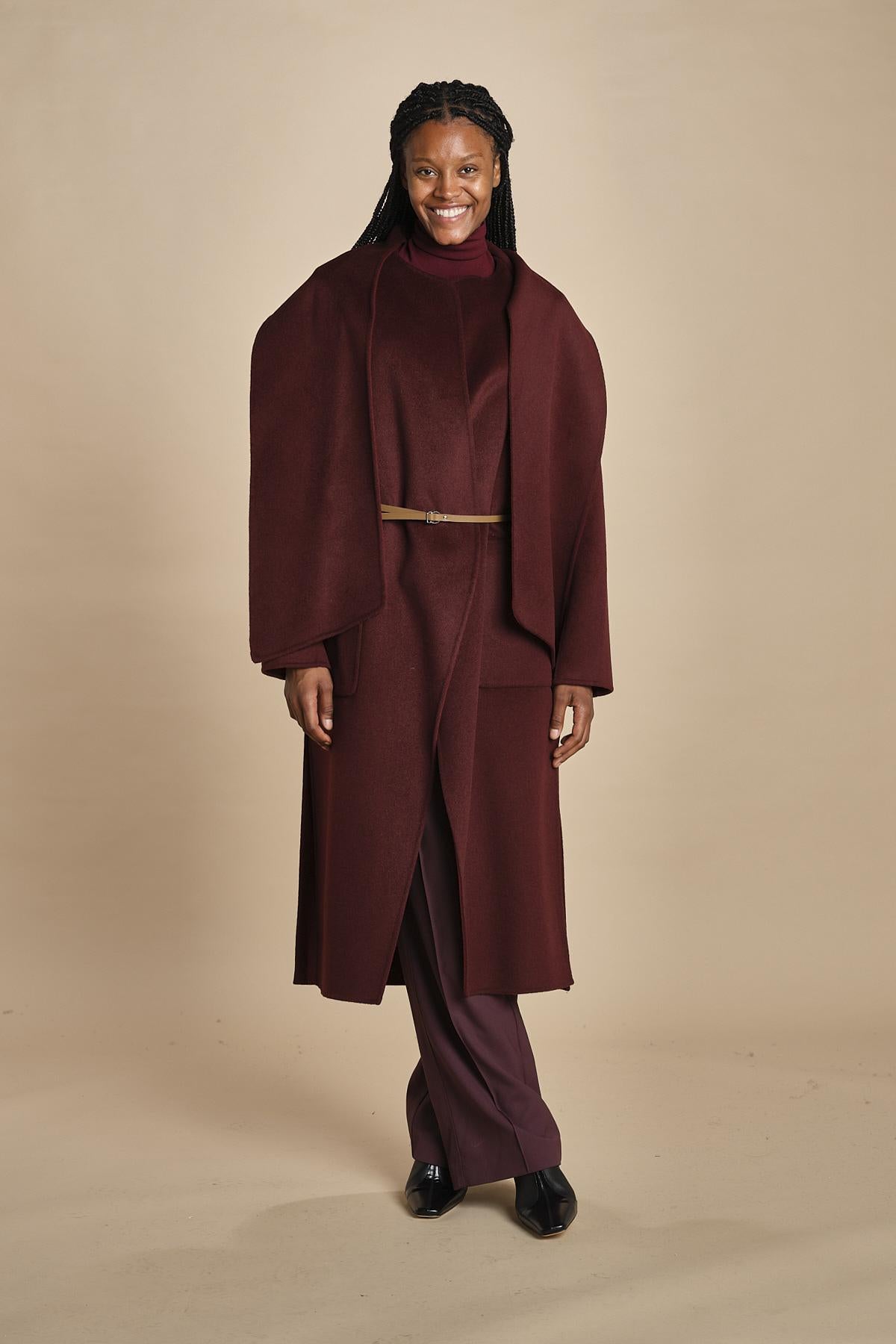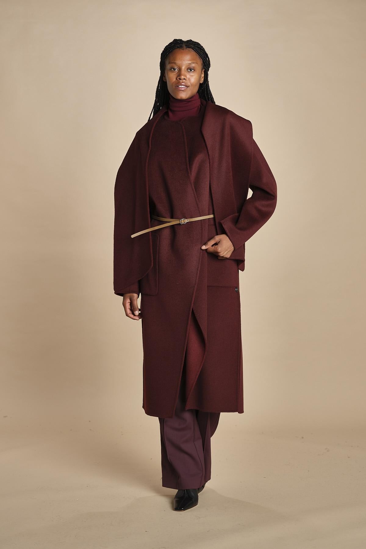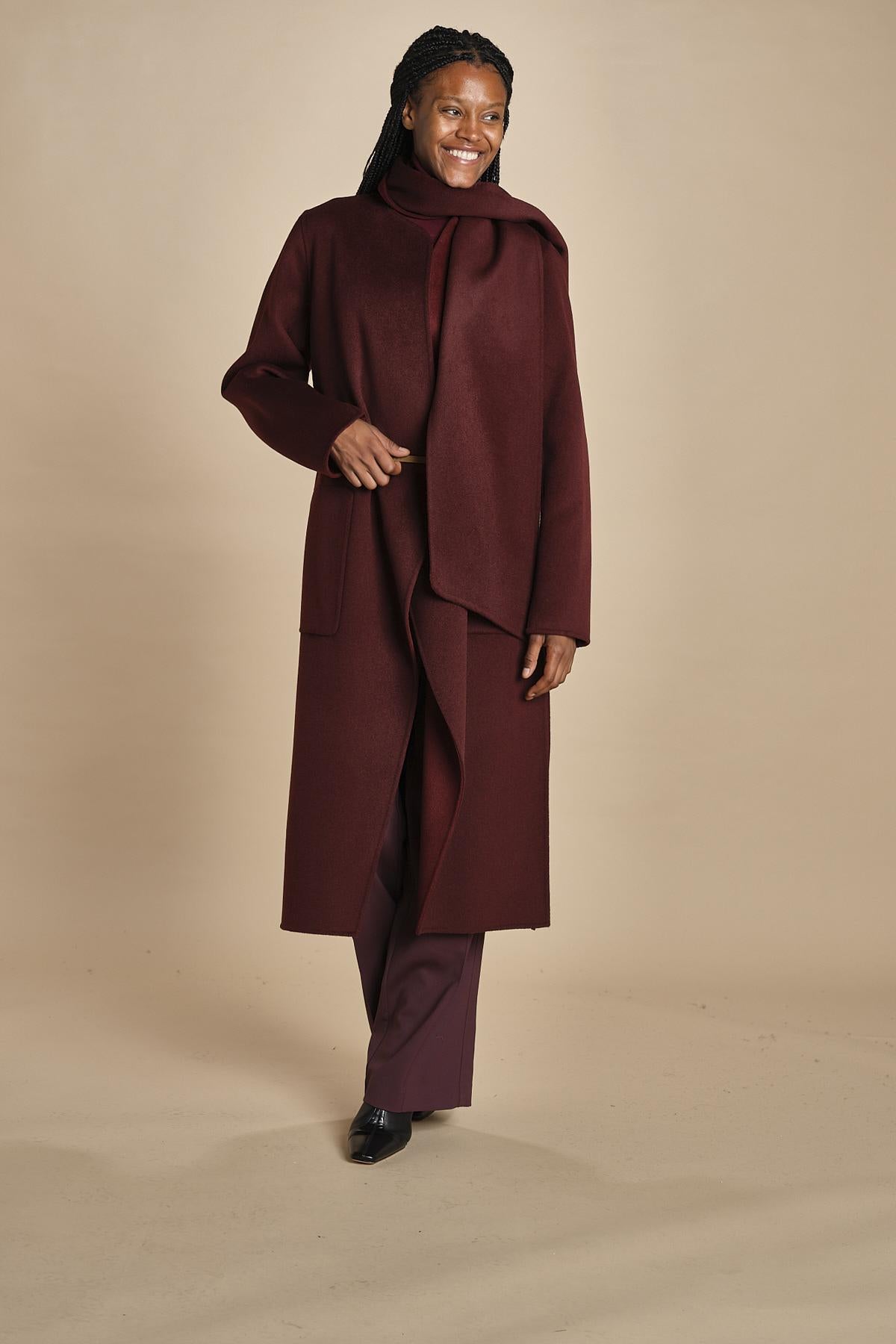 cappotto double con sciarpa by vanessa bruno. La modella è alta 174 cm e indossa una taglia S. Composizione: 80% laine, 20% poliammide.