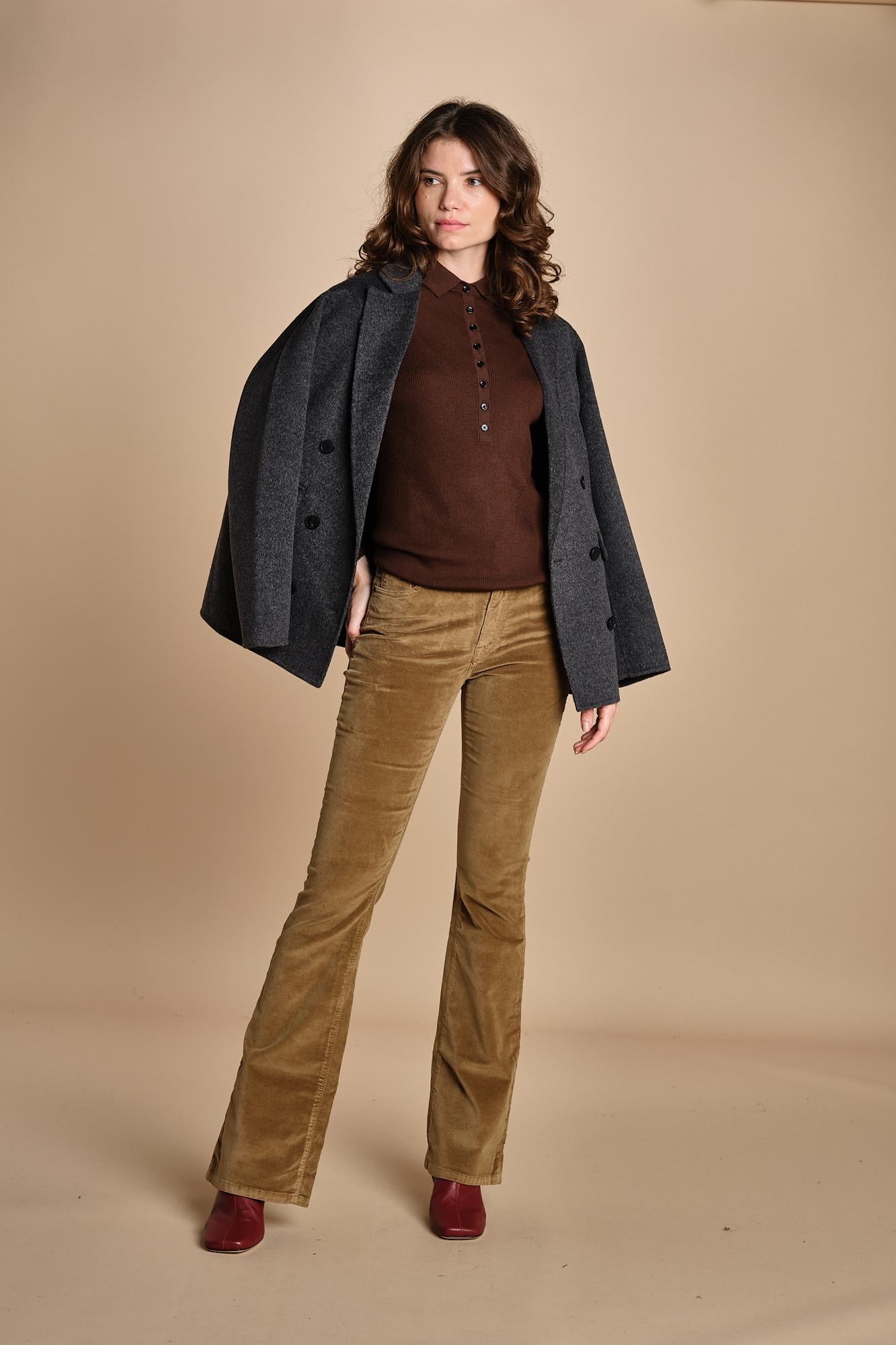 MONICA pantalone lungo diritto velluto La modella è alta 176 cm e indossa una taglia S. 73% COTONE 25% TENCEL 2% ELASTAN