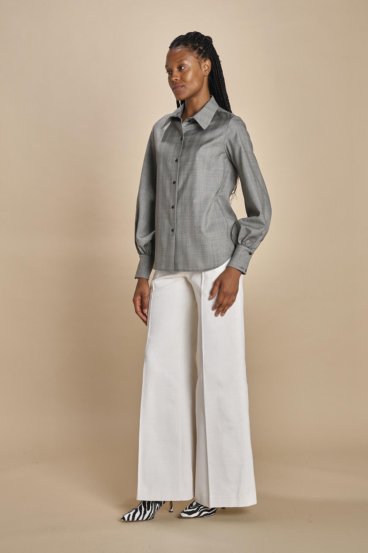 camicia galles grey check by martin grant. La modella è alta 174 cm e indossa una taglia 34.