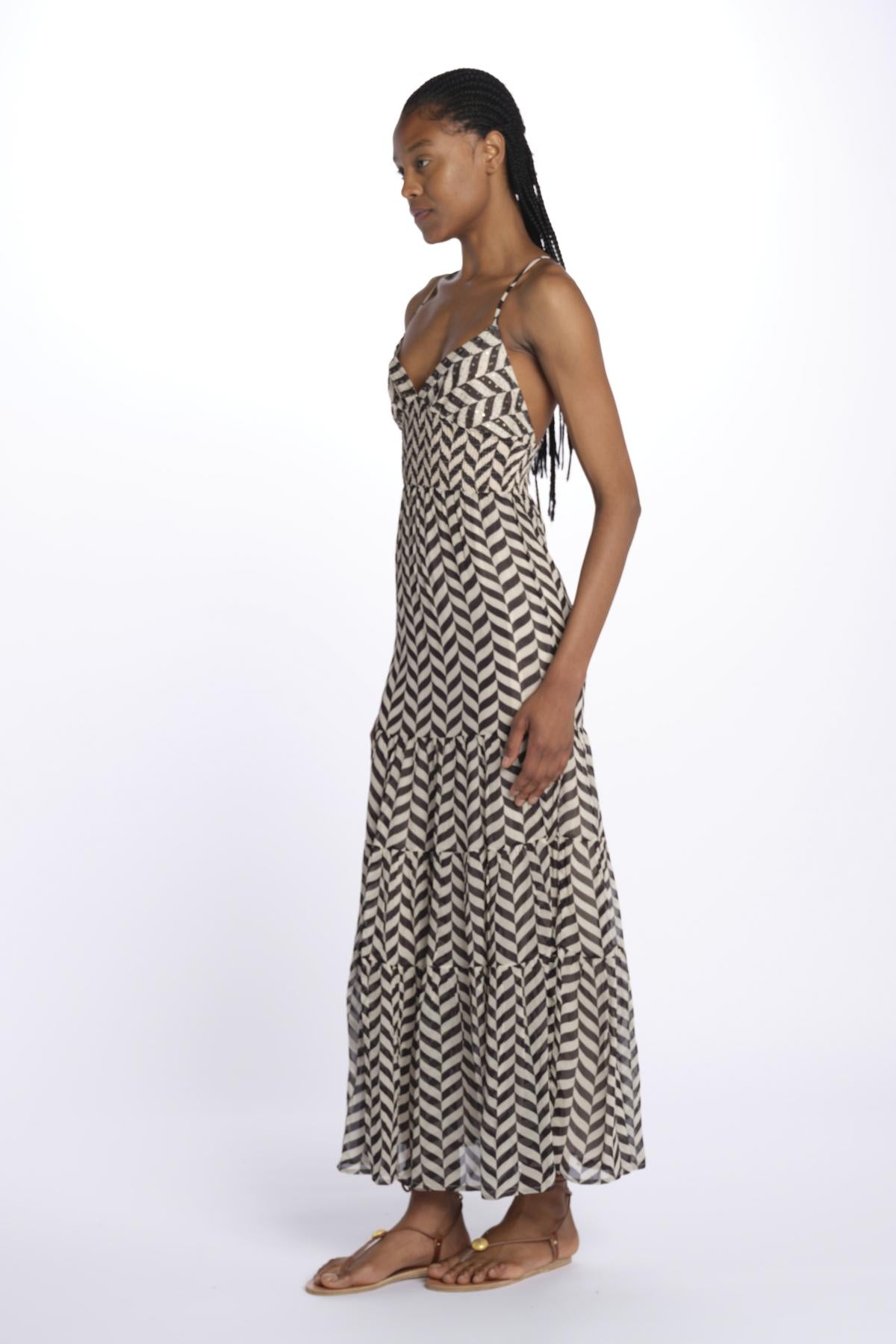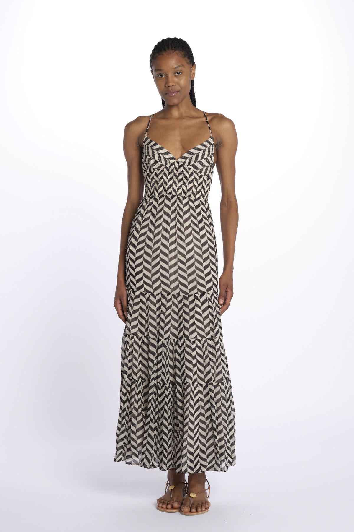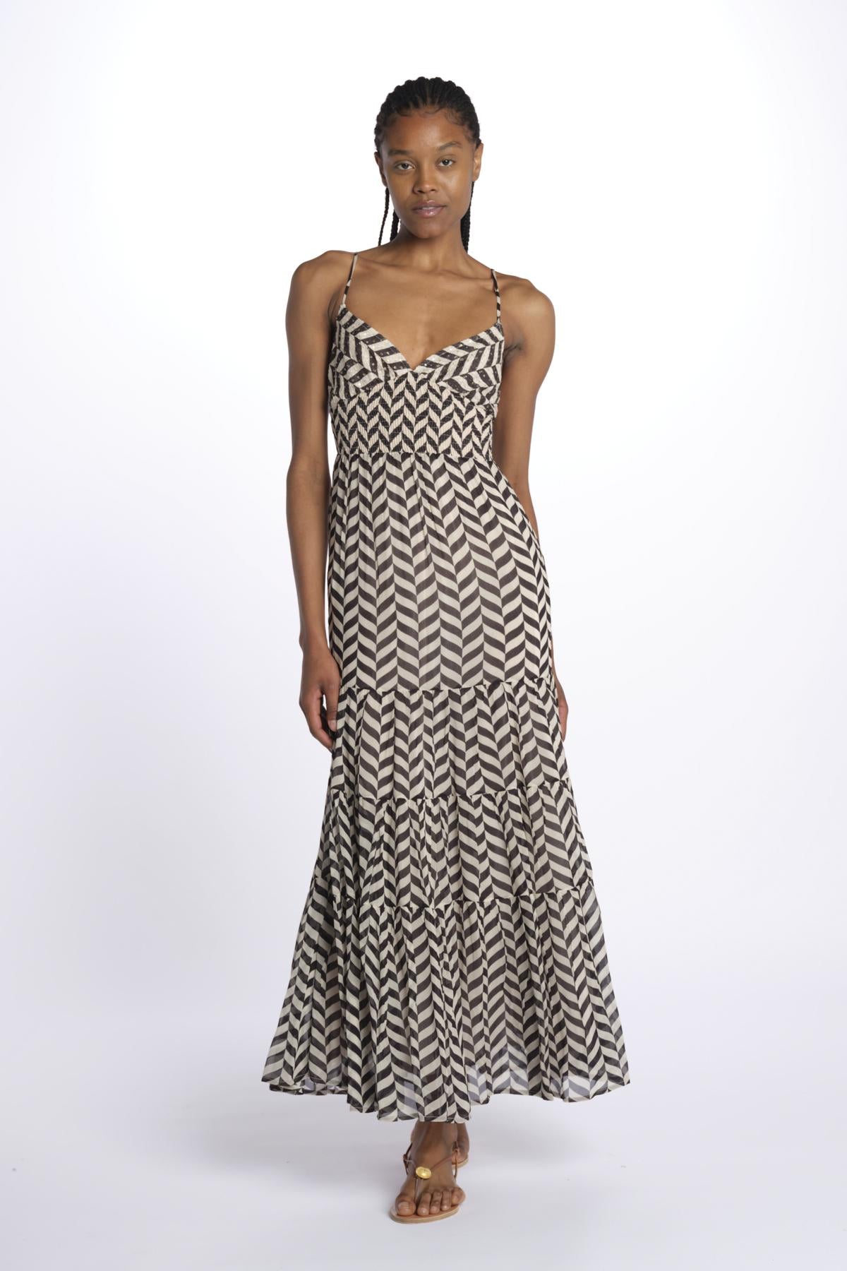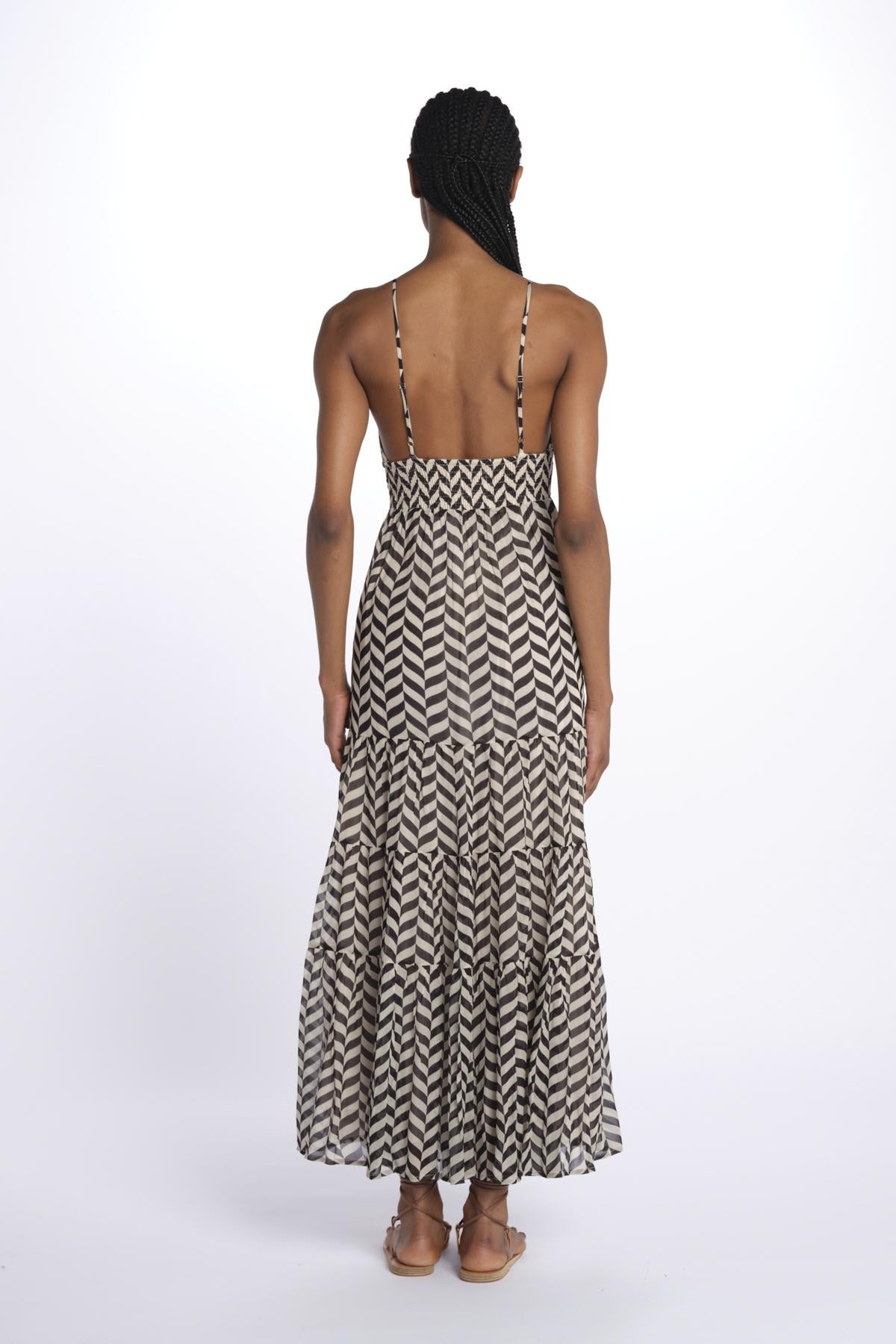 Abito DITTA lungo stampa zig zag by sundress. La modella è alta 174 cm e indossa una taglia S. Composizione: 100% viscosa.