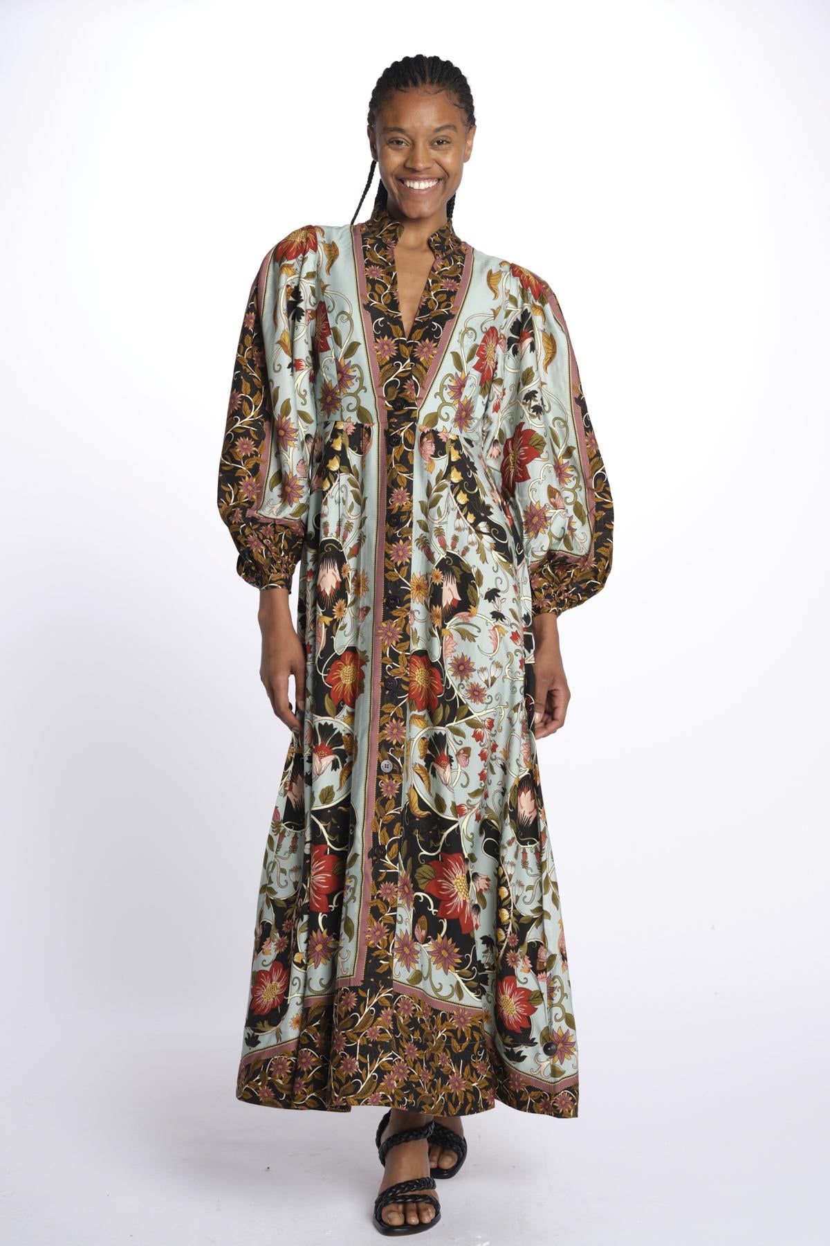 Abito lungo FLOWING twill fiori+bordo