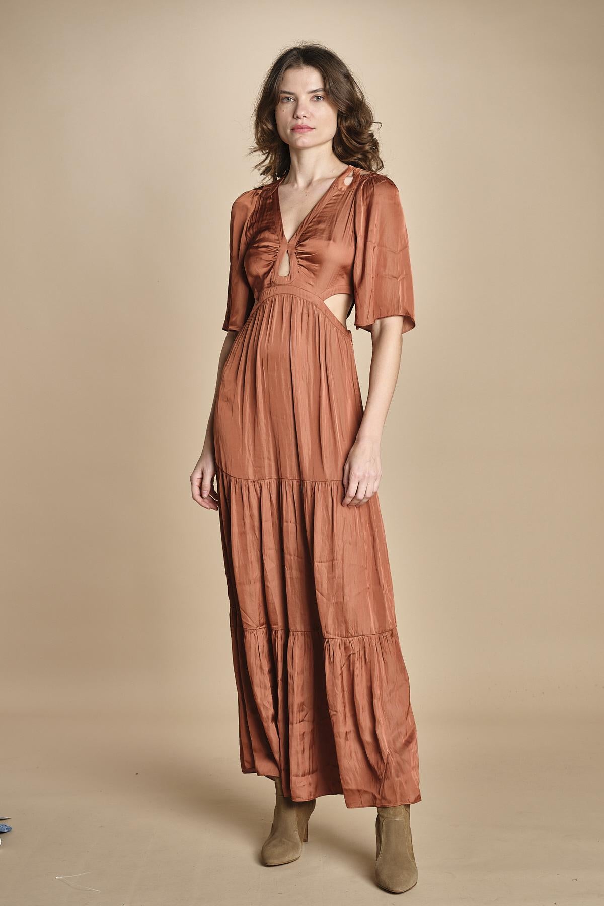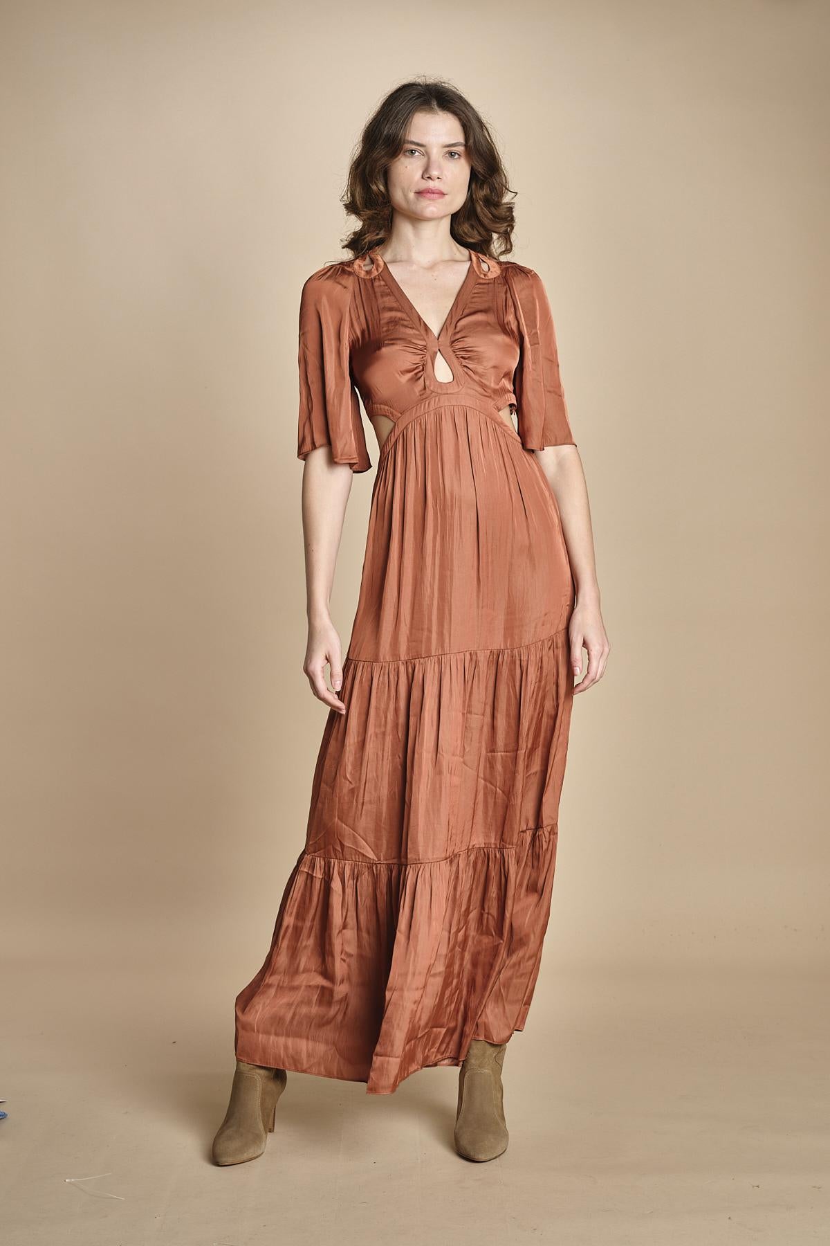 abito lungo in raso manica corta
