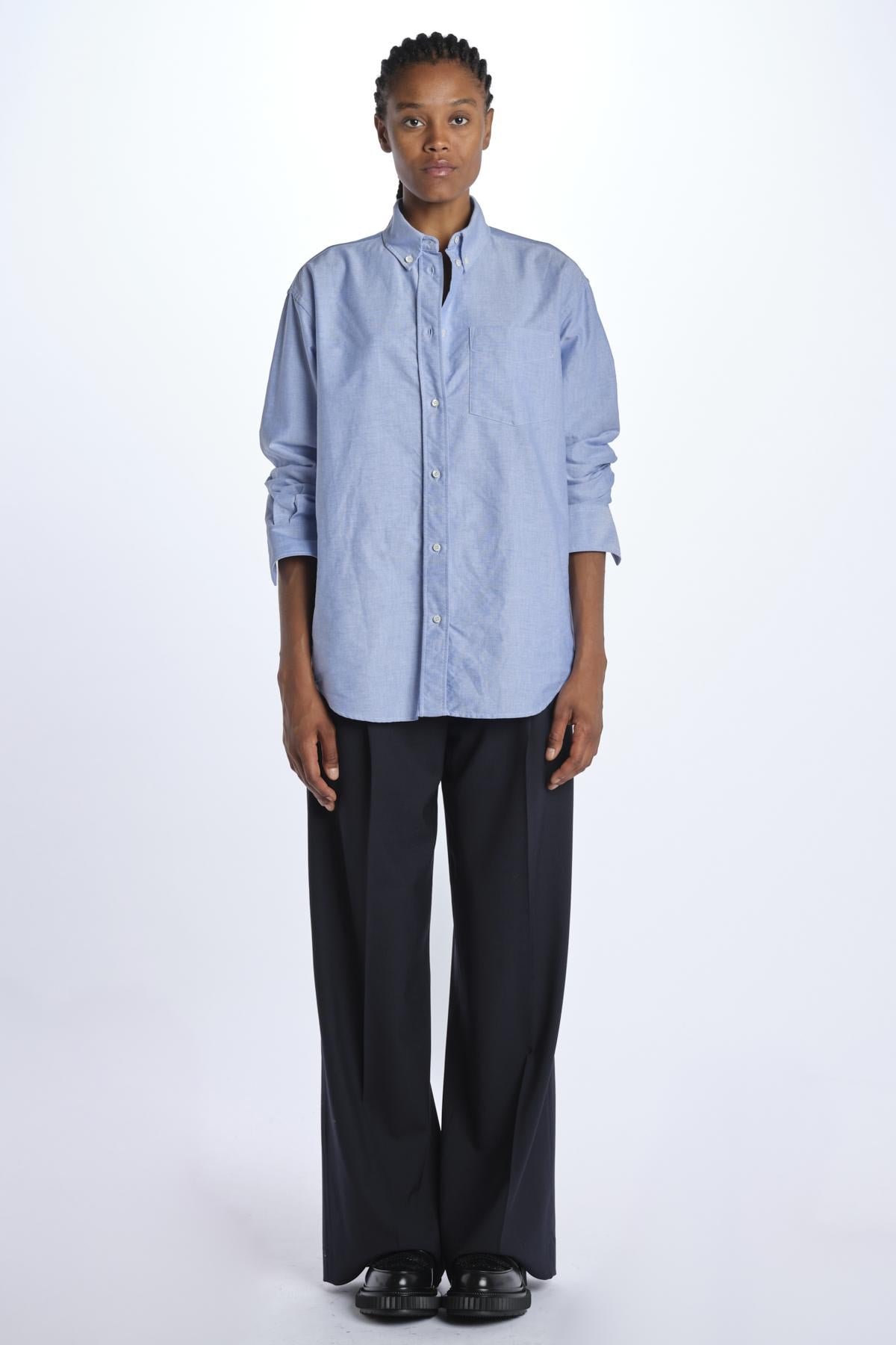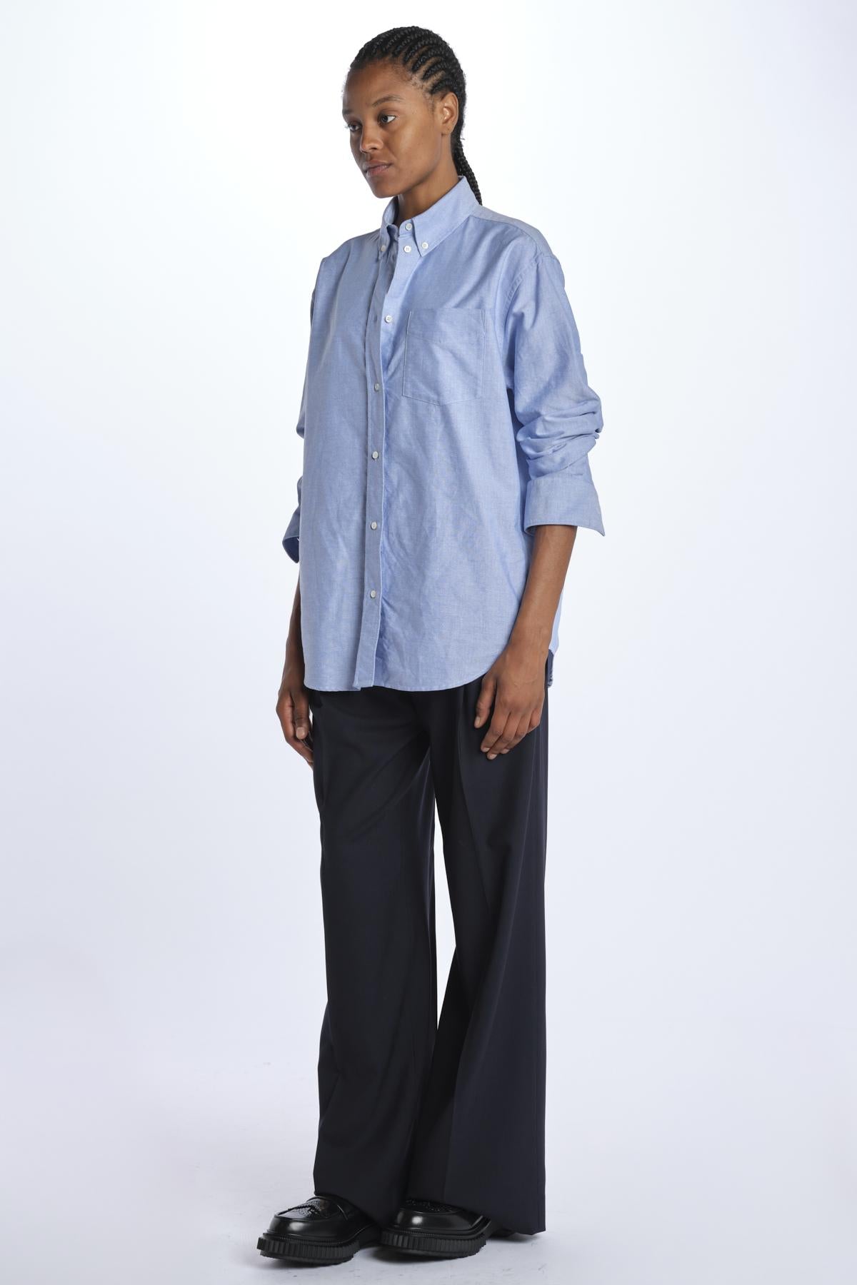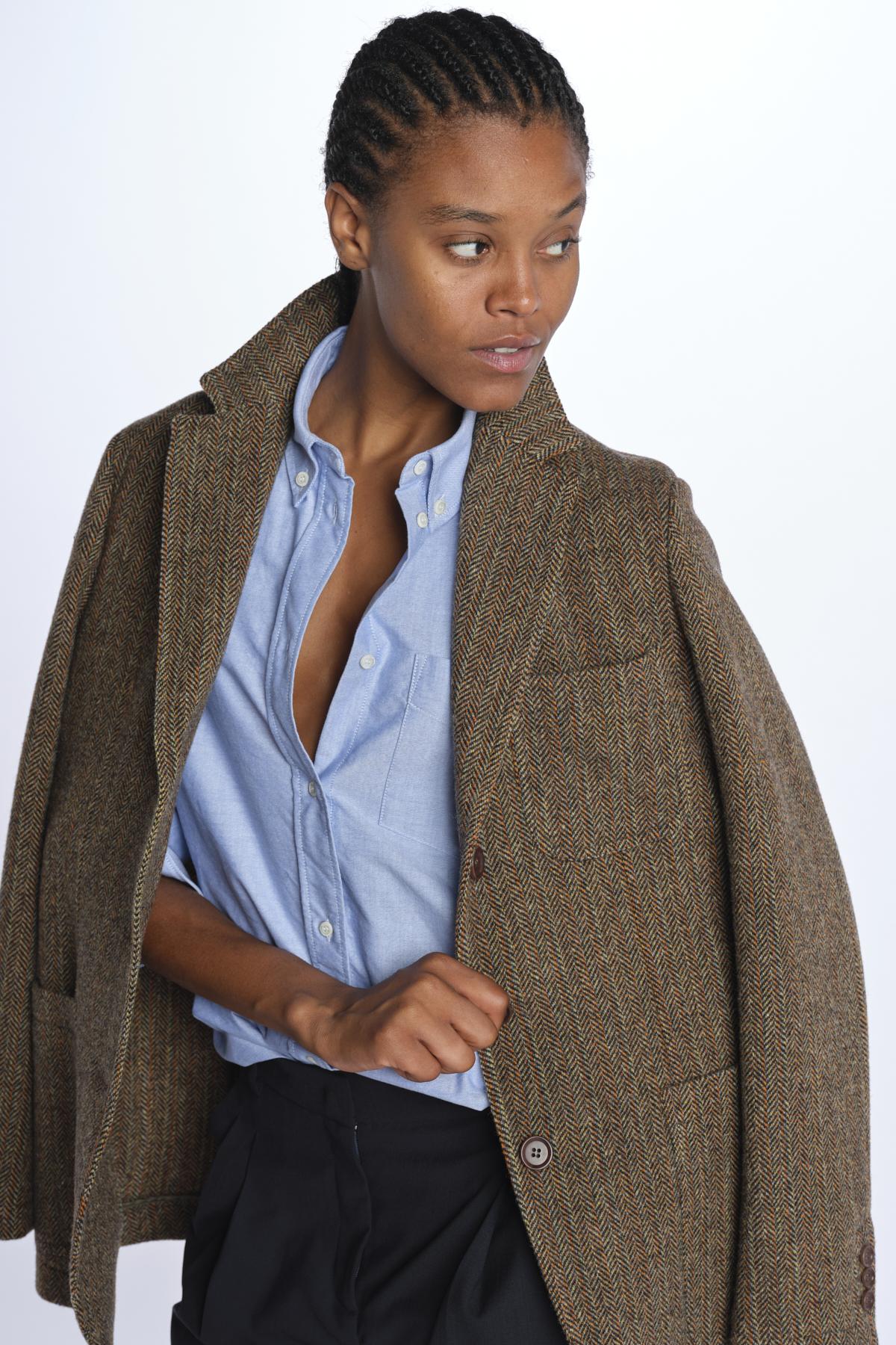 Camicia by Aspesi bottoni down. La modella è alta 174 cm e indossa una 38. Composizione: 100% cotone.