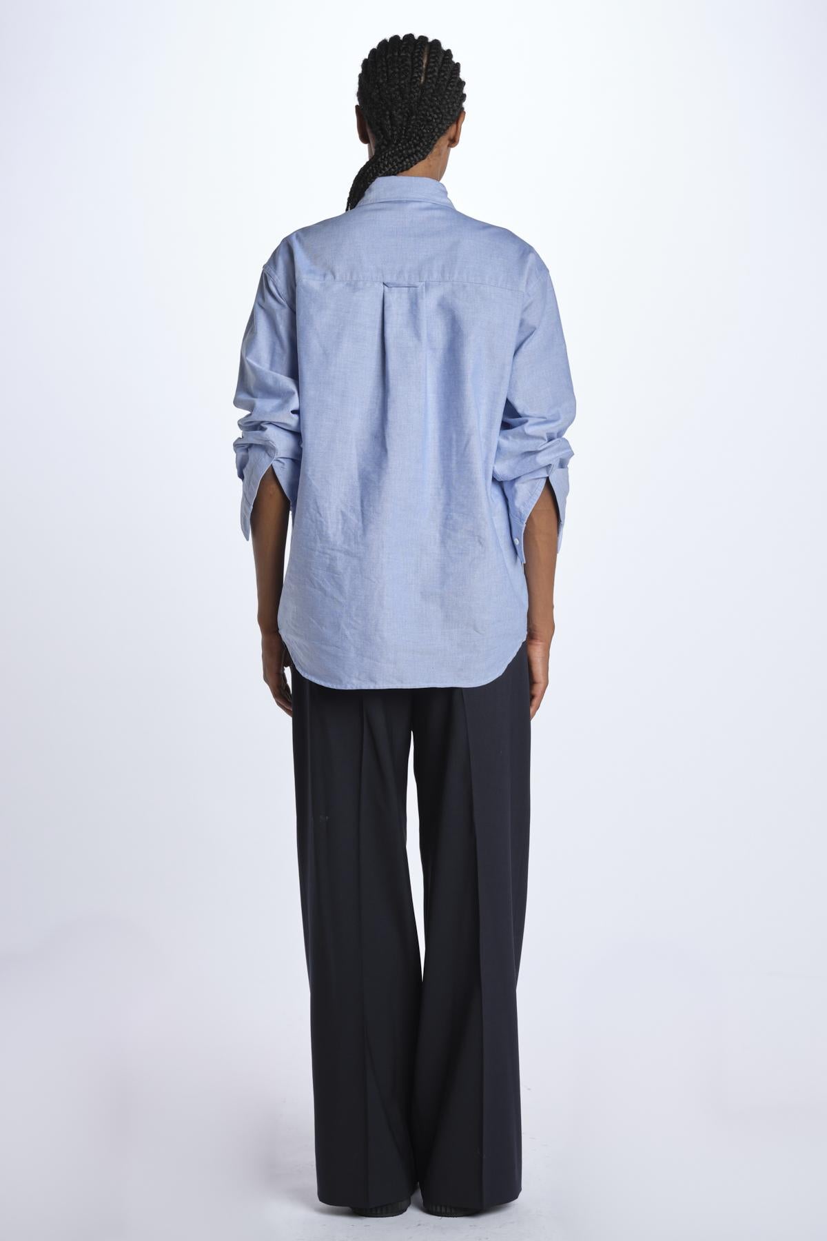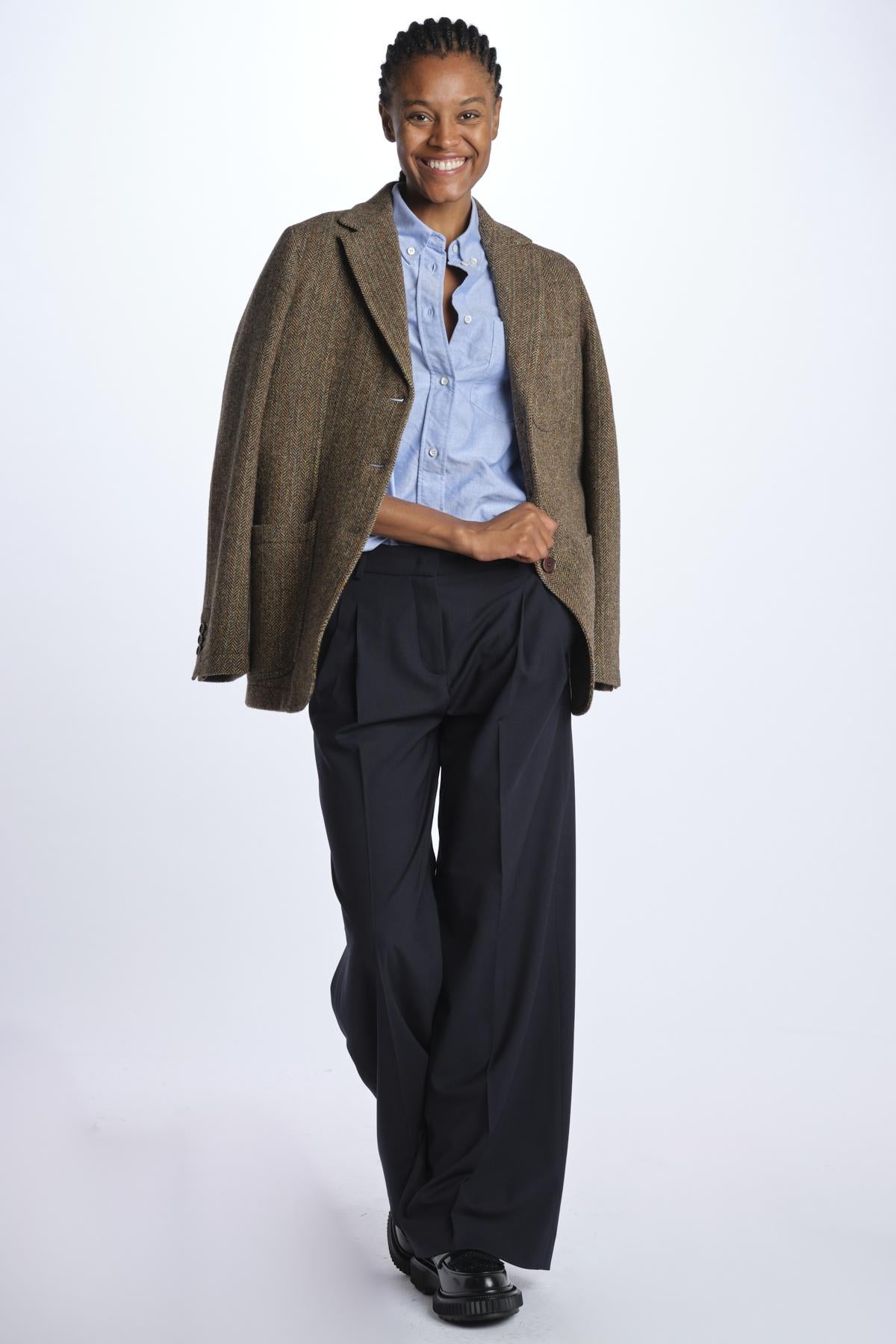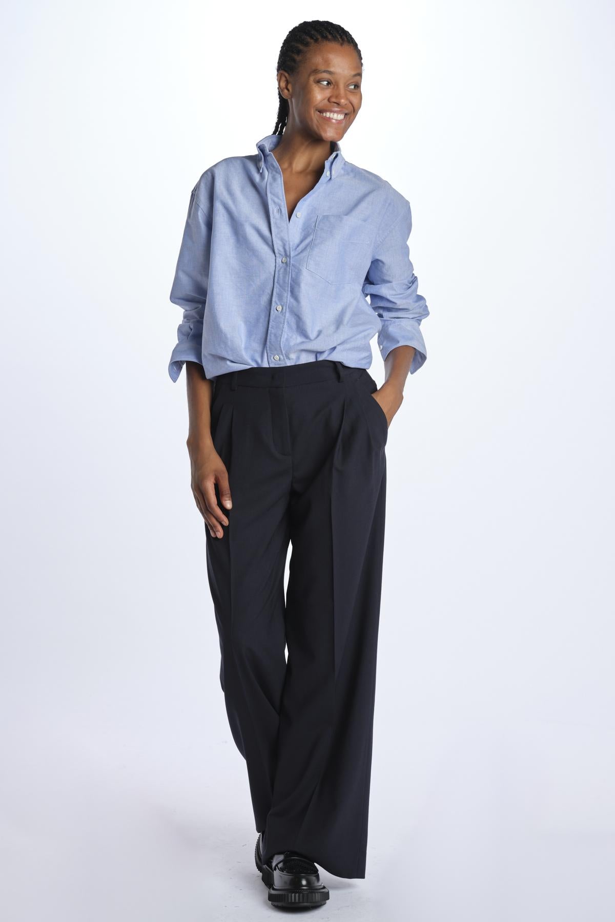 Camicia by Aspesi bottoni down. La modella è alta 174 cm e indossa una 38. Composizione: 100% cotone.