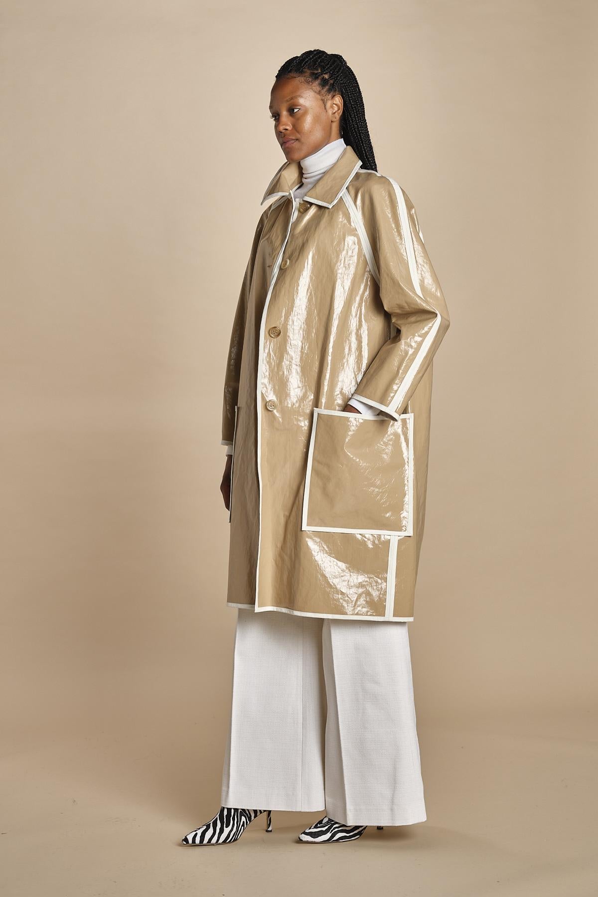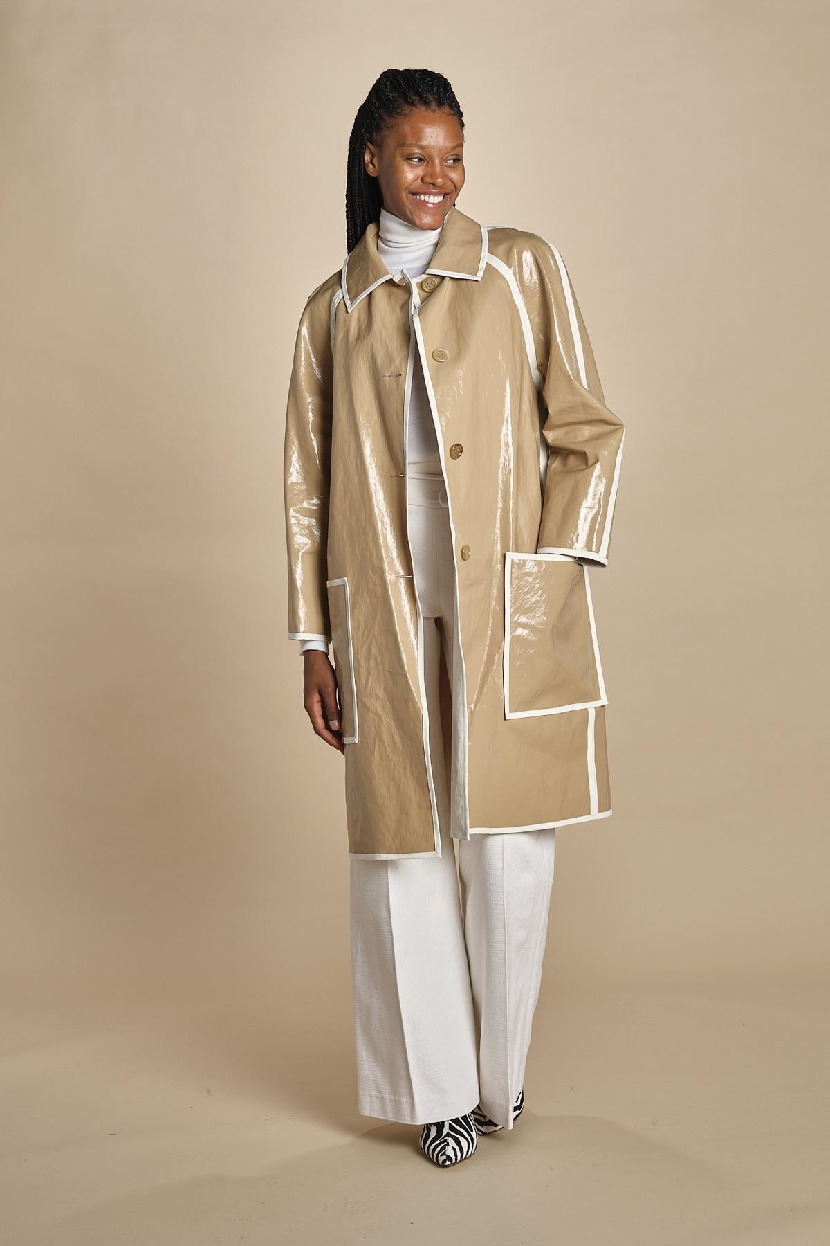 impermeabile profilato by martin grant. La modella è alta 174 cm e indossa una taglia S.