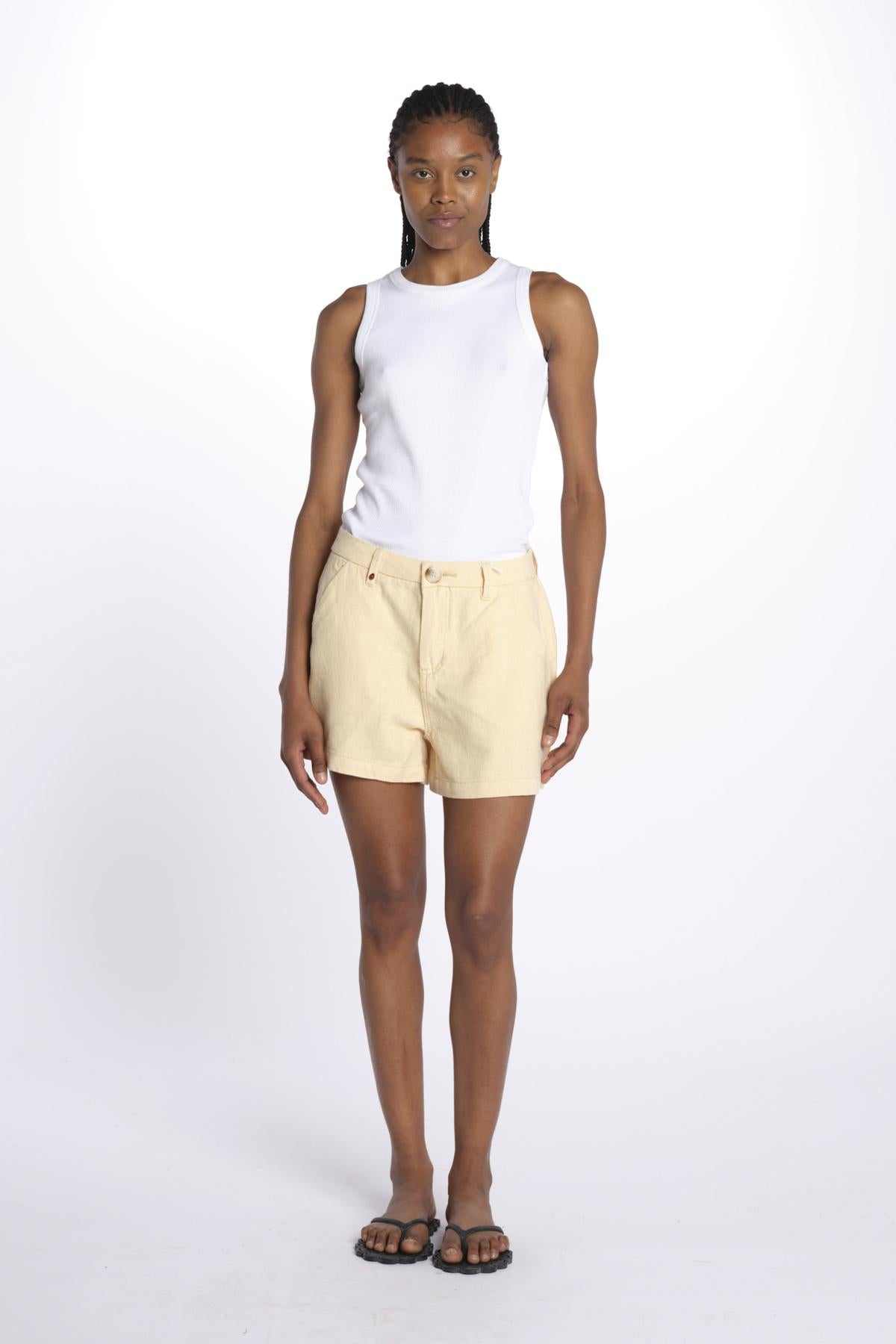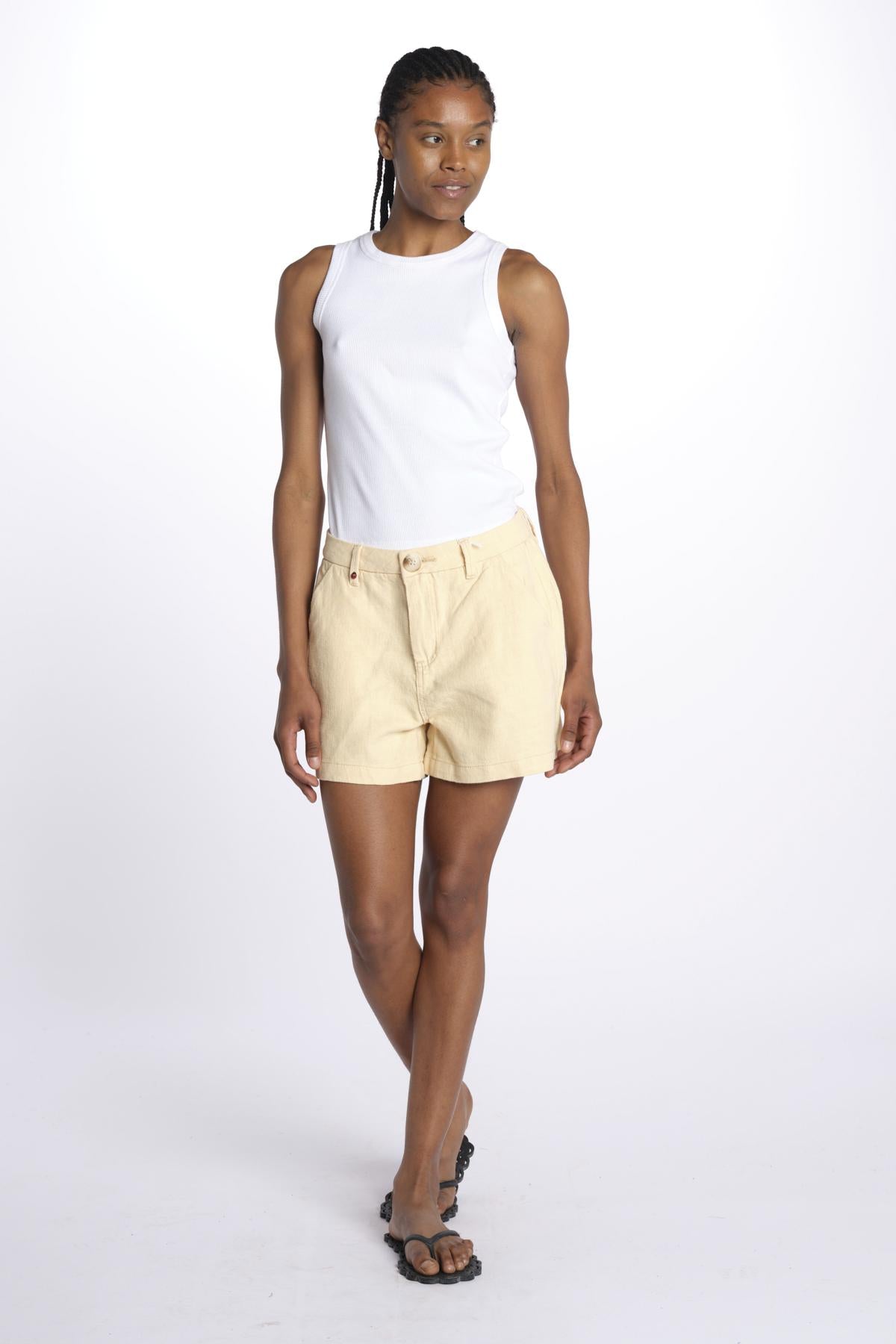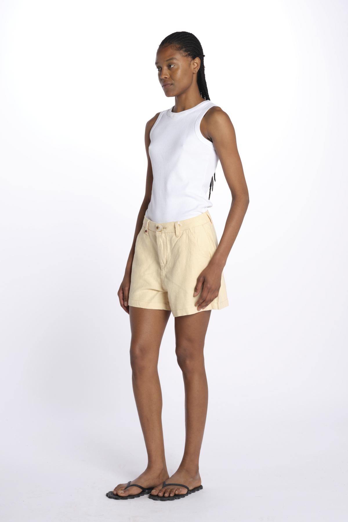 AXELLE short ll 99 sh0 by fam. La modella è alta 174 cm e indossa una S. Composizione: 60% lino, 40% cotone.