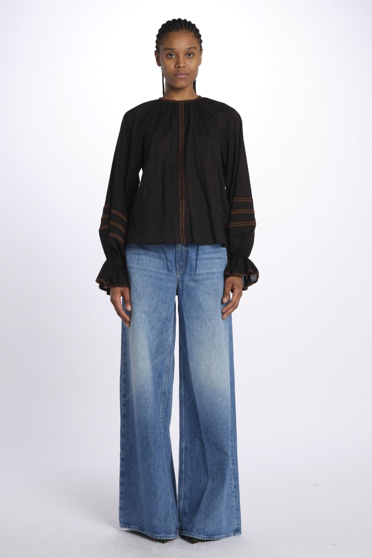Camicia riga centrale by benaras soleil. La modella è alta 174 cm e indossa una S. Composizione: 100% cotone.