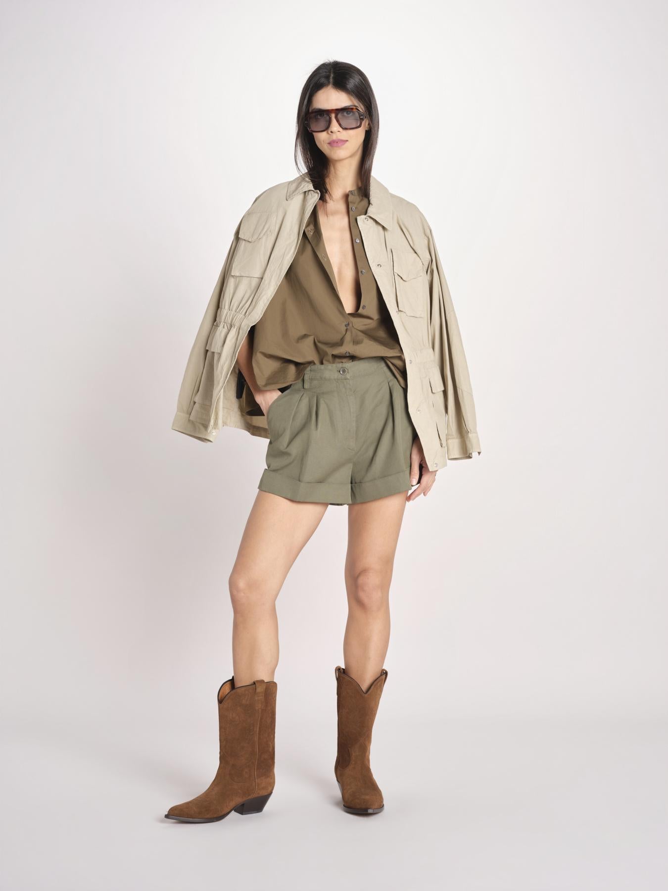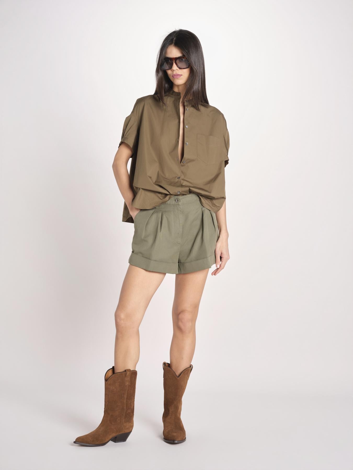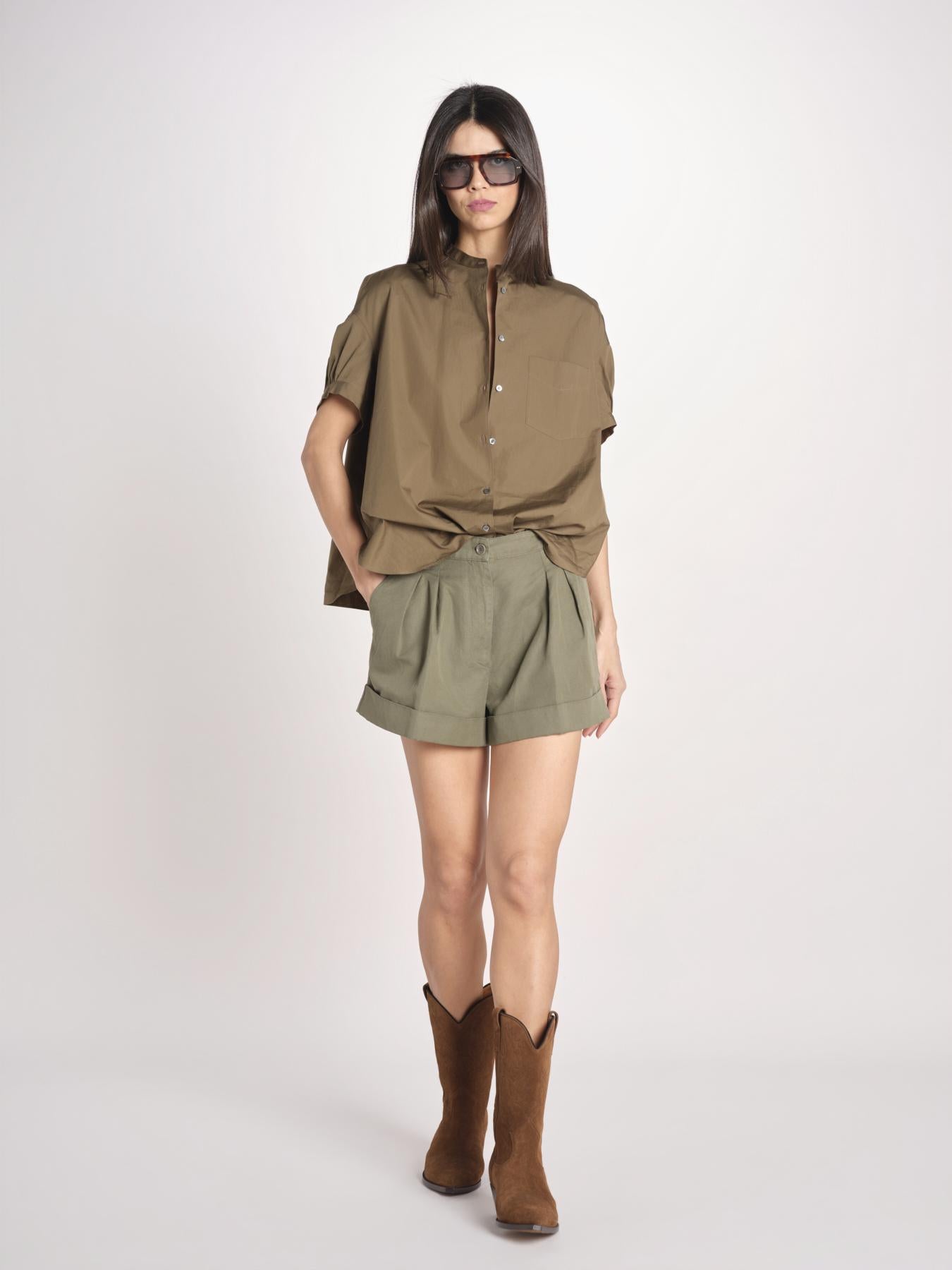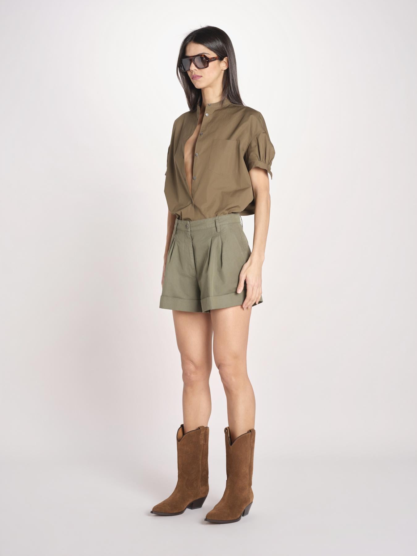 Bermuda con risvolto. La modella è alta 180cm e indossa una taglia 38. Composizione: 58% cotone, 42% lino.