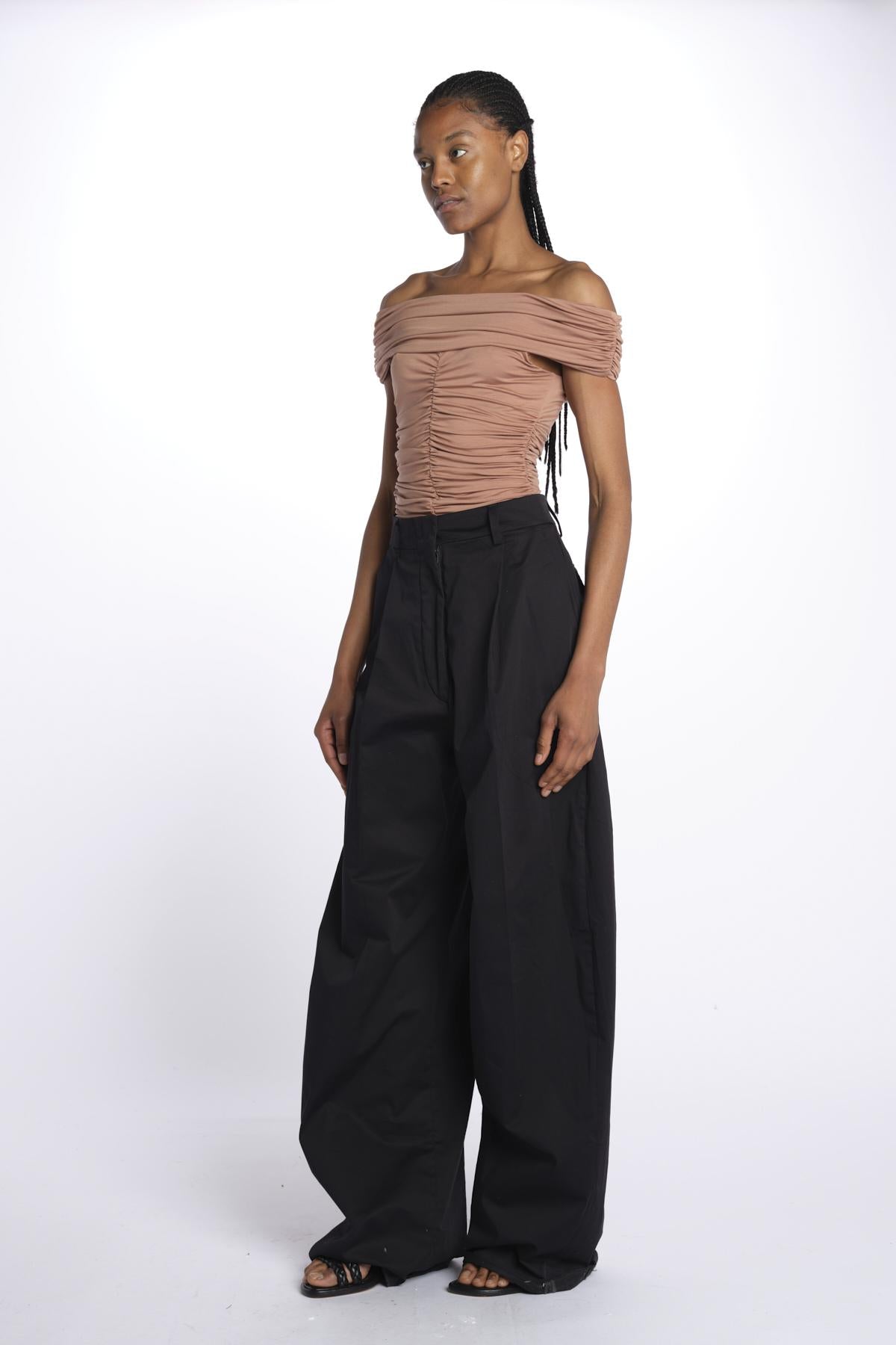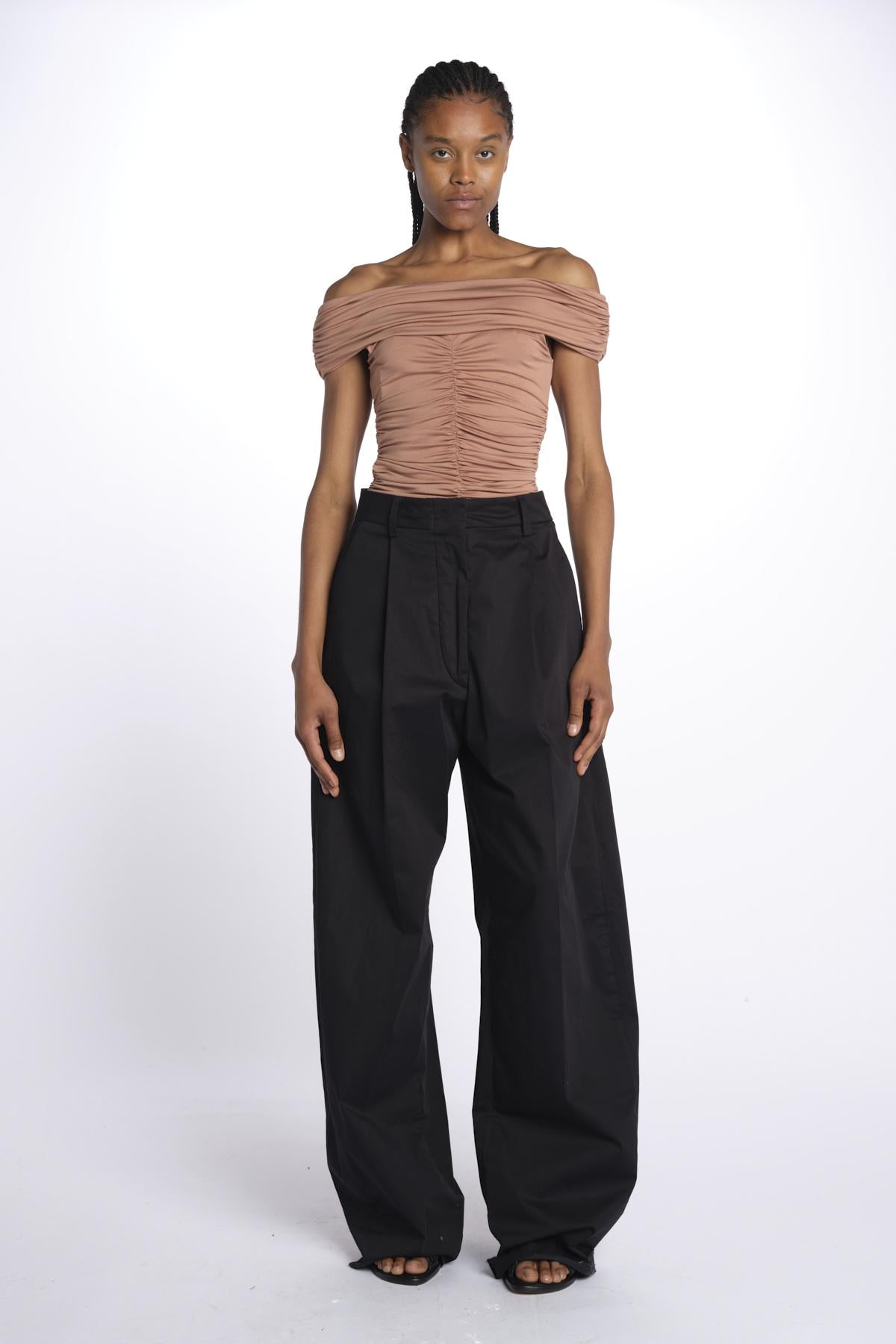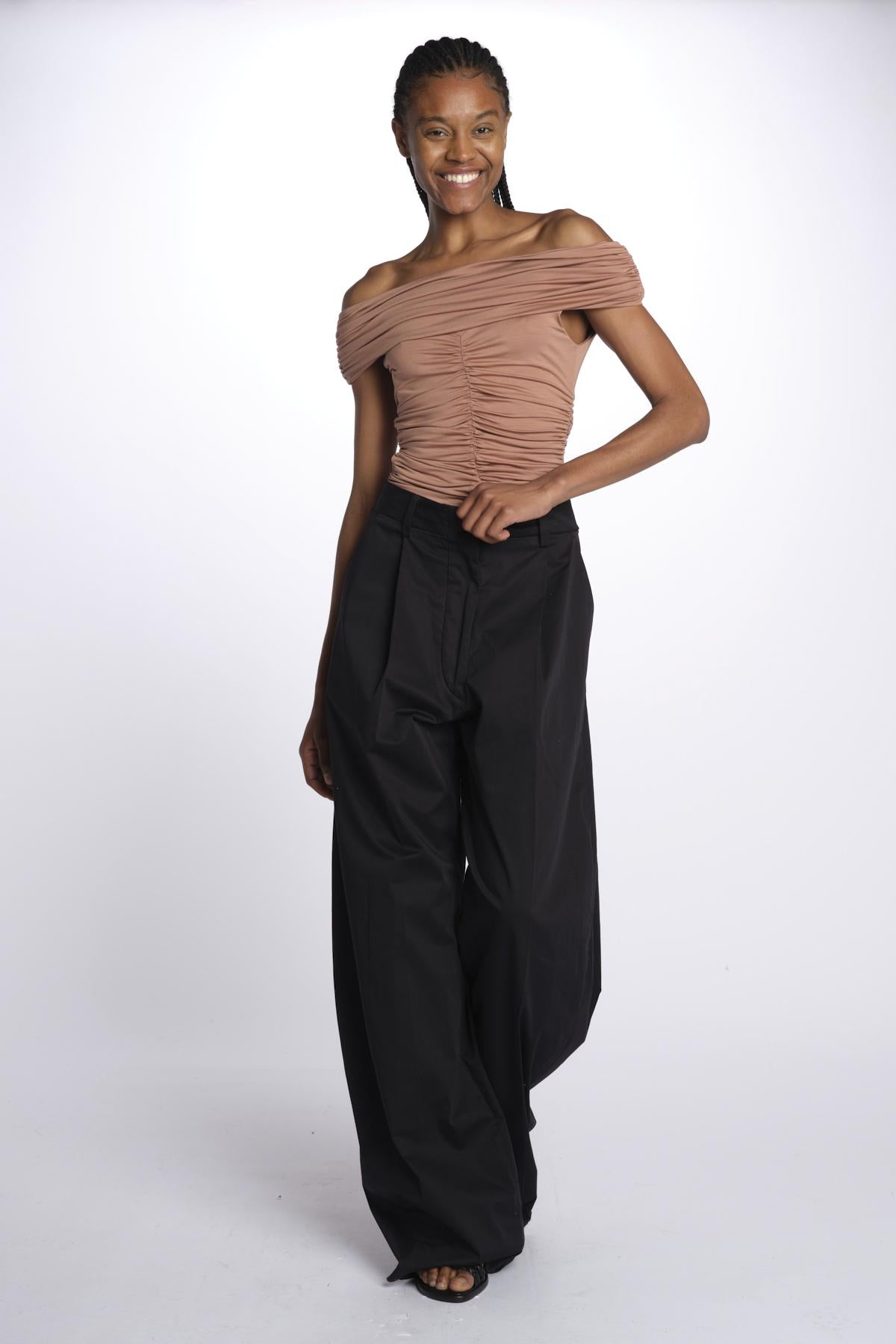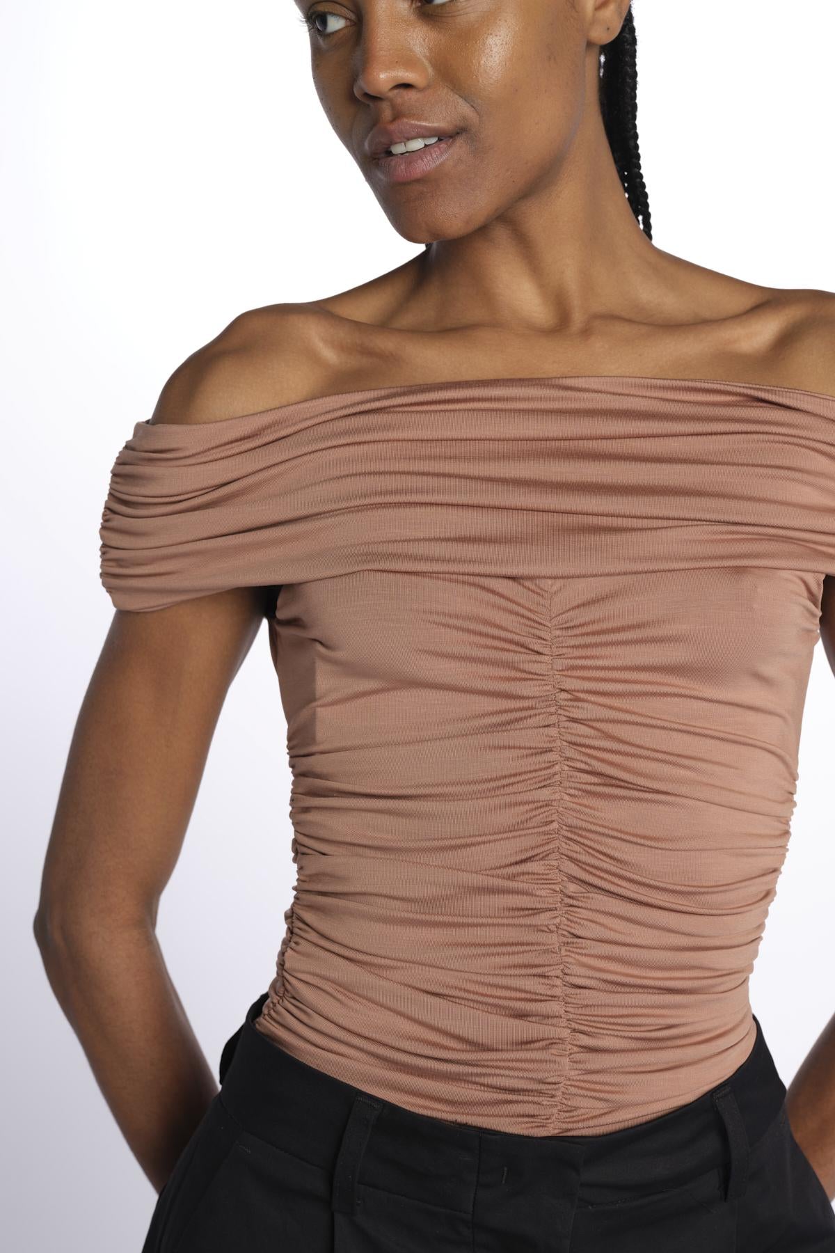 Body BUTTER CUP scollato plissè by undress code. La modella è alta 174 cm e indossa una taglia S. Composizione: 95% lyocell, 5% elastane.