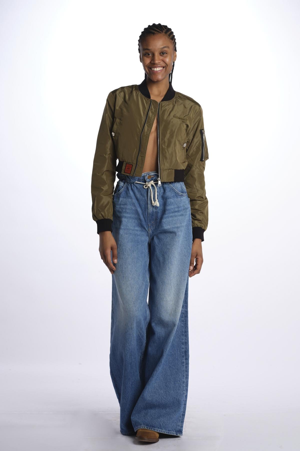 Bomber slim leggero D by bombers original. La modella è alta 174 cm e indossa una S. Composizione: 100% poliestere.