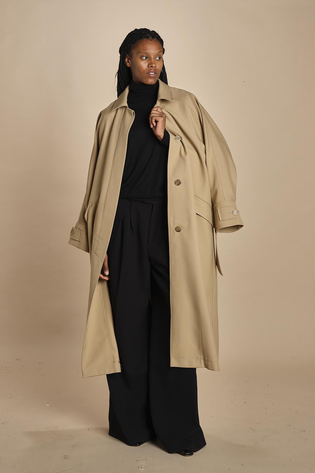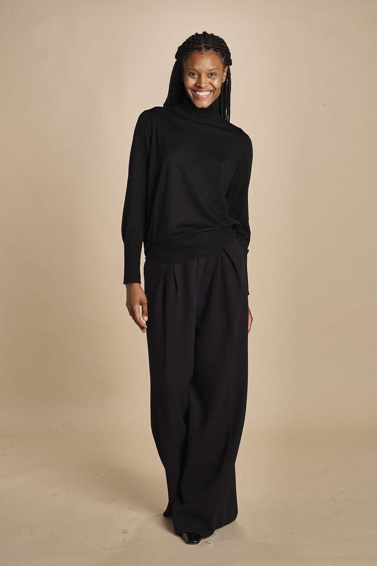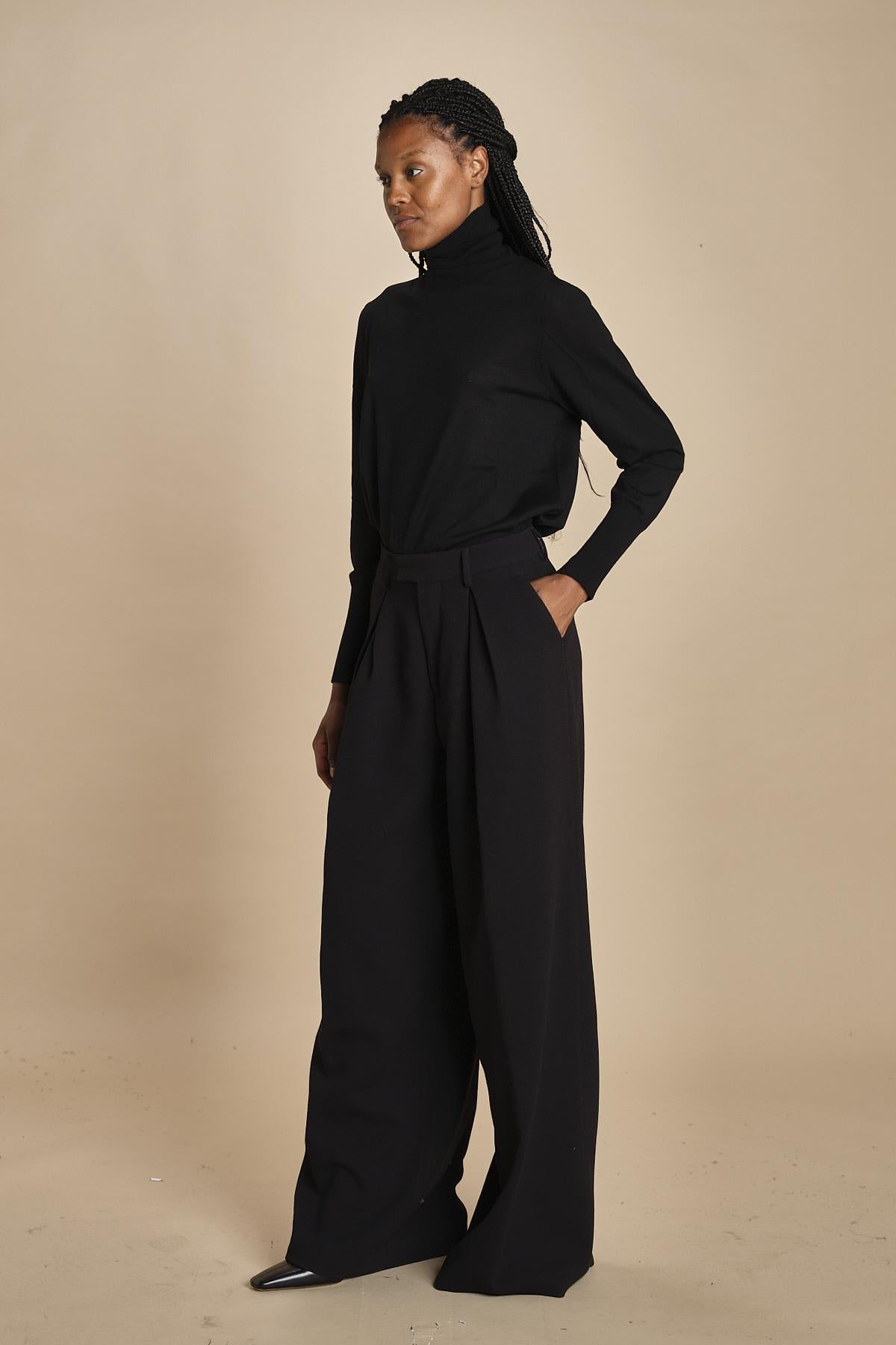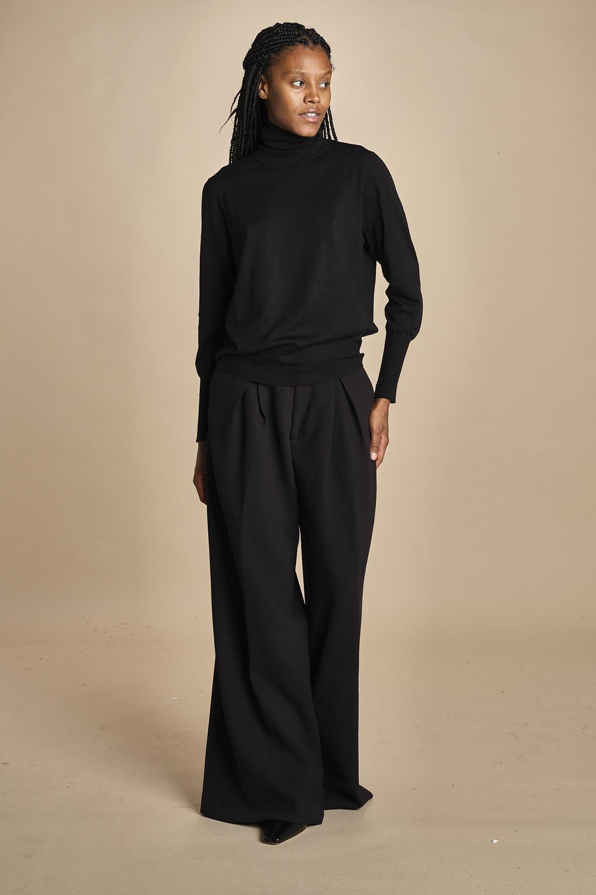 pantalone con pinces in lana by berwich. La modella è alta 174 cm e indossa una taglia 38. Composizione: 100% lana vergine.