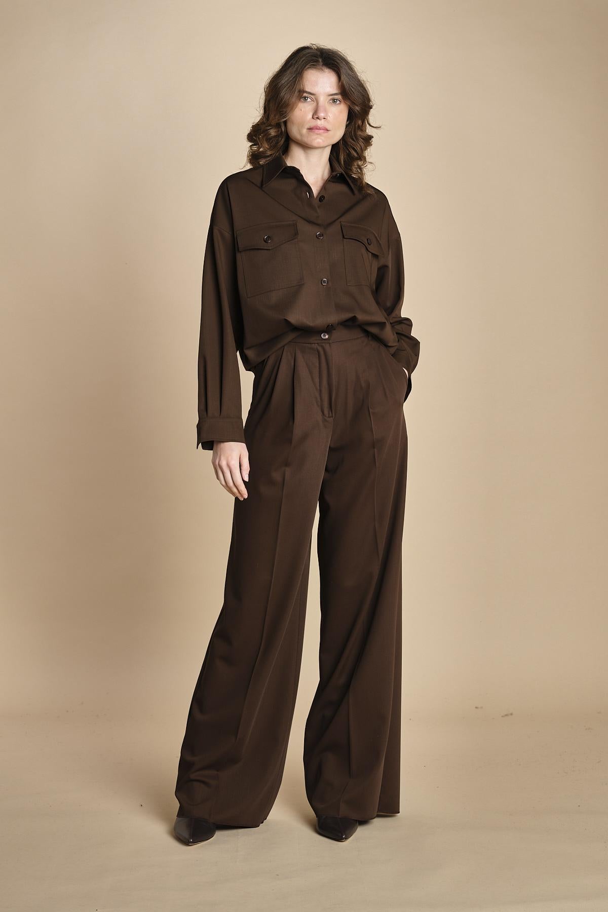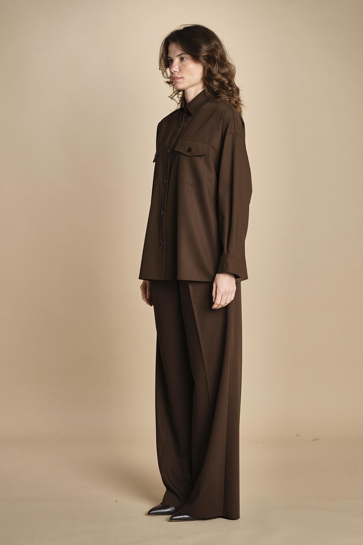 camicia con tasche applicate. La modella è alta 176 cm e indossa una taglia 40. 100% lana