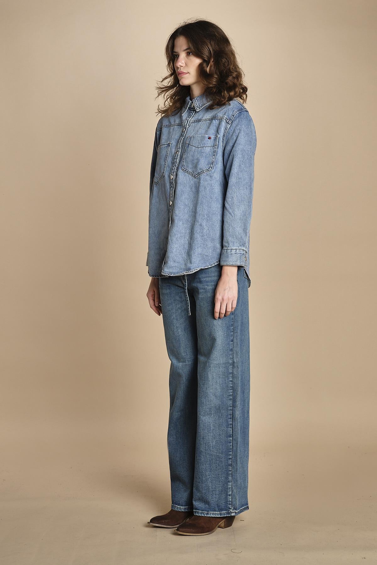 camicia in denimLa modella è alta 176 cm e indossa una taglia S. 100% cotone