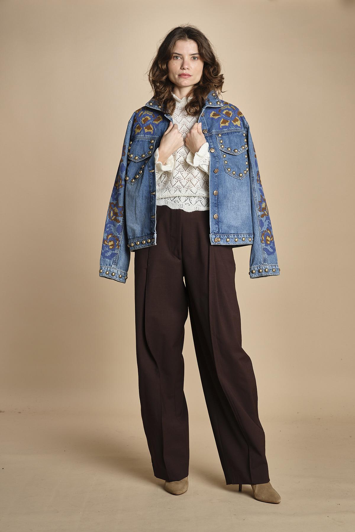 camicia in maglia ricamo pizzo. La modella è alta 176 cm e indossa una taglia S. 100% acririlo