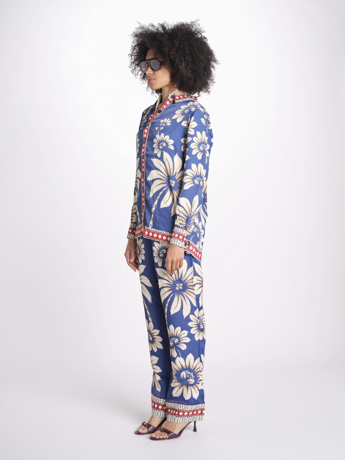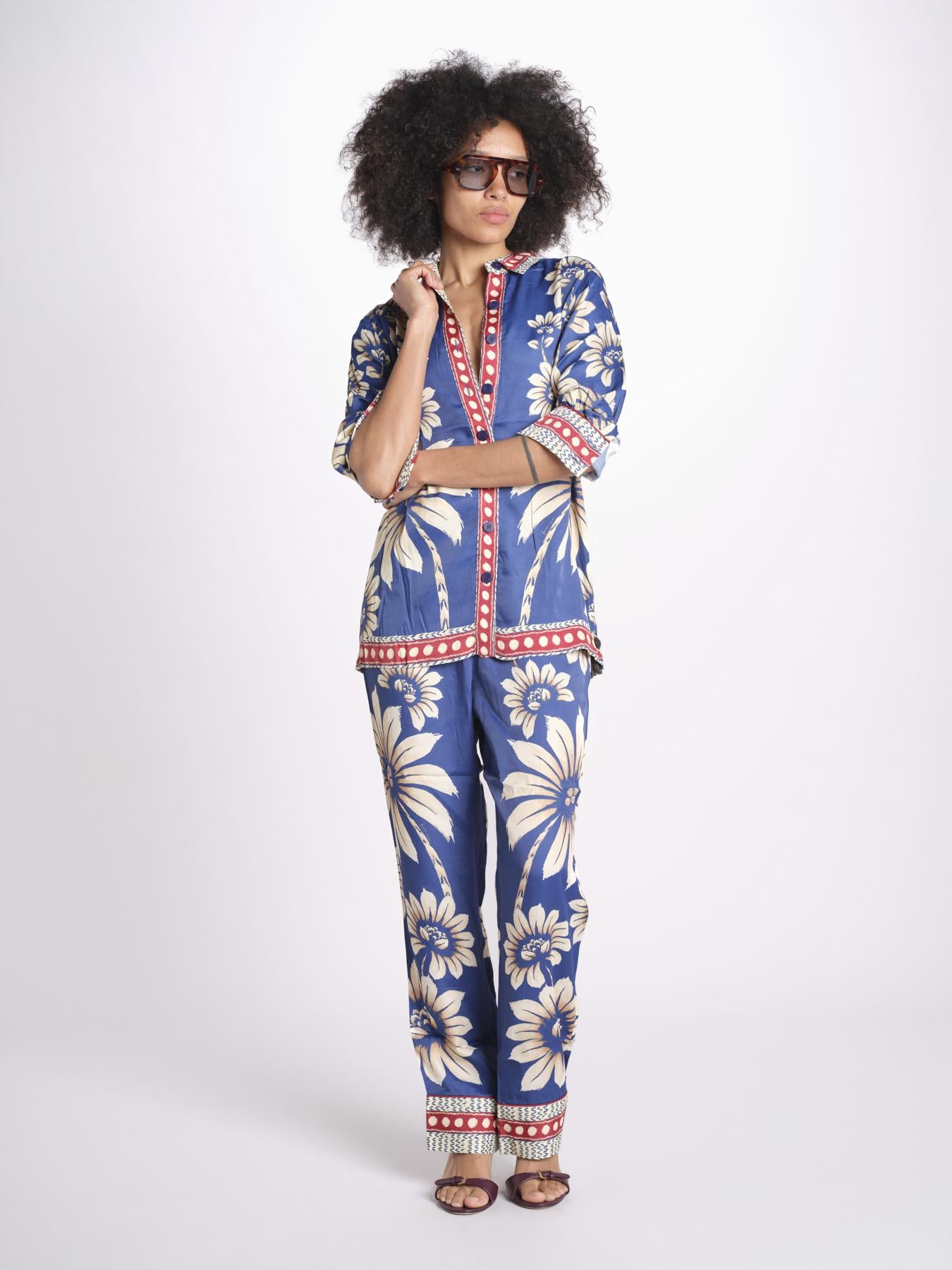 Camicia pigiama con stampa a fiori. La modella è alta 1.75 e indossa una taglia XS. Composizione: 100% viscosa.